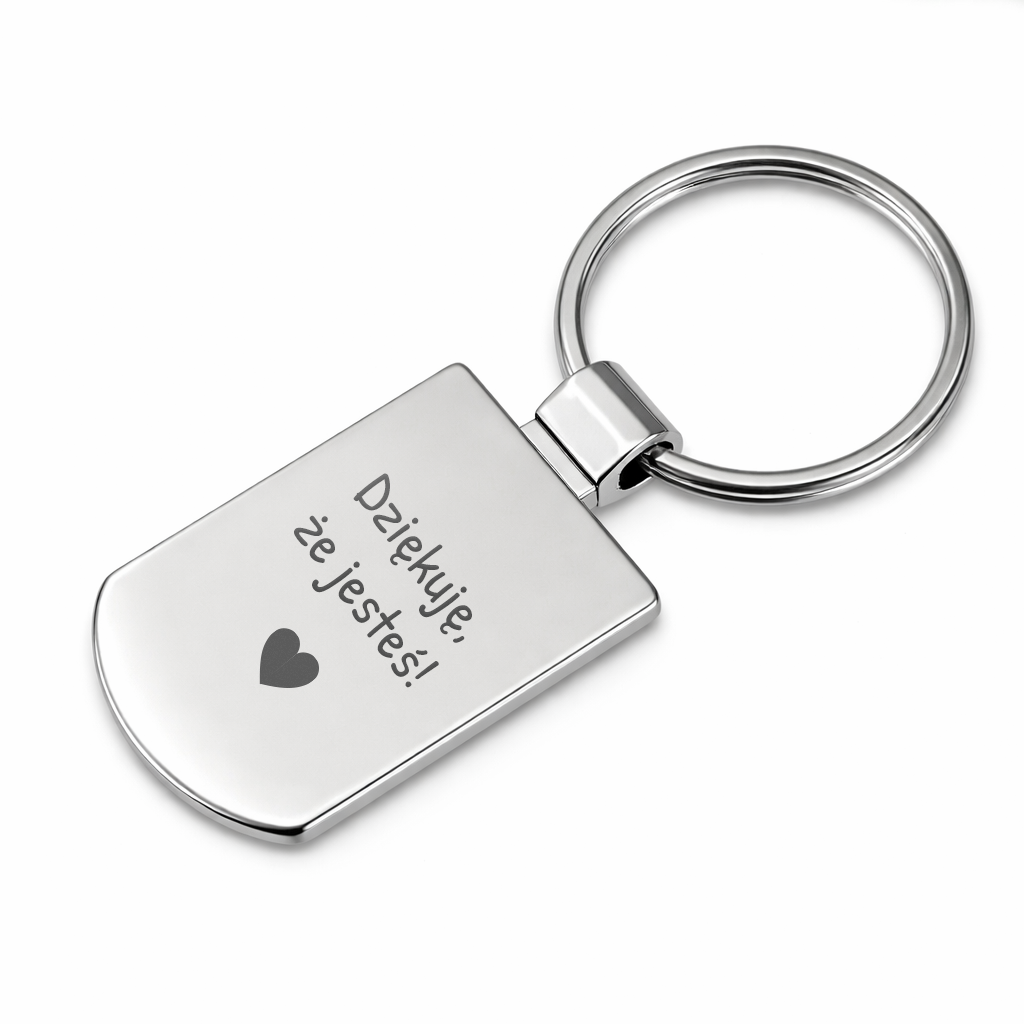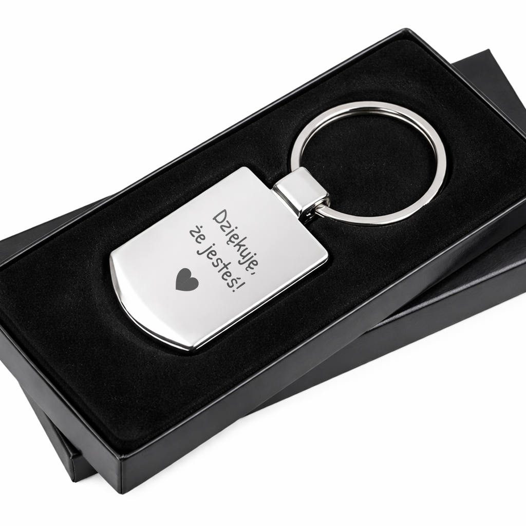 Elegancki brelok na klucze wykonany z metalu. Pakowany w czarne kartonowe pudełko.