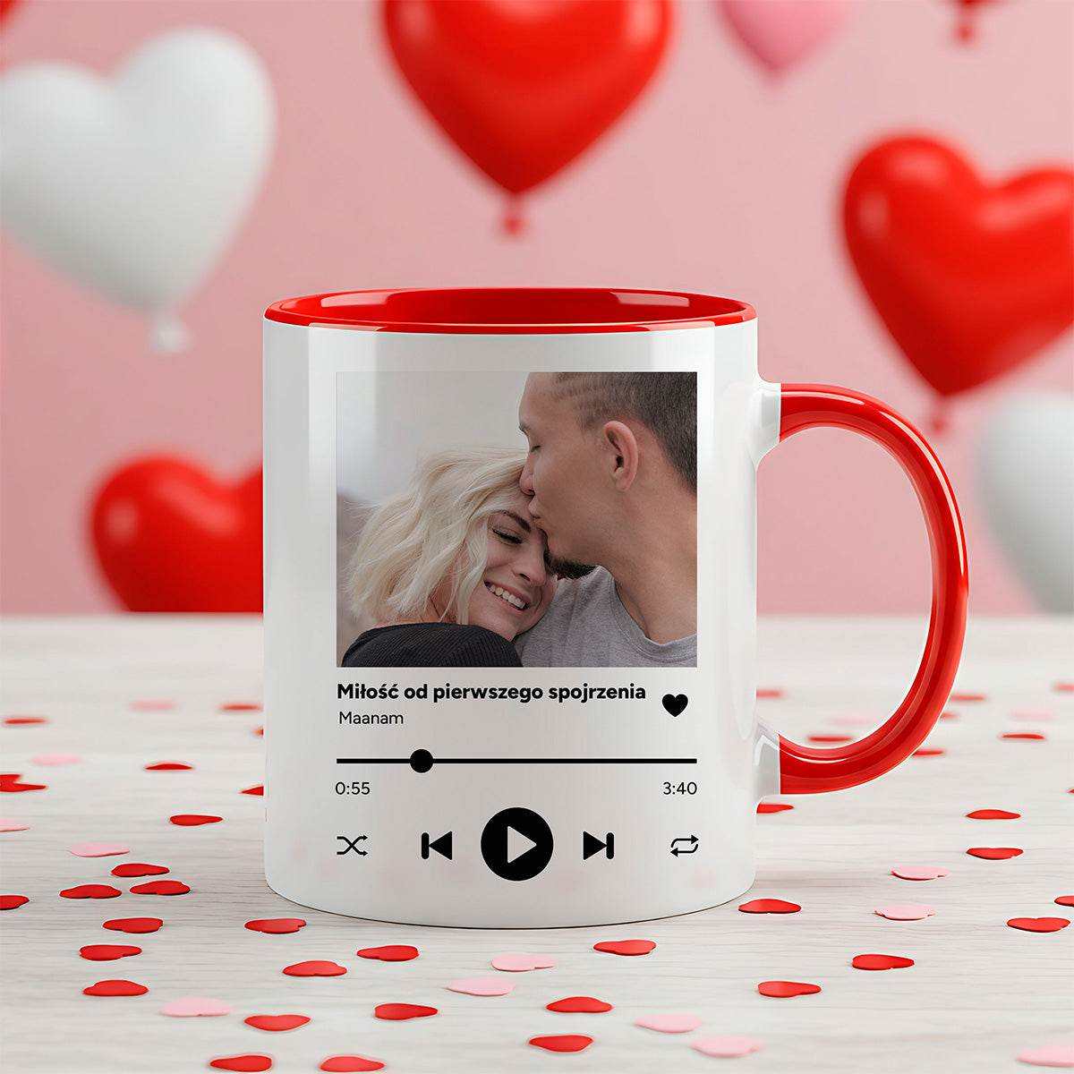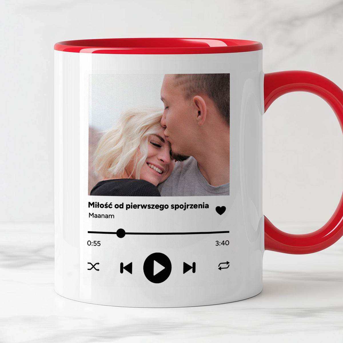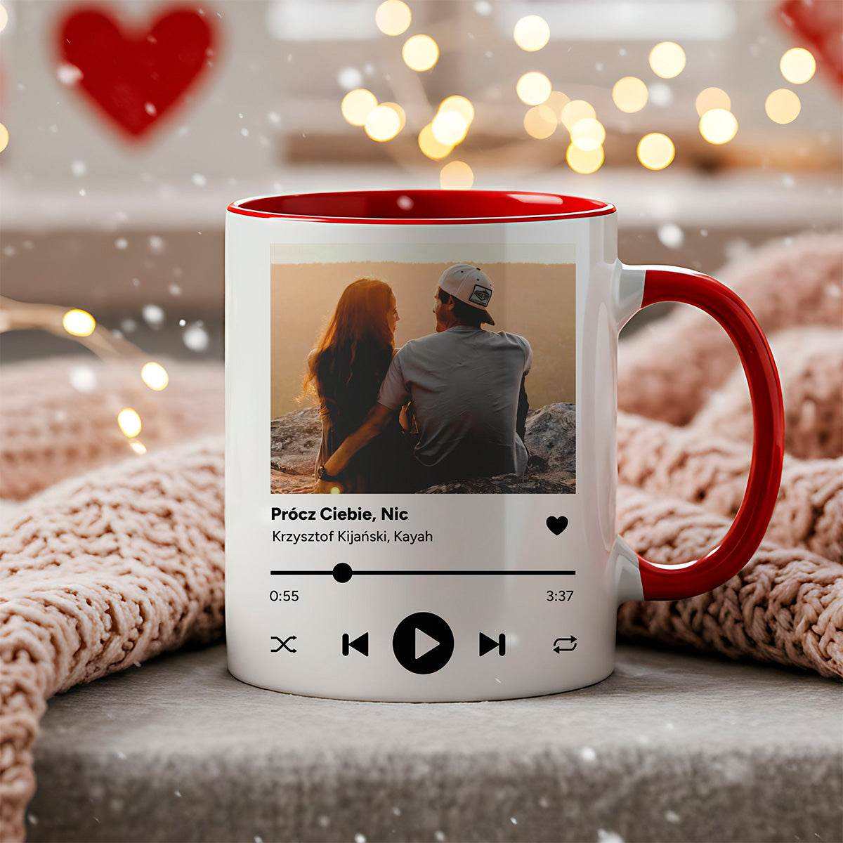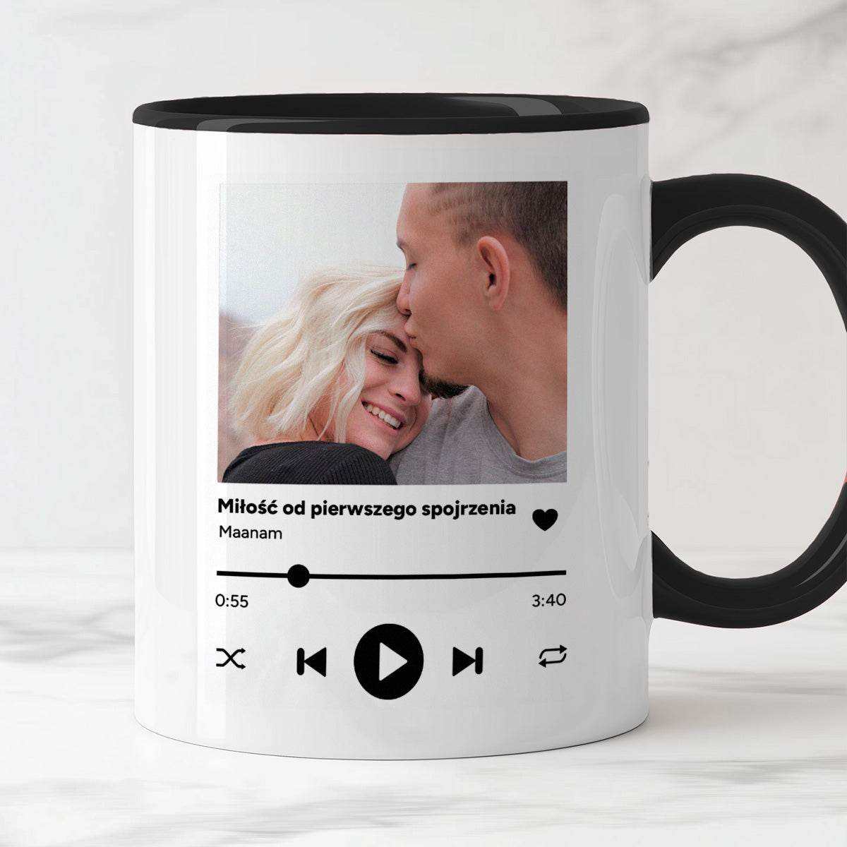 Kubek spersonalizowany z motywem ulubionego utworu ze zdjęciem - idealny sposób na wyrażenie swoich uczuć  i stworzenie jedynego w swoim rodzaju prezentu dla siebie lub bliskiej osoby. Z jeden strony kubka widoczny jest motyw odtwarzacza muzycznego z tytułem, wykonawcą i zdjęciem (wybranym przez Ciebie zdjęciem z ważnej chwili), a z drugiej strony widoczny jest kod QR przekierowujący do piosenki na Spotify.