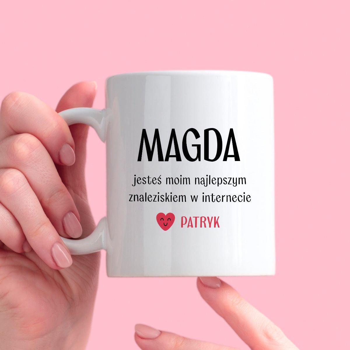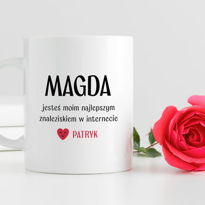 Kubek spersonalizowany z nadrukiem "Jesteś moim najlepszym znaleziskiem w internecie" [2 imiona] - WALENTYNKI - FB