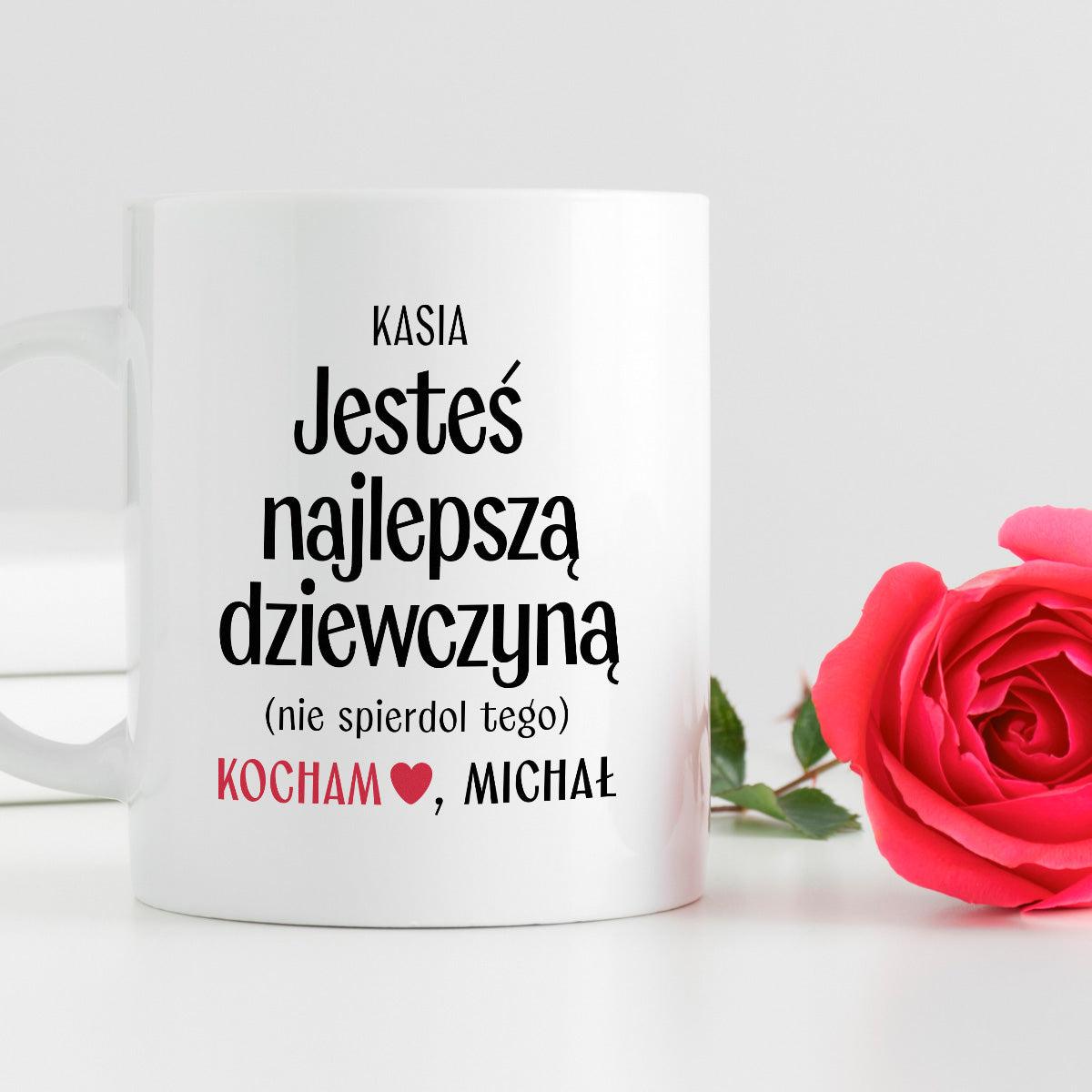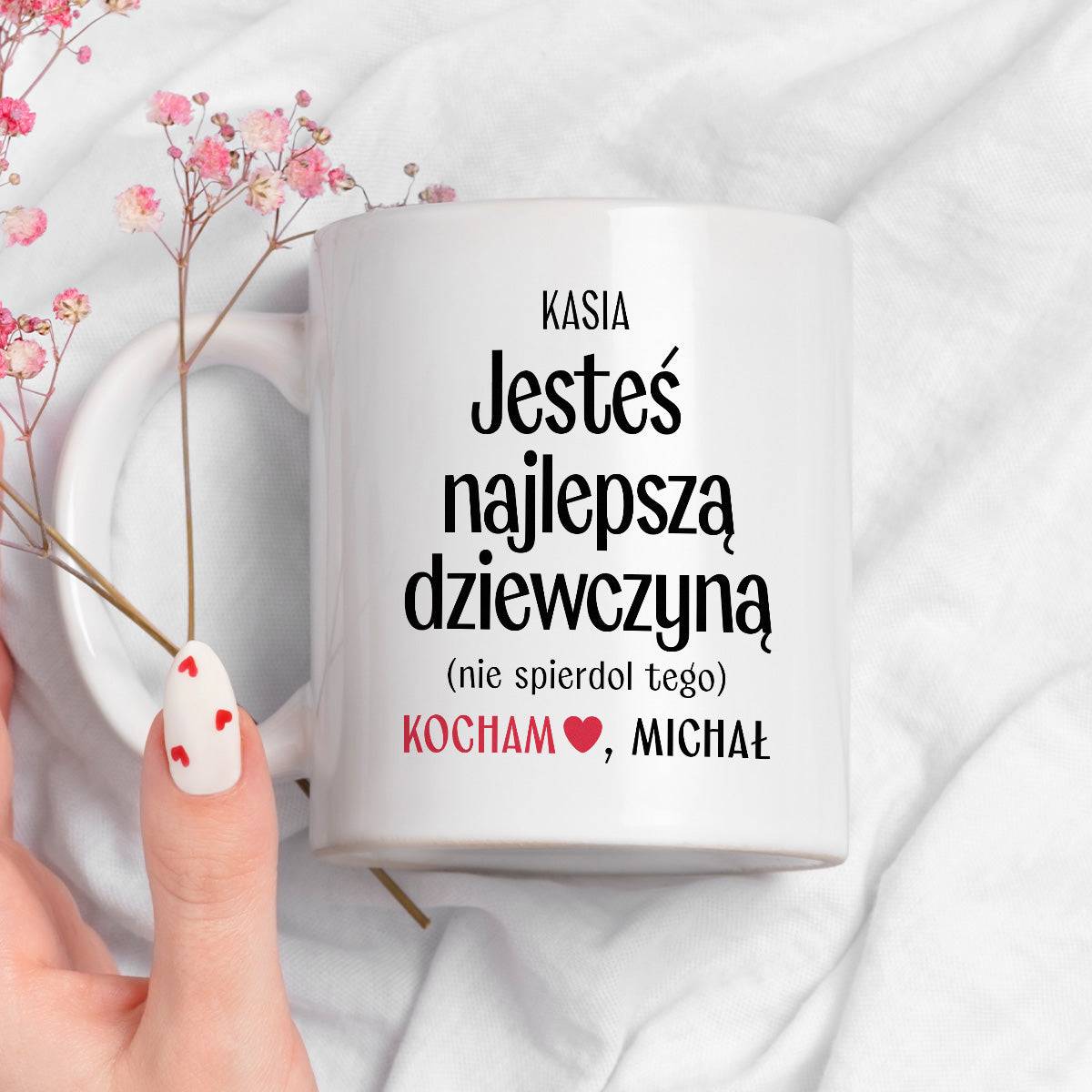 Kubek spersonalizowany z nadrukiem "Jesteś najlepszą dziewczyną (nie spierdol tego)" [2 imiona] - WALENTYNKI - FB
