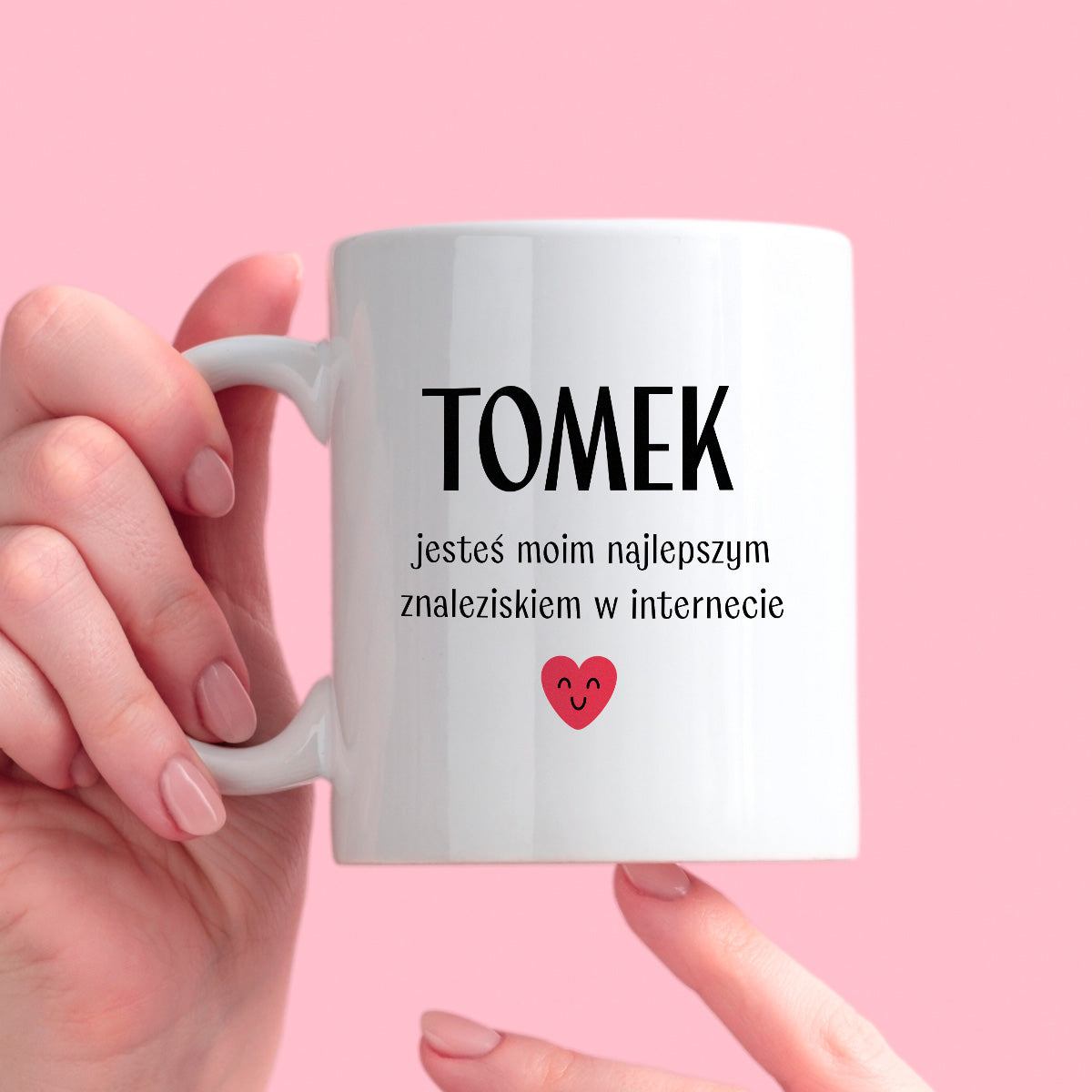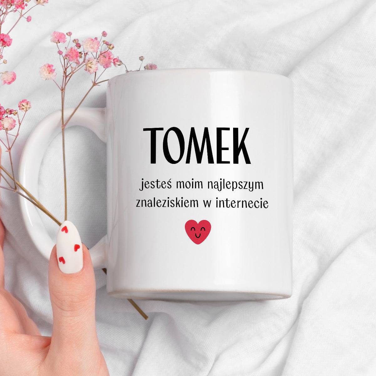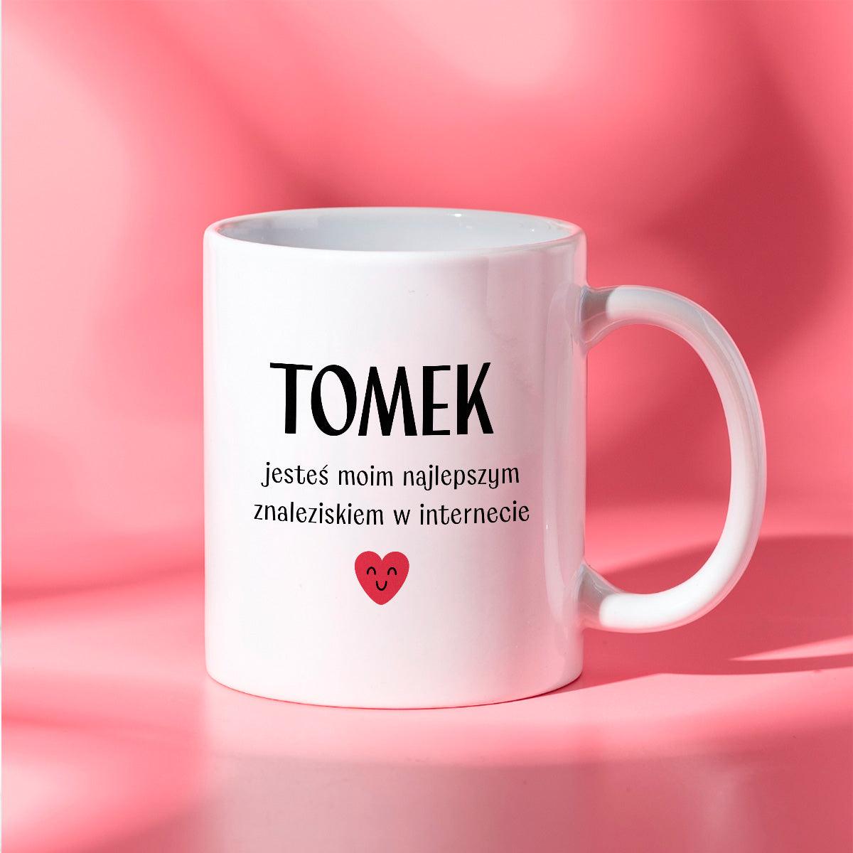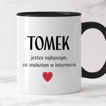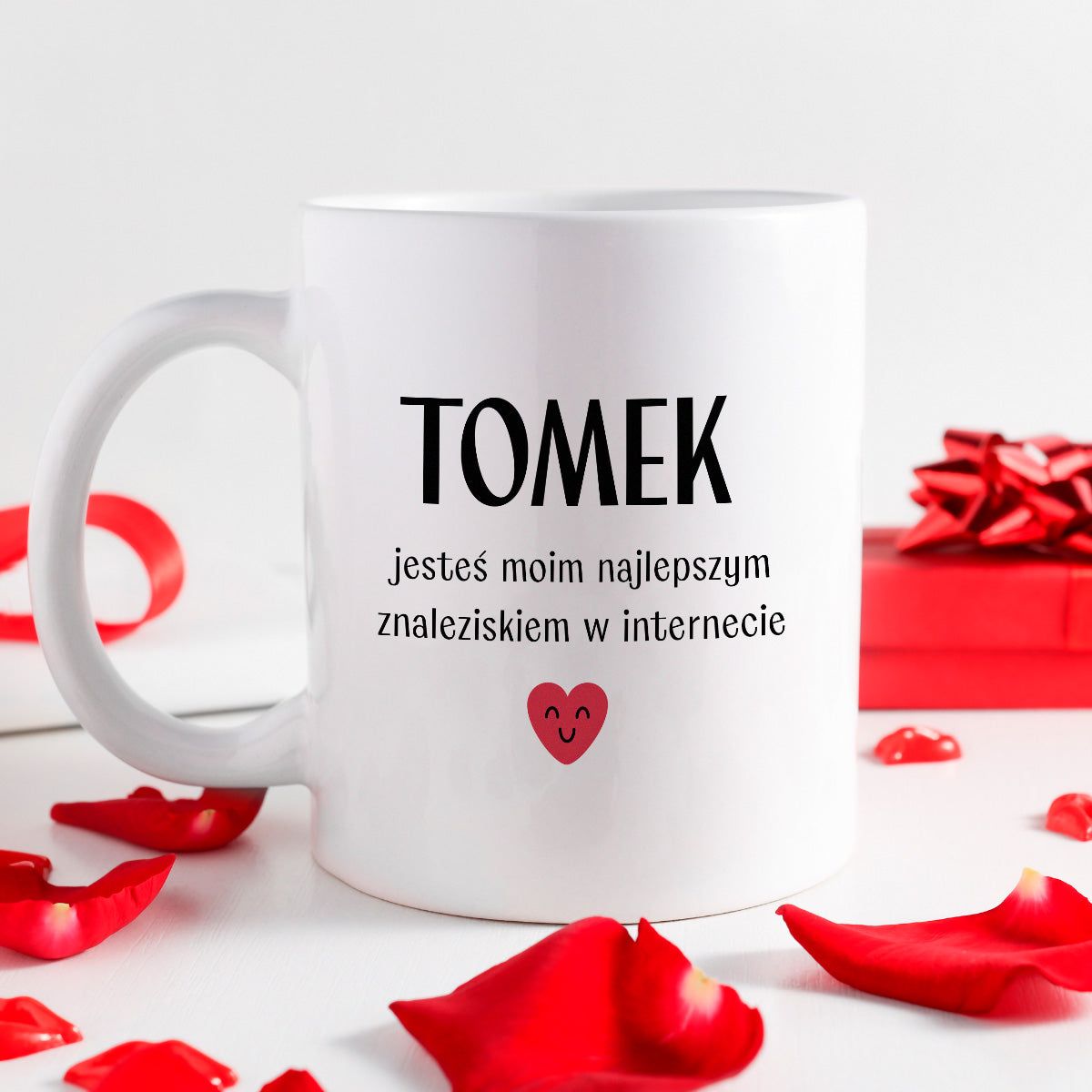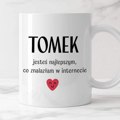 Kubek spersonalizowany z nadrukiem "Jesteś najlepszym, co znalazłam w internecie" - WALENTYNKI