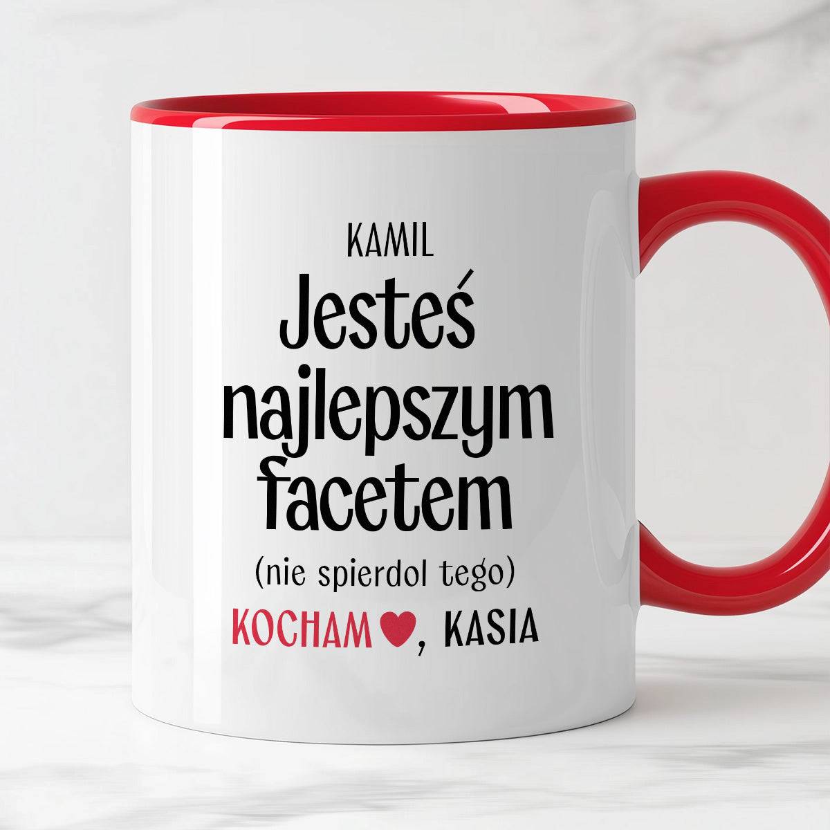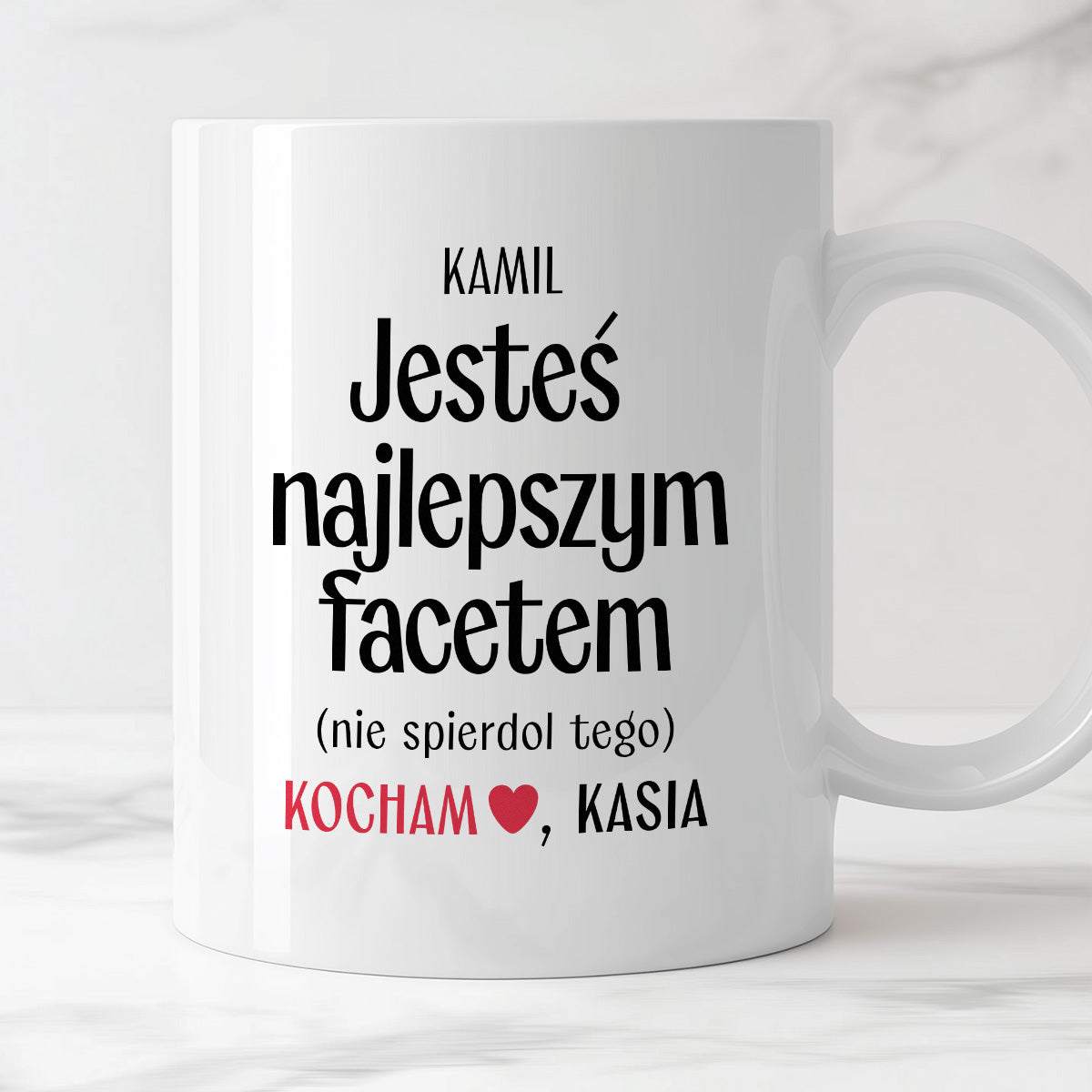 „Kocham Cię (nie spierdol tego)” 👹 albo „Będę Cię wkurwiać do końca życia” 😏. Taki kubek mówi wszystko za Ciebie, a kawa smakuje w nim jakoś lepiej.