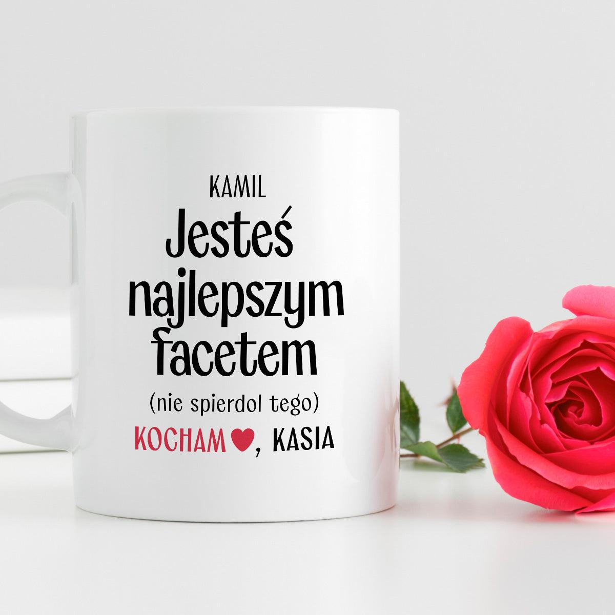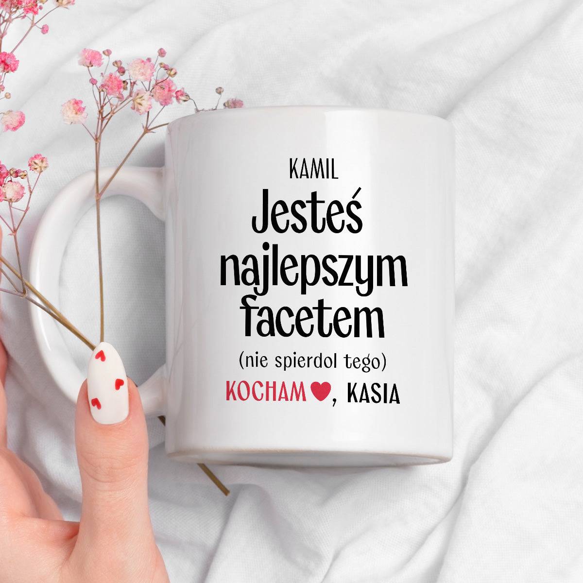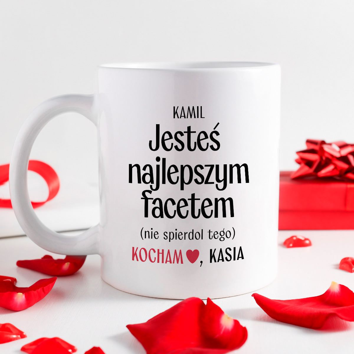 Kubek spersonalizowany z nadrukiem "Jesteś najlepszym facetem (nie spierdol tego)" [2 imiona] - WALENTYNKI - FB