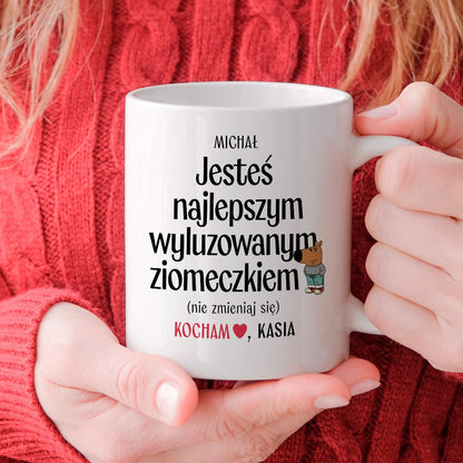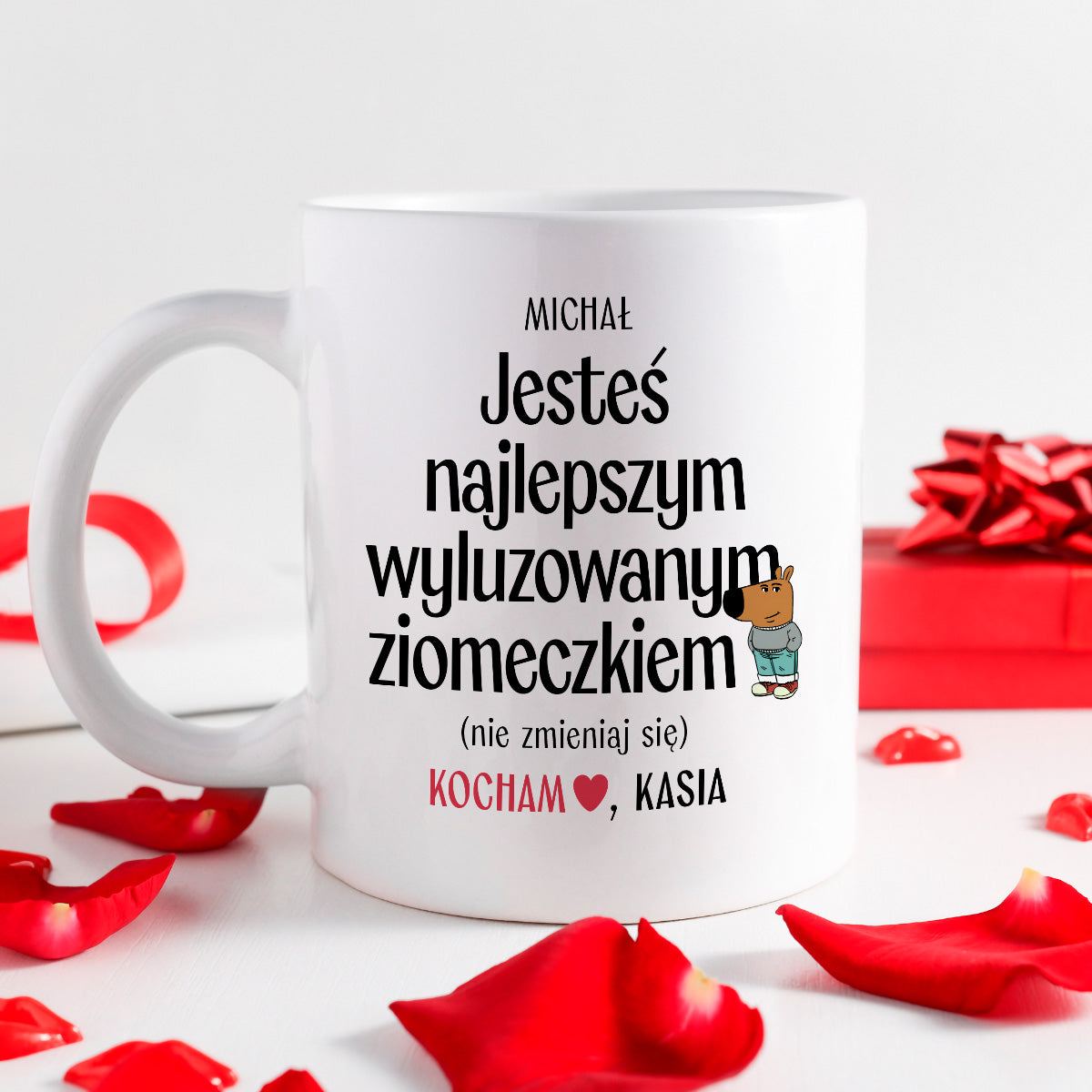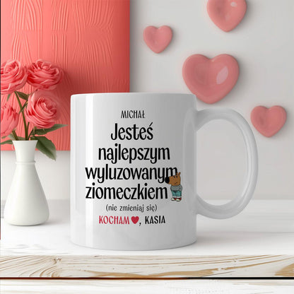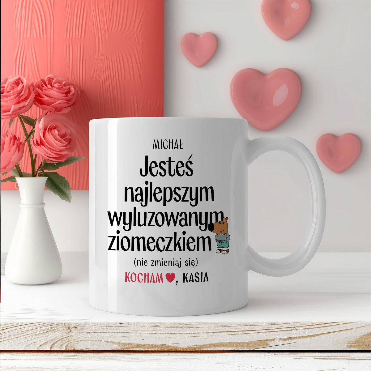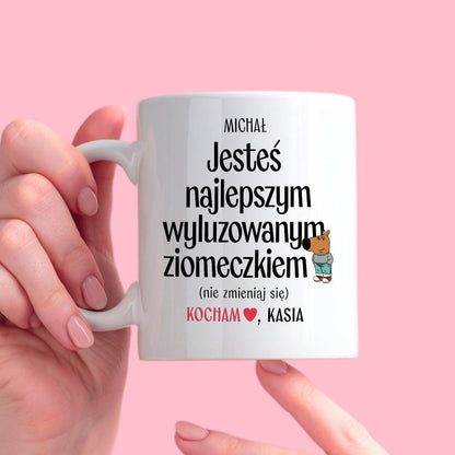 Kubek spersonalizowany z nadrukiem "Jesteś najlepszym wyluzowanym ziomeczkiem (nie zmieniaj się)" [2 imiona] - WALENTYNKI