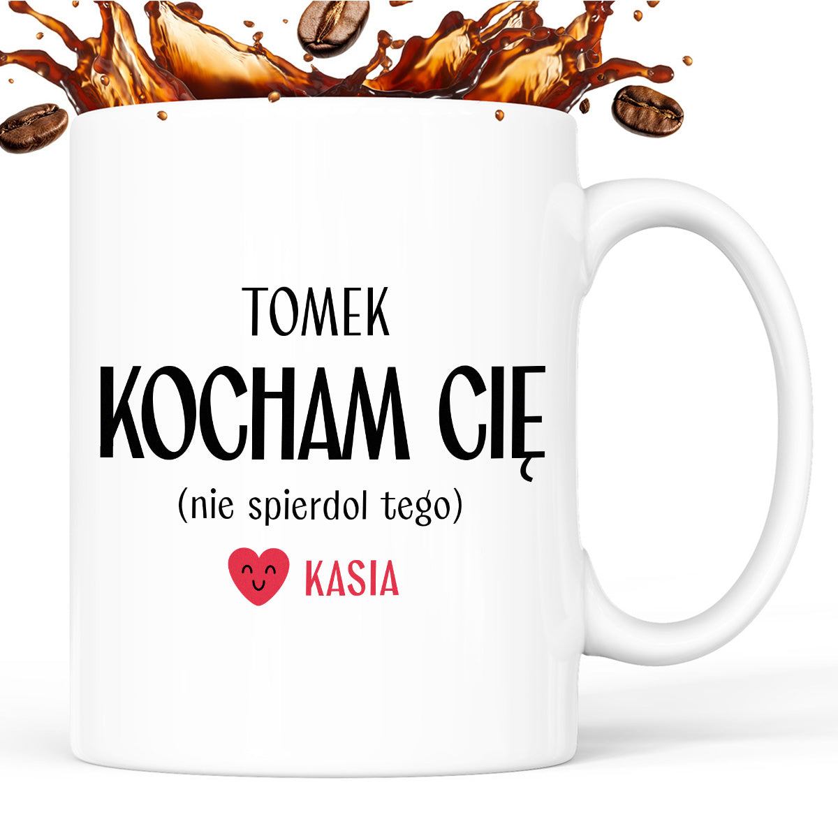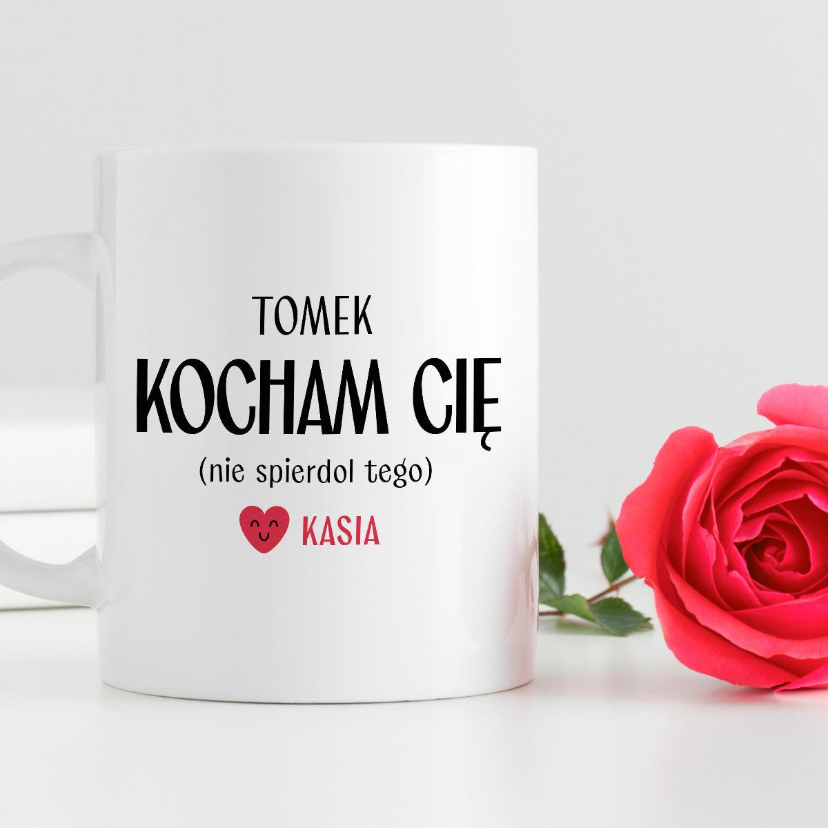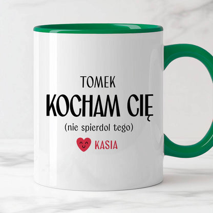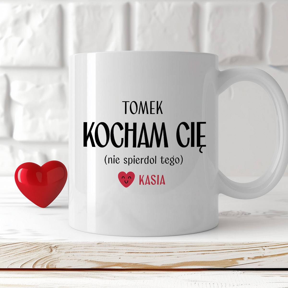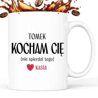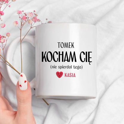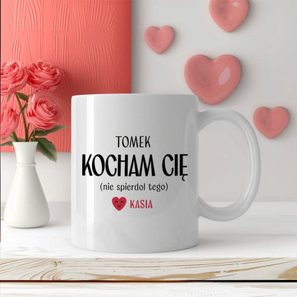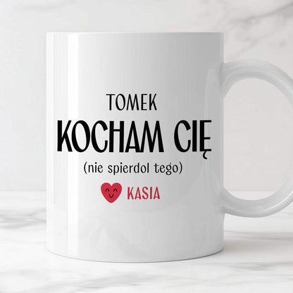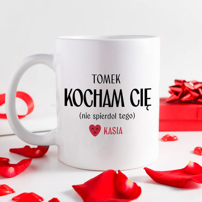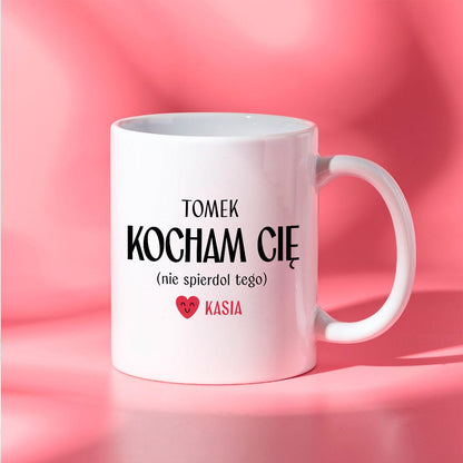 Kubek spersonalizowany z nadrukiem "Kocham Cię (nie spierdol tego)" [2 imiona] - WALENTYNKI