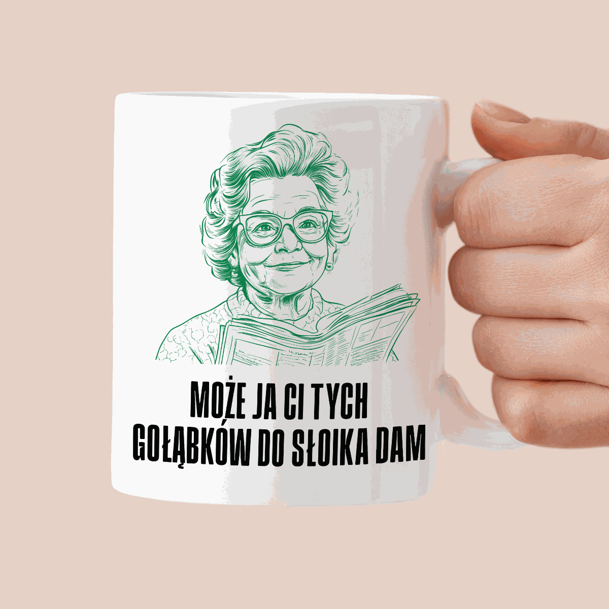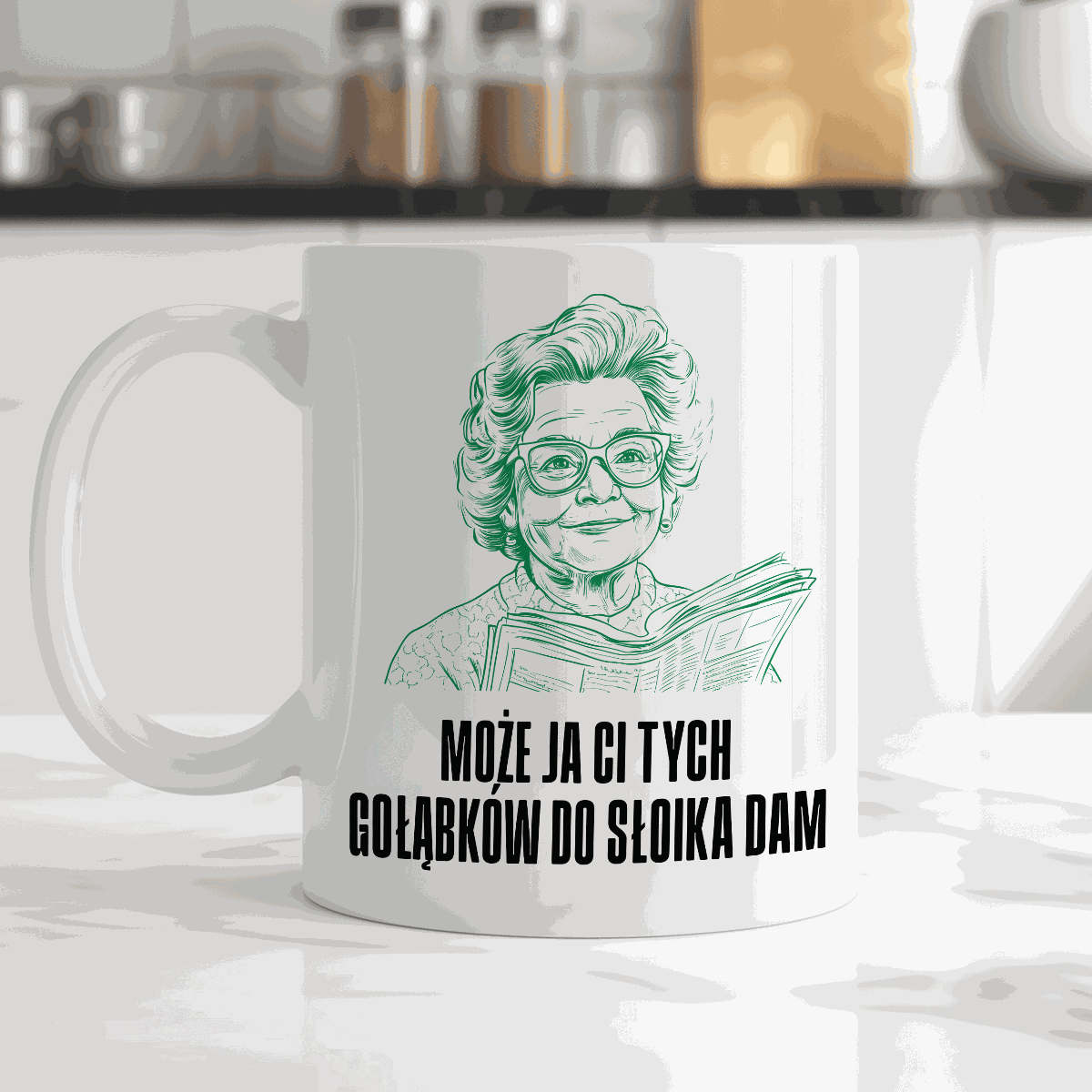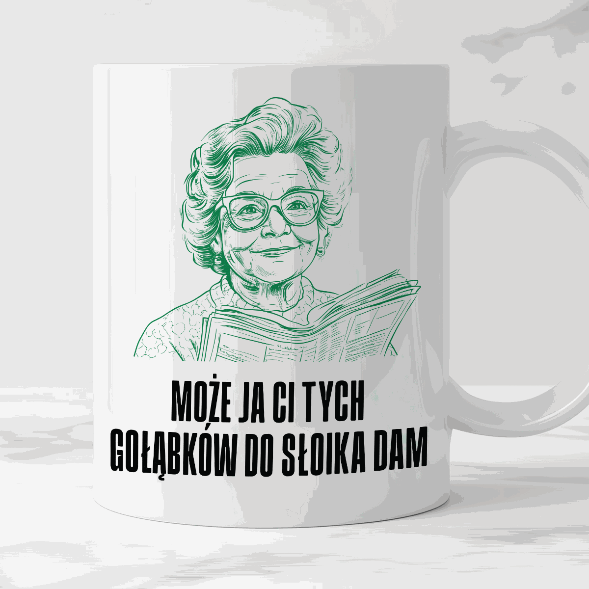 Kubek z cytatem Babci "Może ja Ci tych gołąbków do słoika dam"