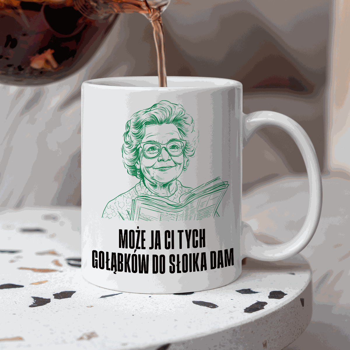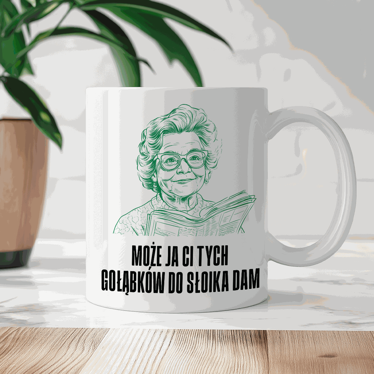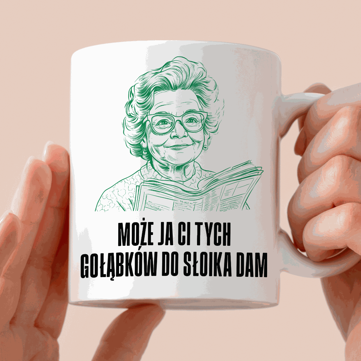 Kubek z cytatem Babci "Może ja Ci tych gołąbków do słoika dam"