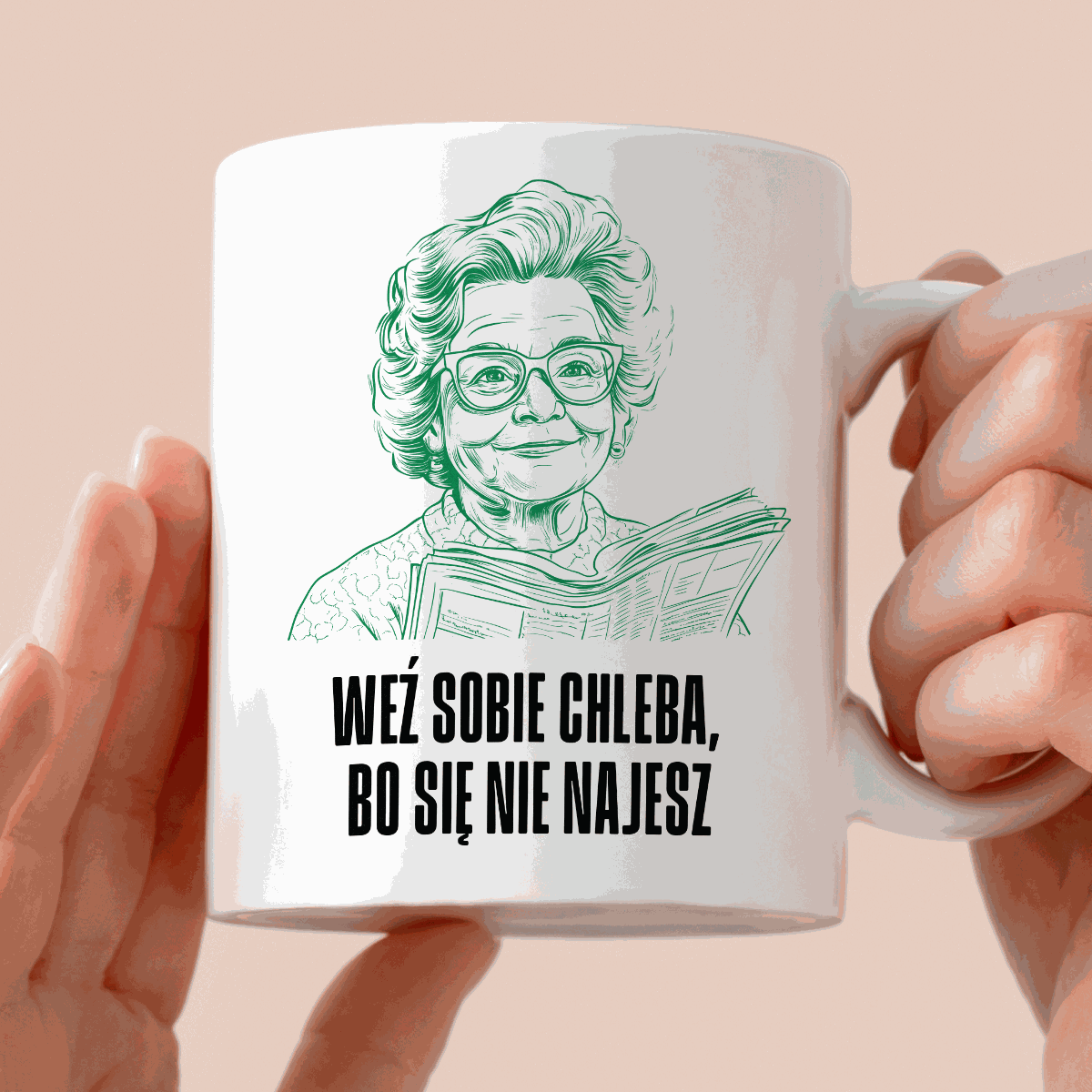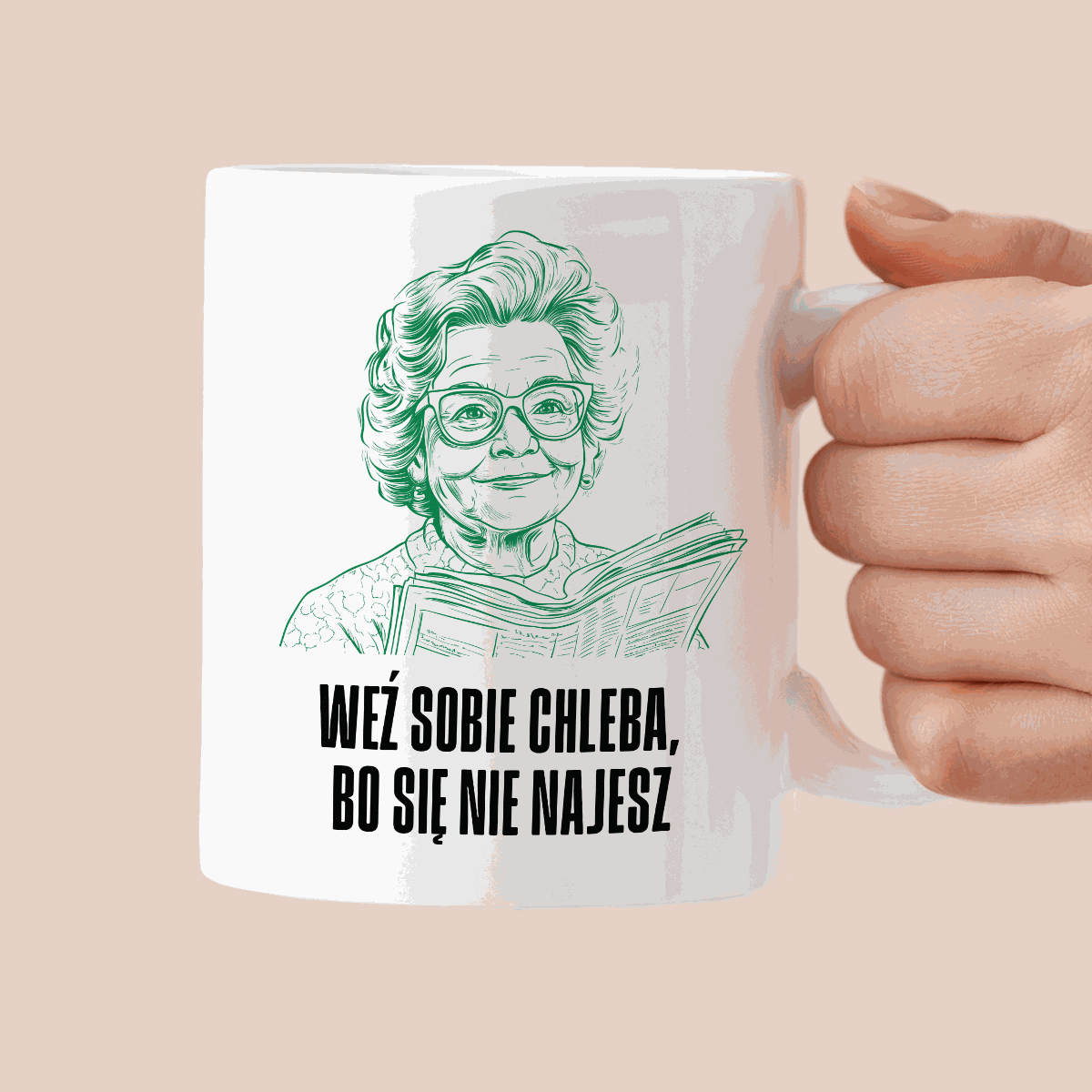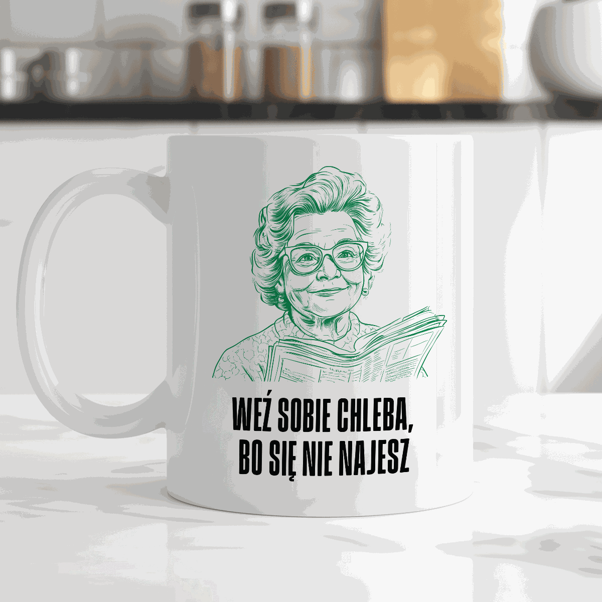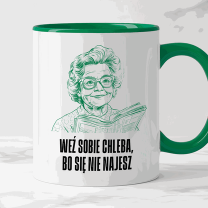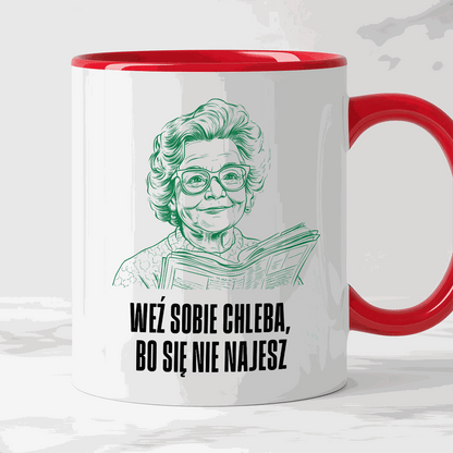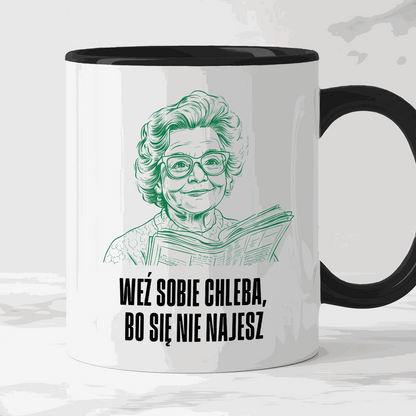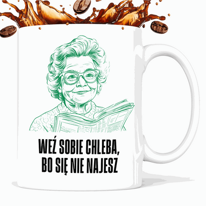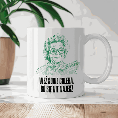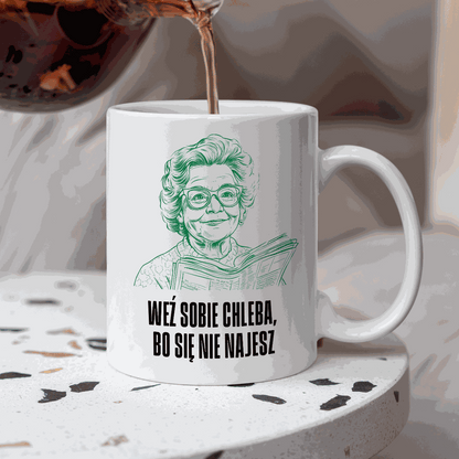 Kubek z cytatem Babci "Weź sobie chleba, bo się nie najesz"