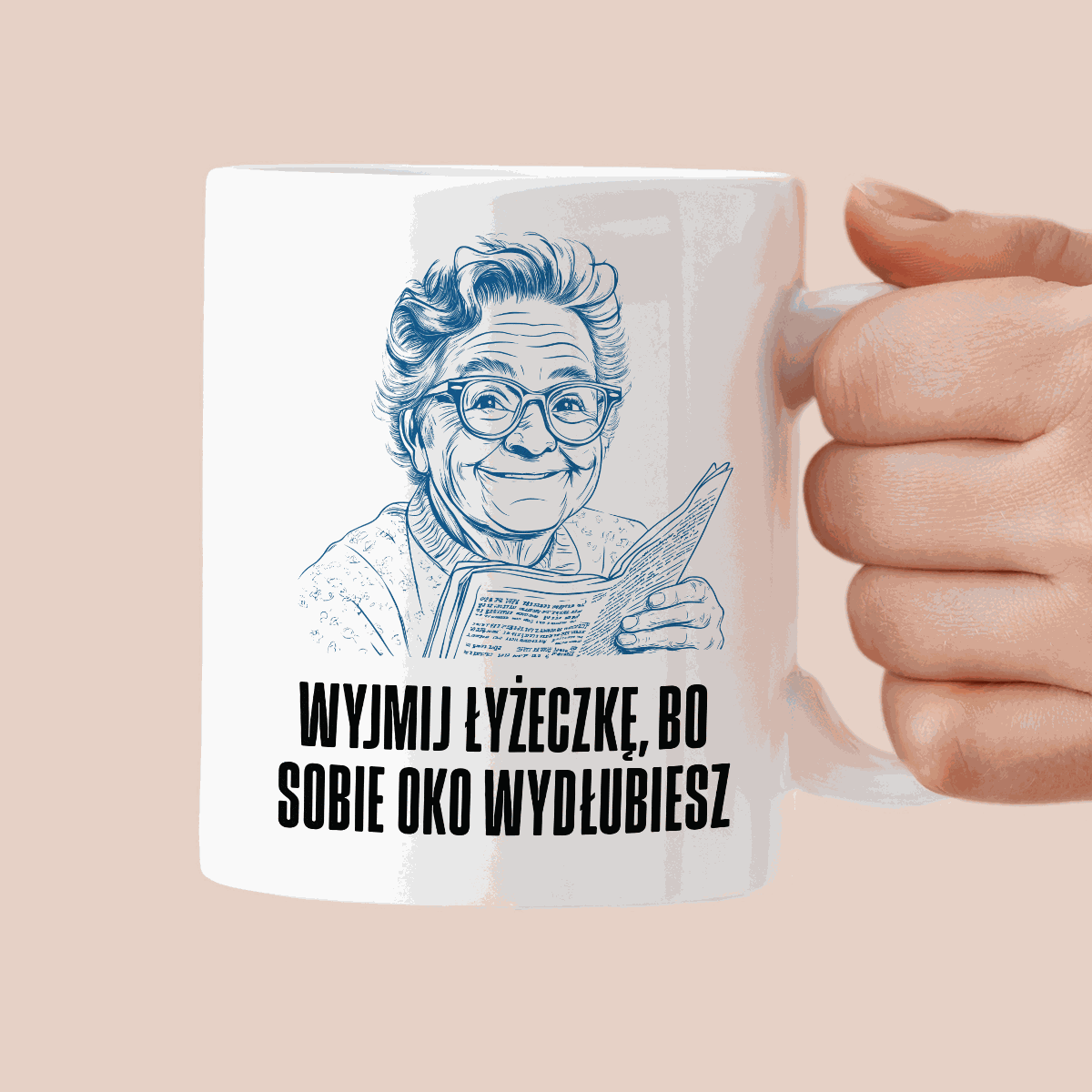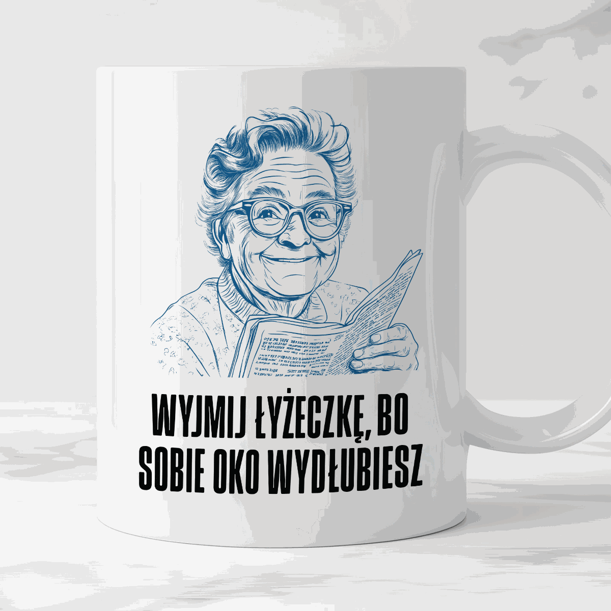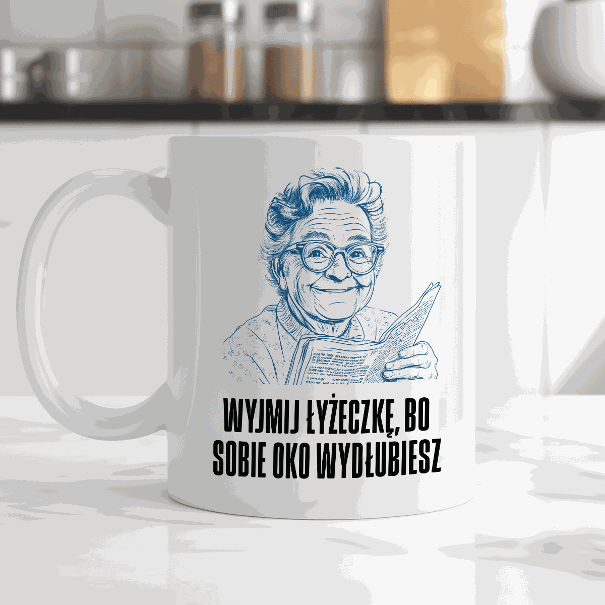 Kubek z cytatem Dziadka "Wyjmij łyżeczkę, bo sobie oko wydłubiesz"