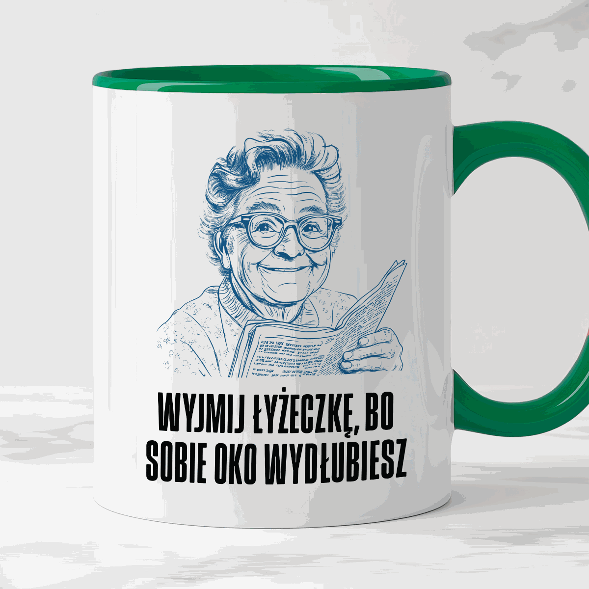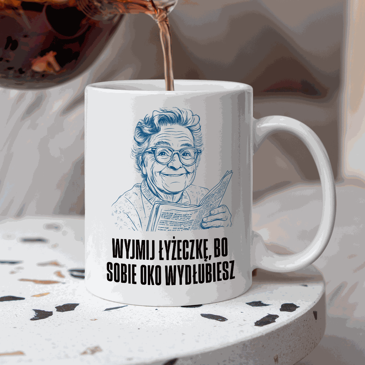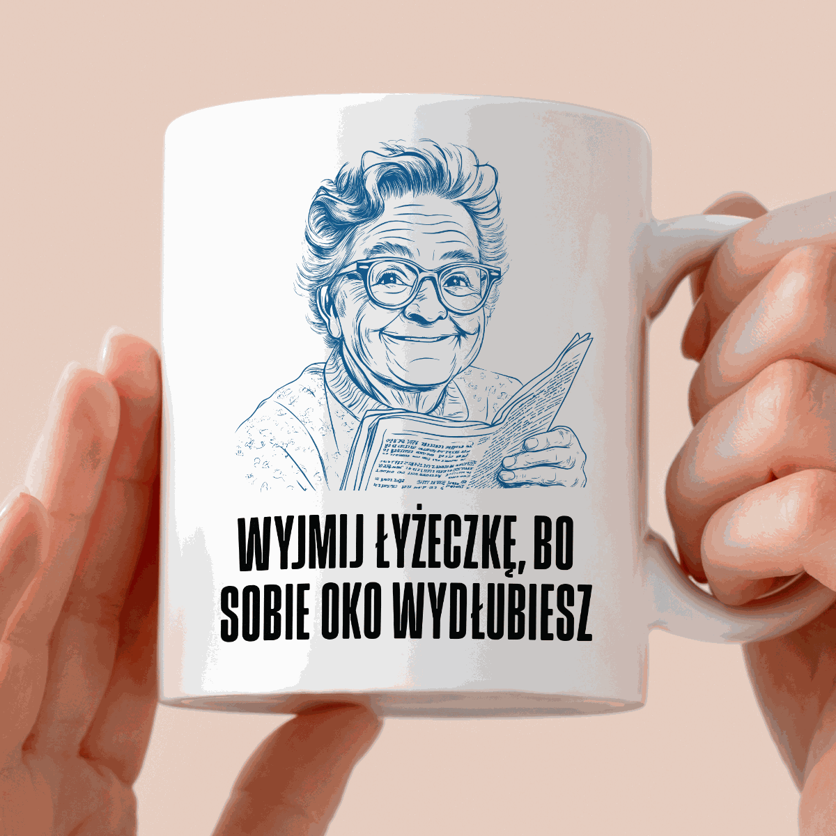 Kubek z cytatem Dziadka "Wyjmij łyżeczkę, bo sobie oko wydłubiesz"