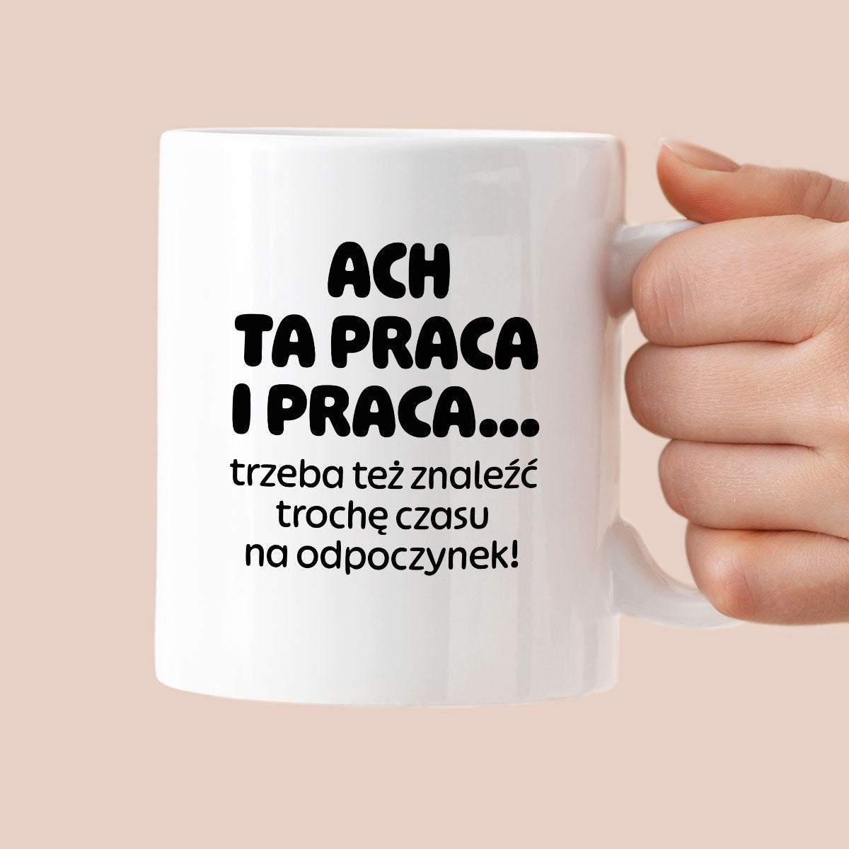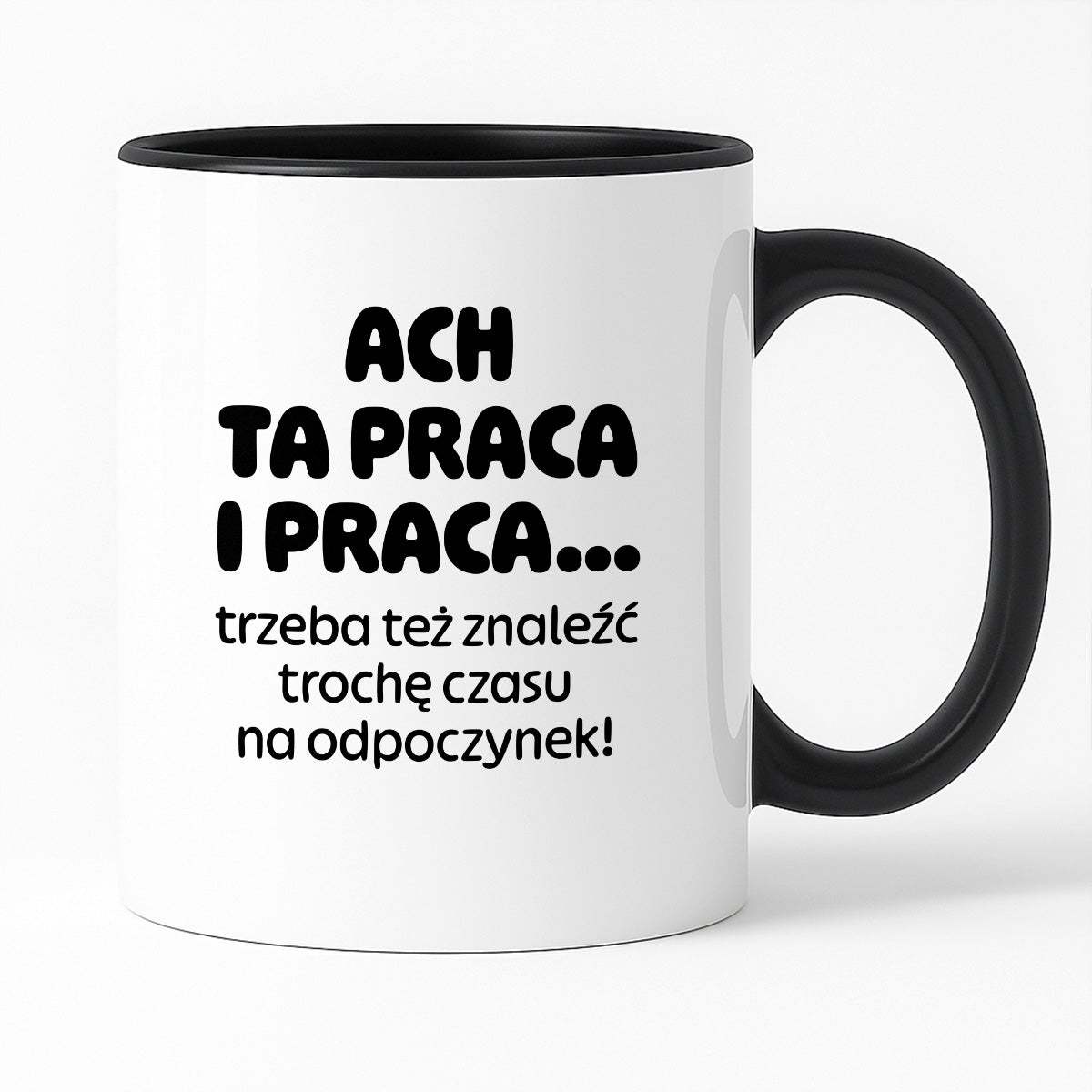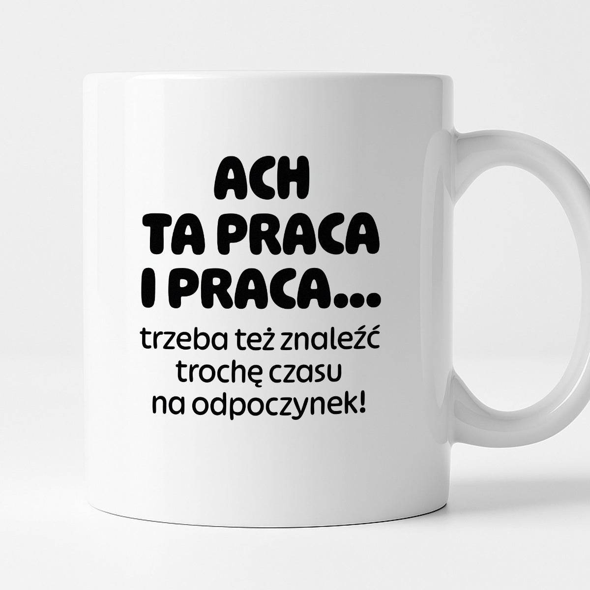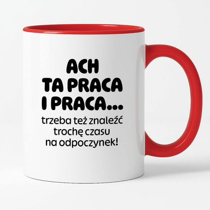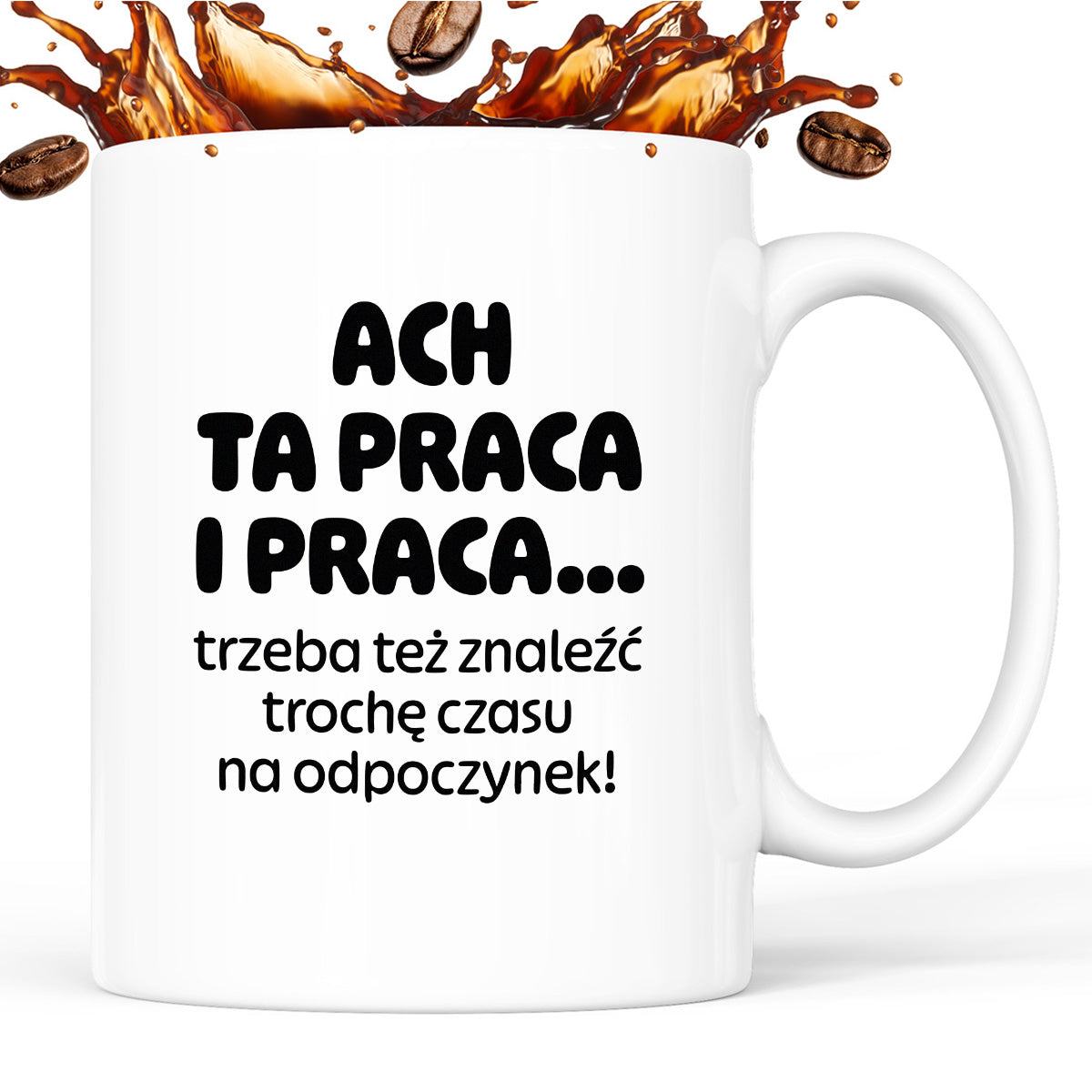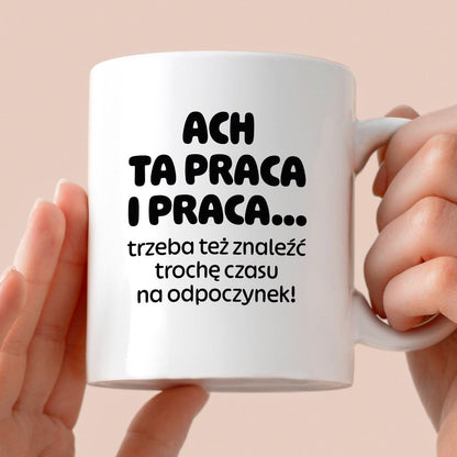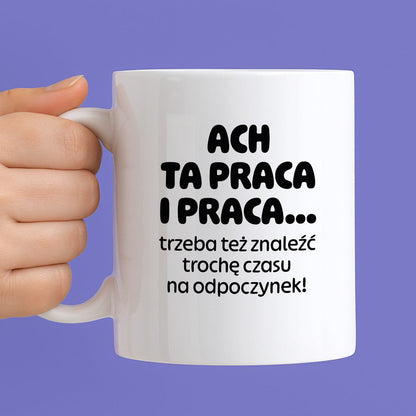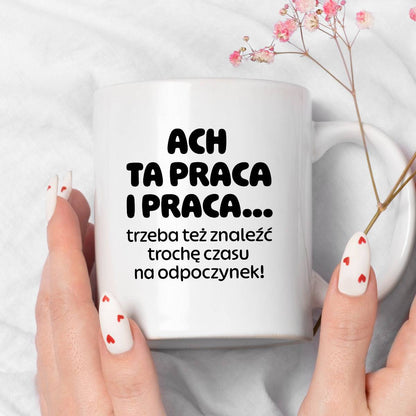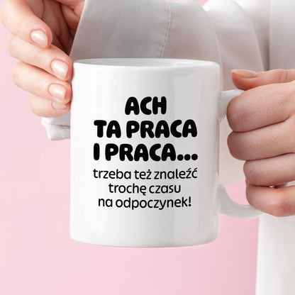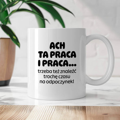 Kubek z nadrukiem - "ACH TA PRACA I PRACA... trzeba też znaleźć trochę czasu na odpoczynek!"