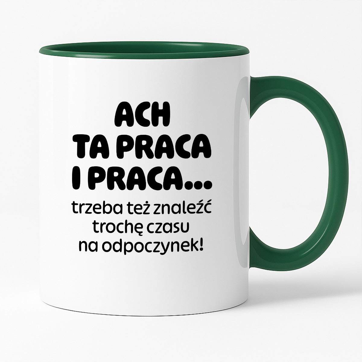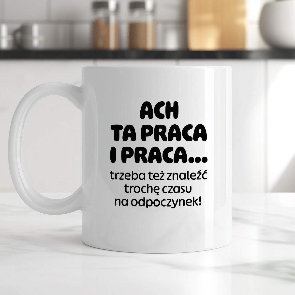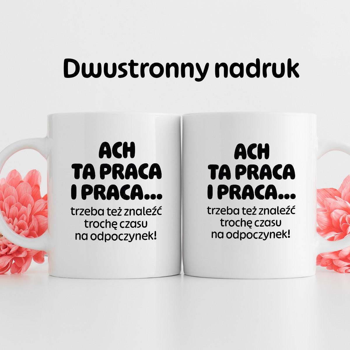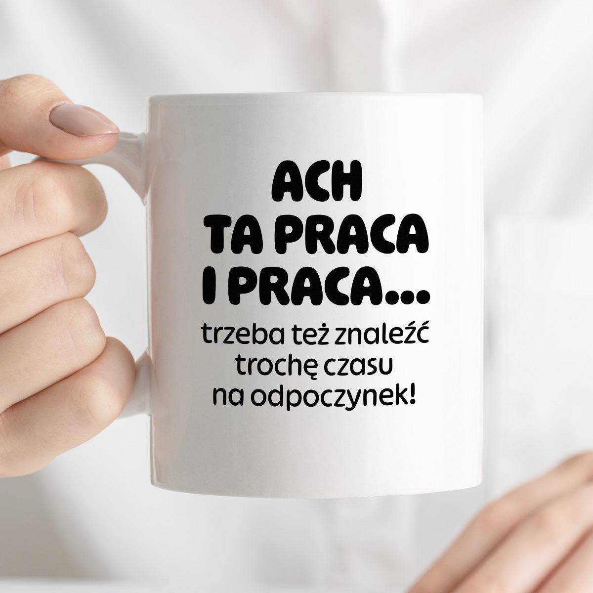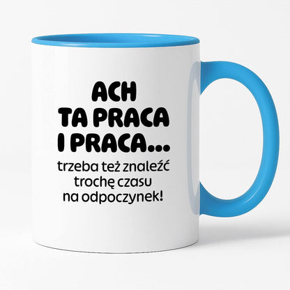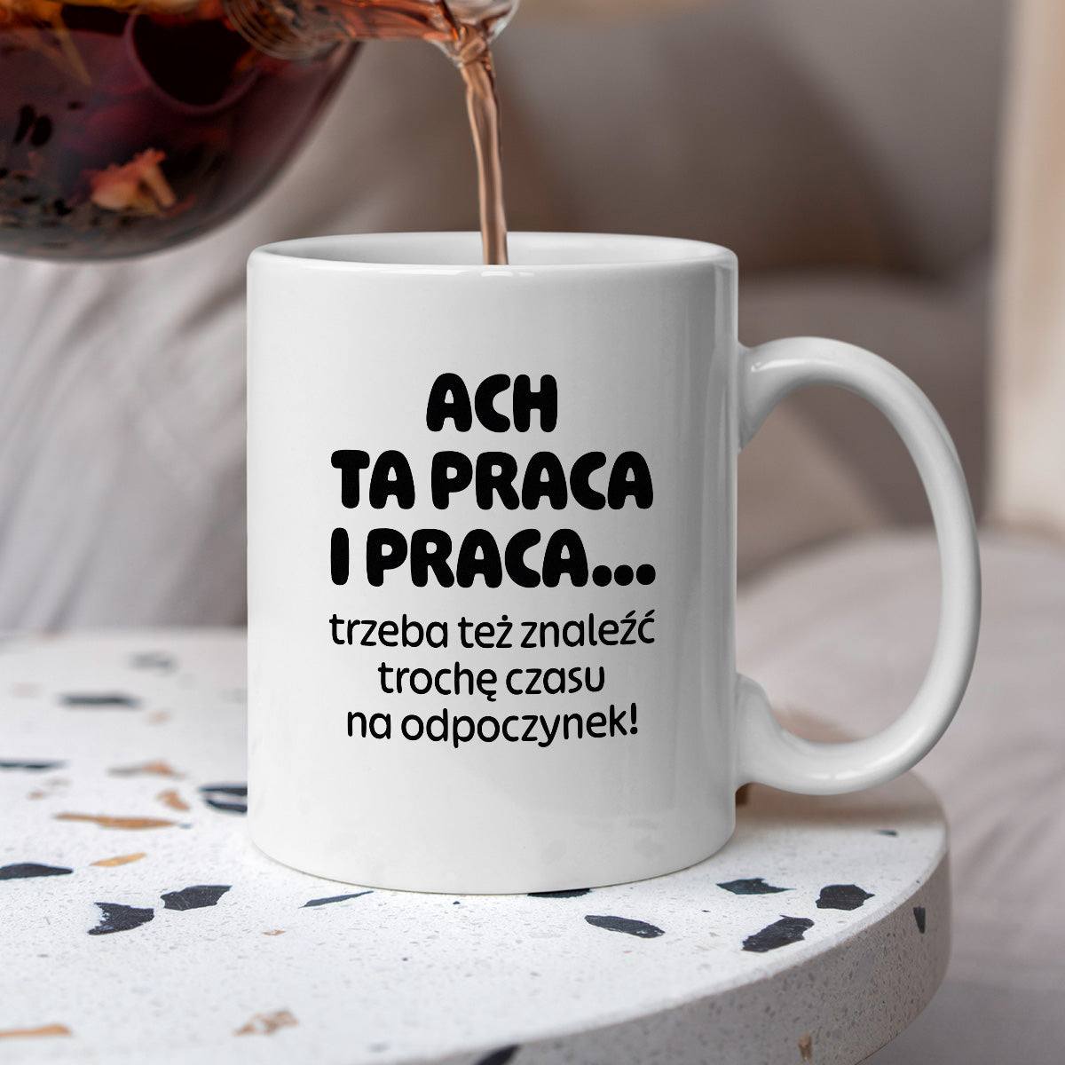 Kubek z nadrukiem - "ACH TA PRACA I PRACA... trzeba też znaleźć trochę czasu na odpoczynek!"