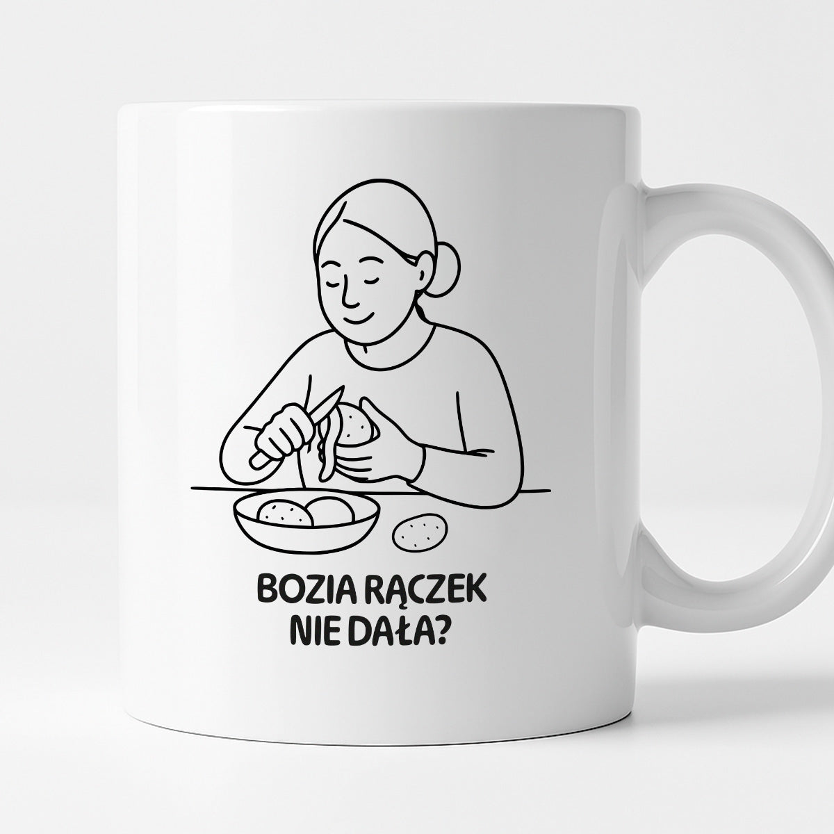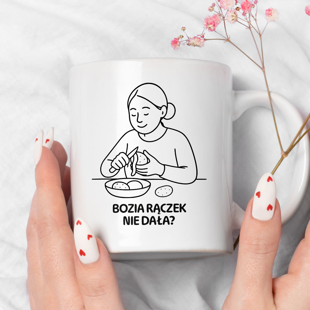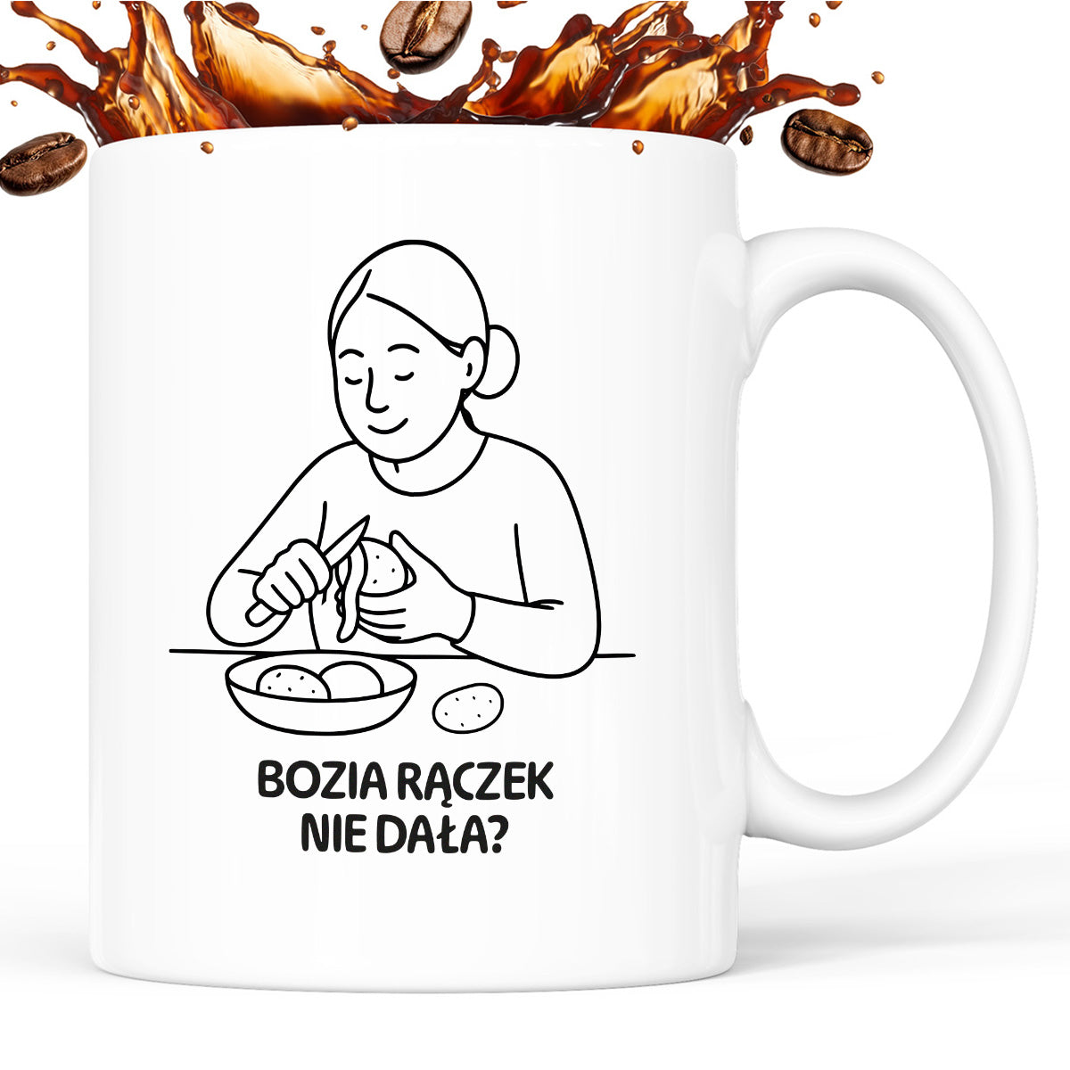 Jeśli Twoja mama to kobieta z charakterem, która potrafi powiedzieć prosto z mostu, co myśli, ten kubek będzie strzałem w dziesiątkę. Napis „Bozia rączek nie dała?” to kultowe powiedzenie, które niejednokrotnie padało w polskich domach, gdy dzieci unikały obowiązków domowych. Teraz możesz podarować mamie ten zabawny kubek jako wyraz uznania dla jej cierpliwości i poczucia humoru.
