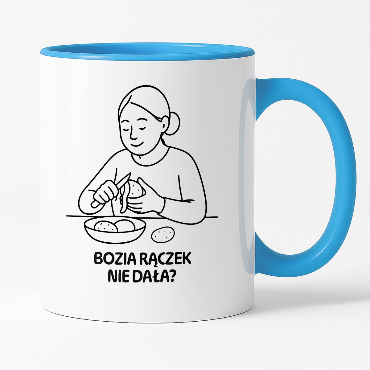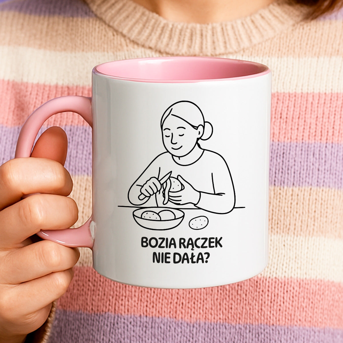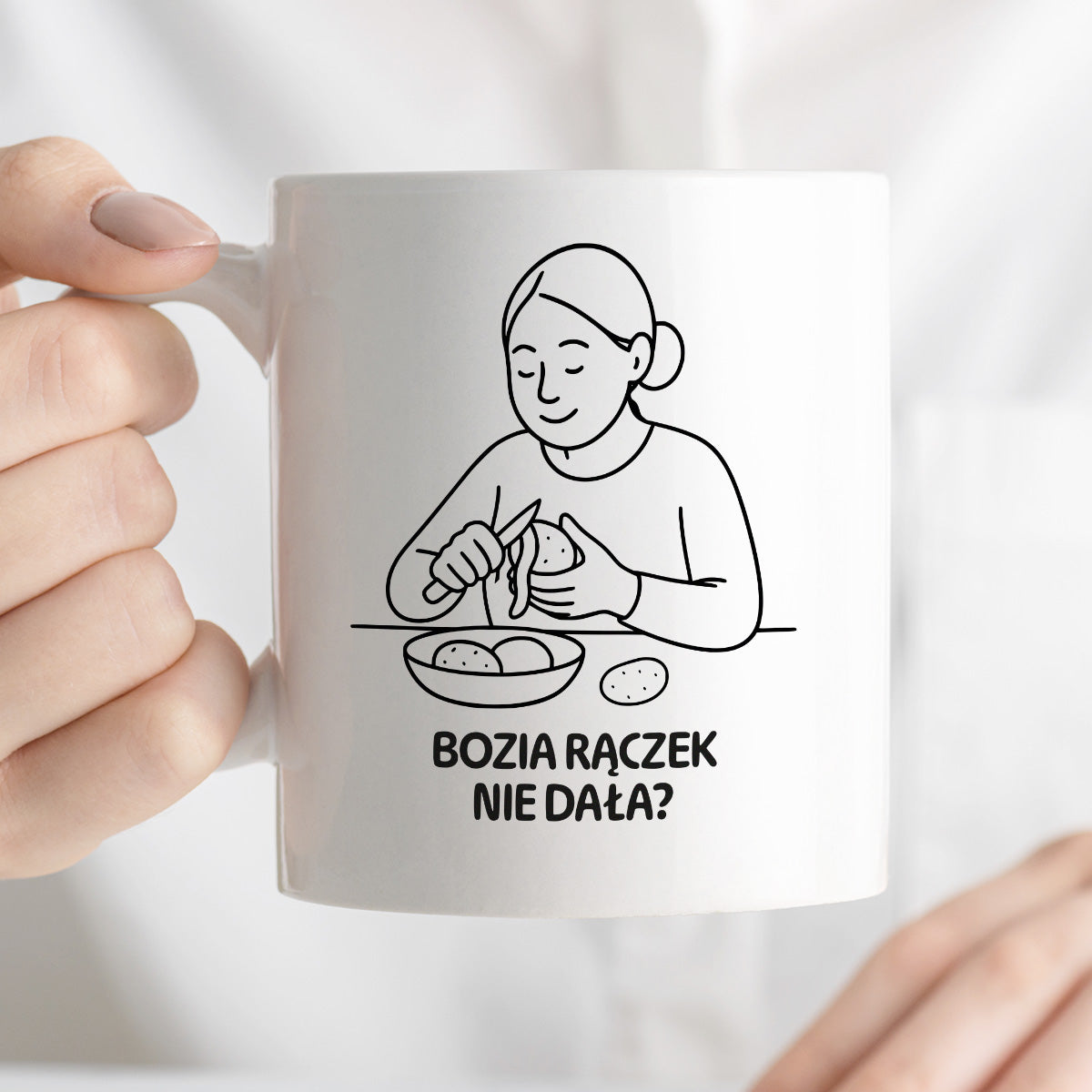 Jeśli Twoja mama to kobieta z charakterem, która potrafi powiedzieć prosto z mostu, co myśli, ten kubek będzie strzałem w dziesiątkę. Napis „Bozia rączek nie dała?” to kultowe powiedzenie, które niejednokrotnie padało w polskich domach, gdy dzieci unikały obowiązków domowych. Teraz możesz podarować mamie ten zabawny kubek jako wyraz uznania dla jej cierpliwości i poczucia humoru.