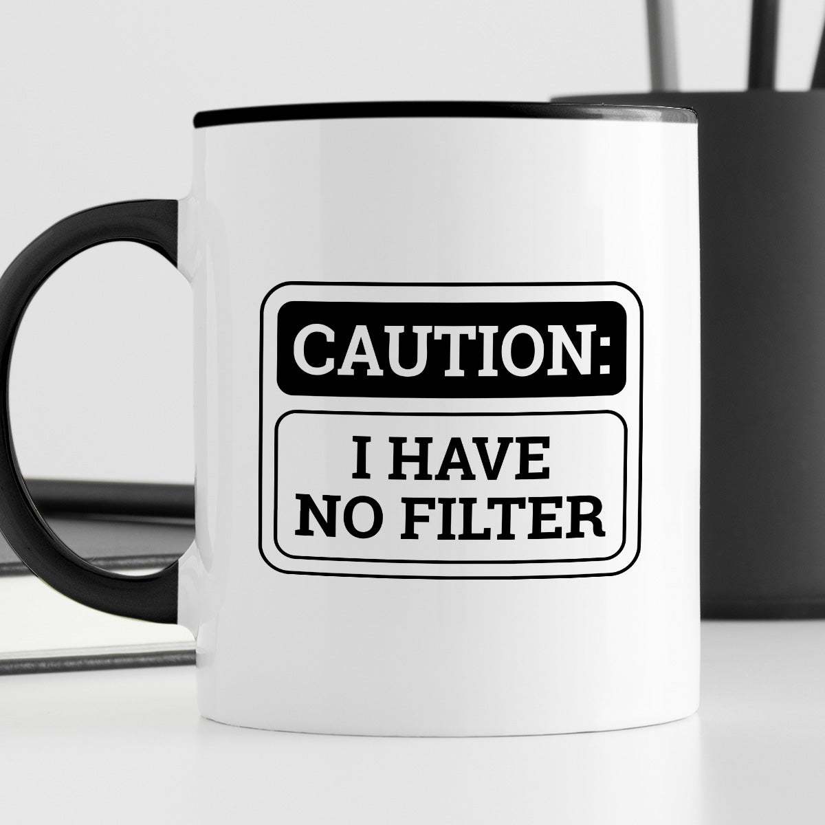Rozpocznij swój dzień z uśmiechem dzięki naszemu niebanalnemu kubkowi z nadrukiem "Caution: I have no filter"! Kubek ten doskonale sprawdzi się jako towarzysz Twojej porannej kawy lub herbaty. Wyróżnia go nieprzeciętny humor, który doda szczyptę uśmiechu do Twojej (zapewne często trudnej) codzienności. Czy warto go mieć? Odpowiedź jest tylko jedna - oczywiście! 🤩