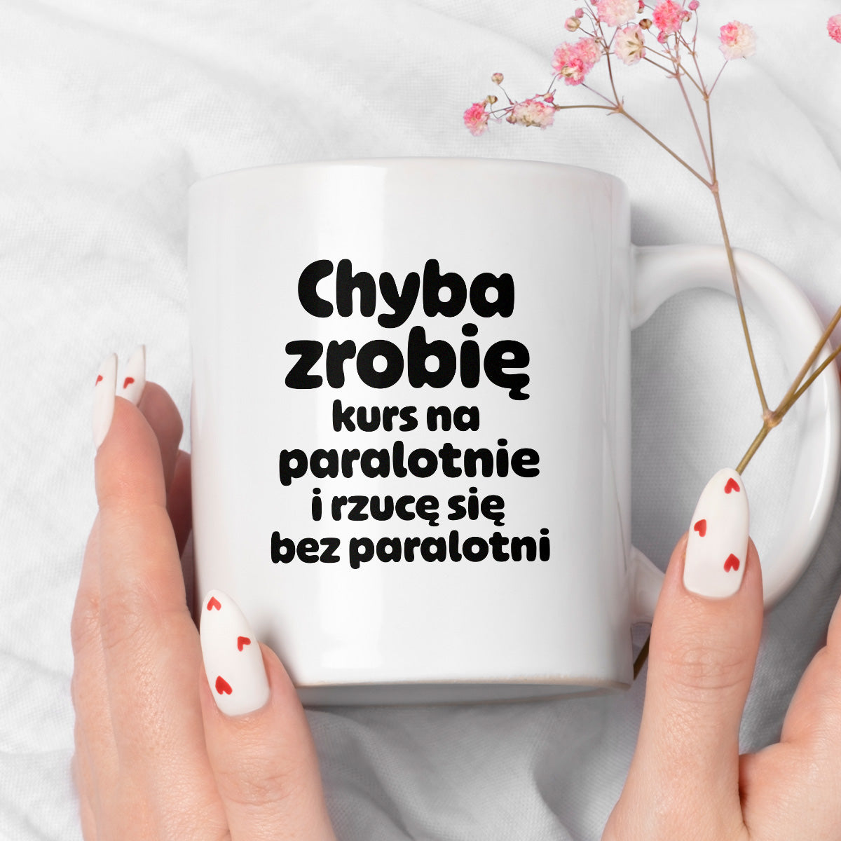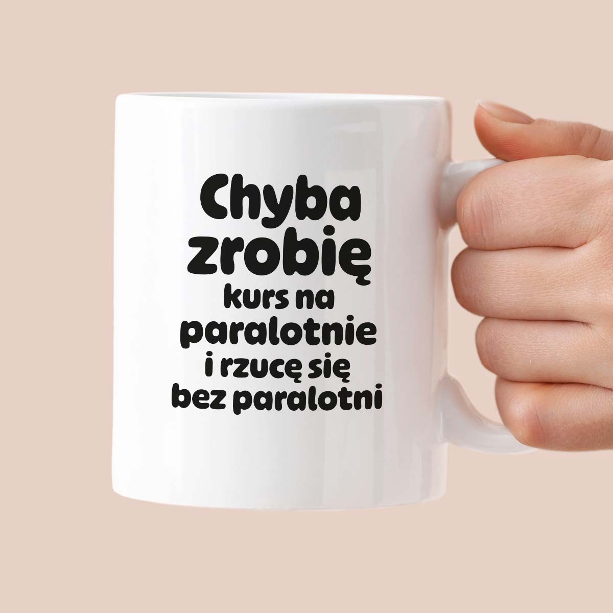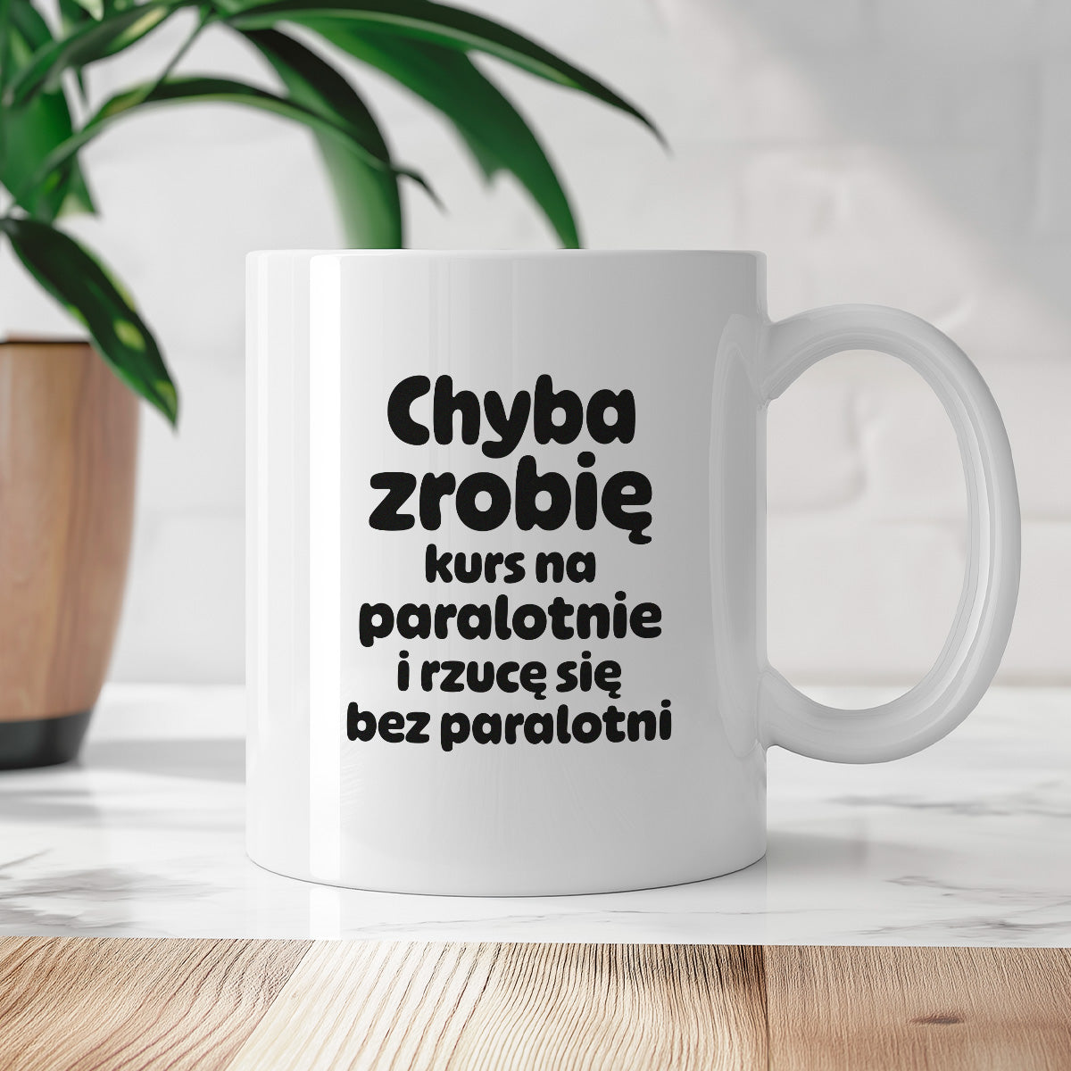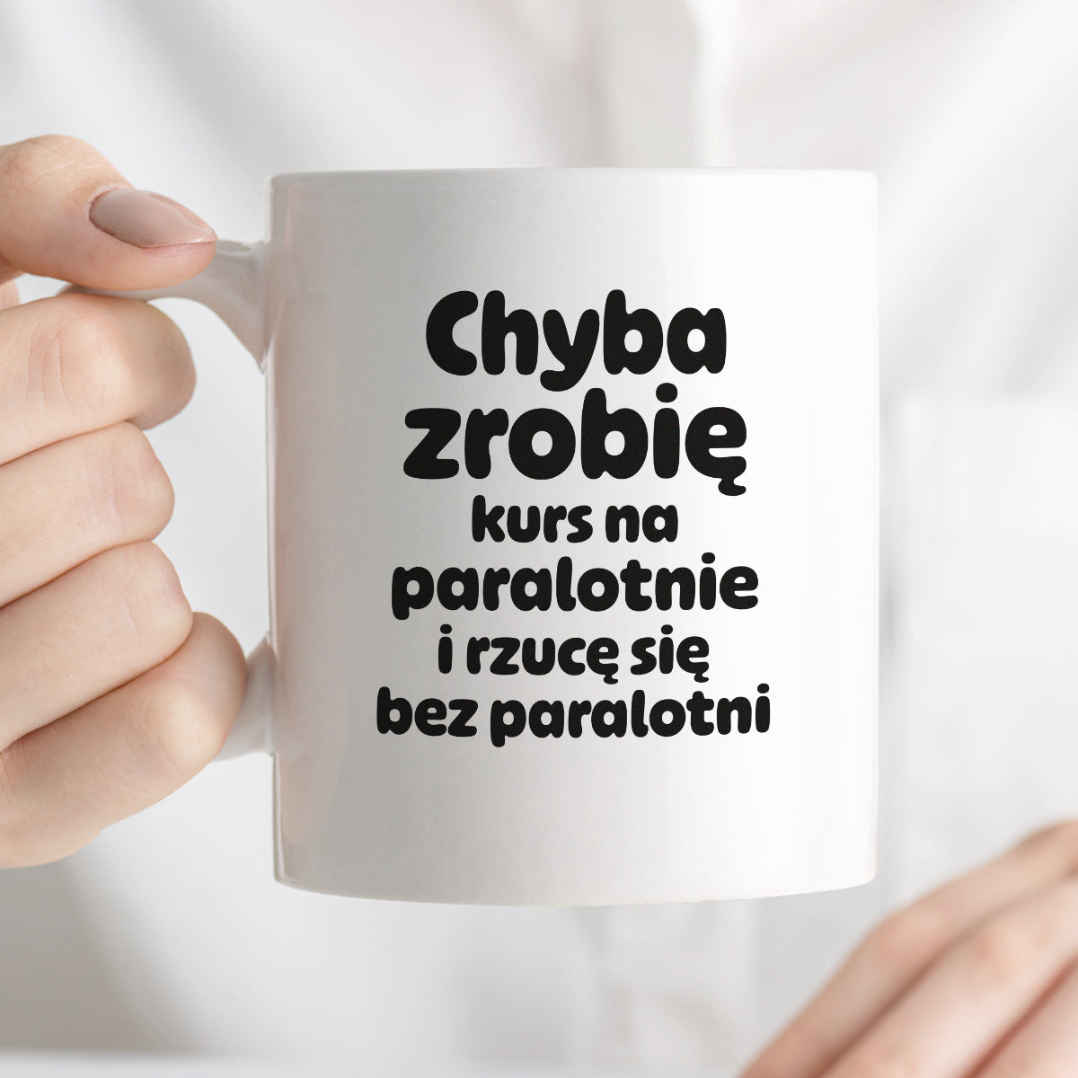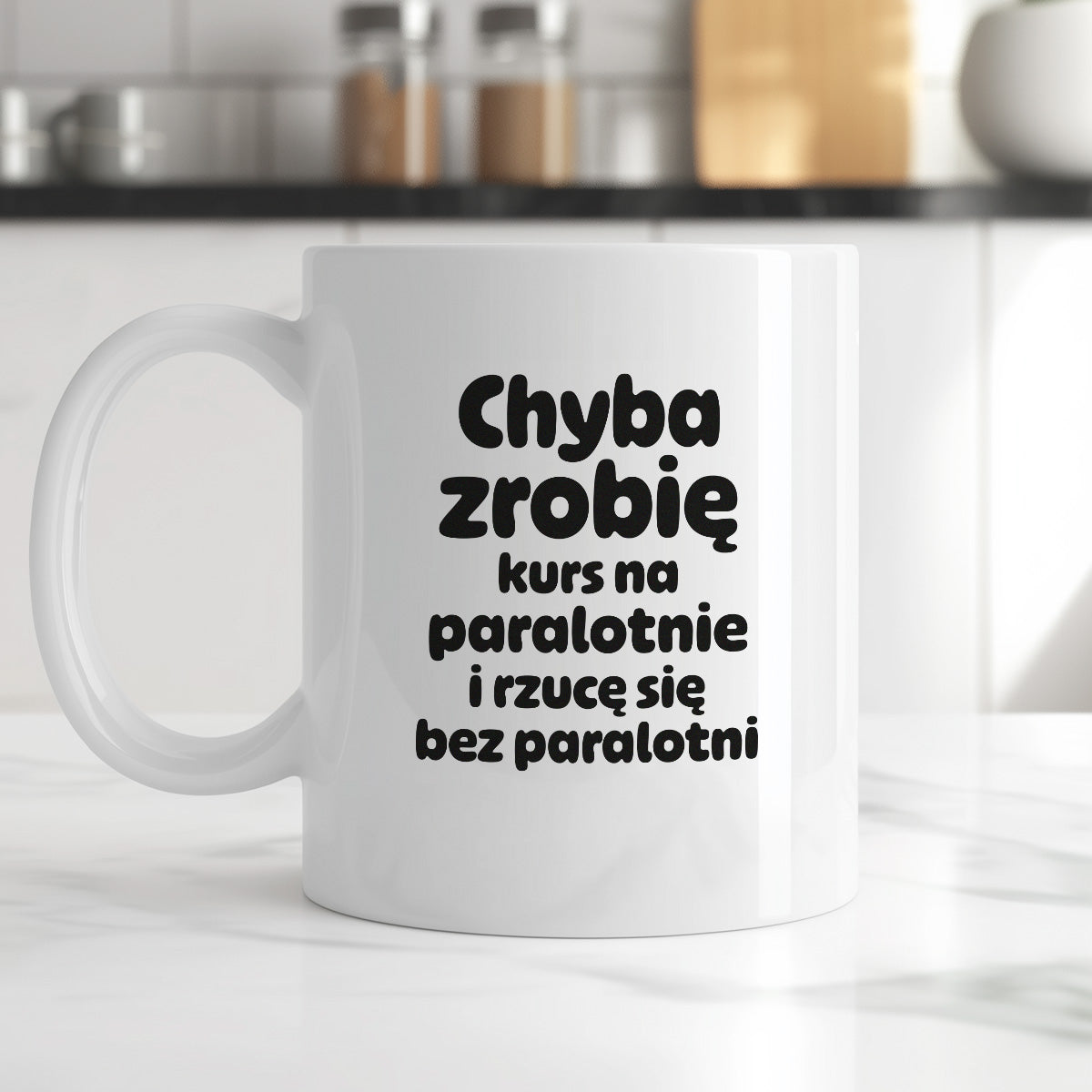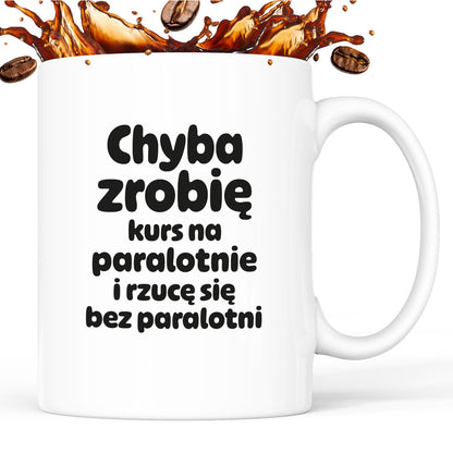 Kubek z nadrukiem - "Chyba zrobię kurs na paralotnię i rzucę się bez paralotni"