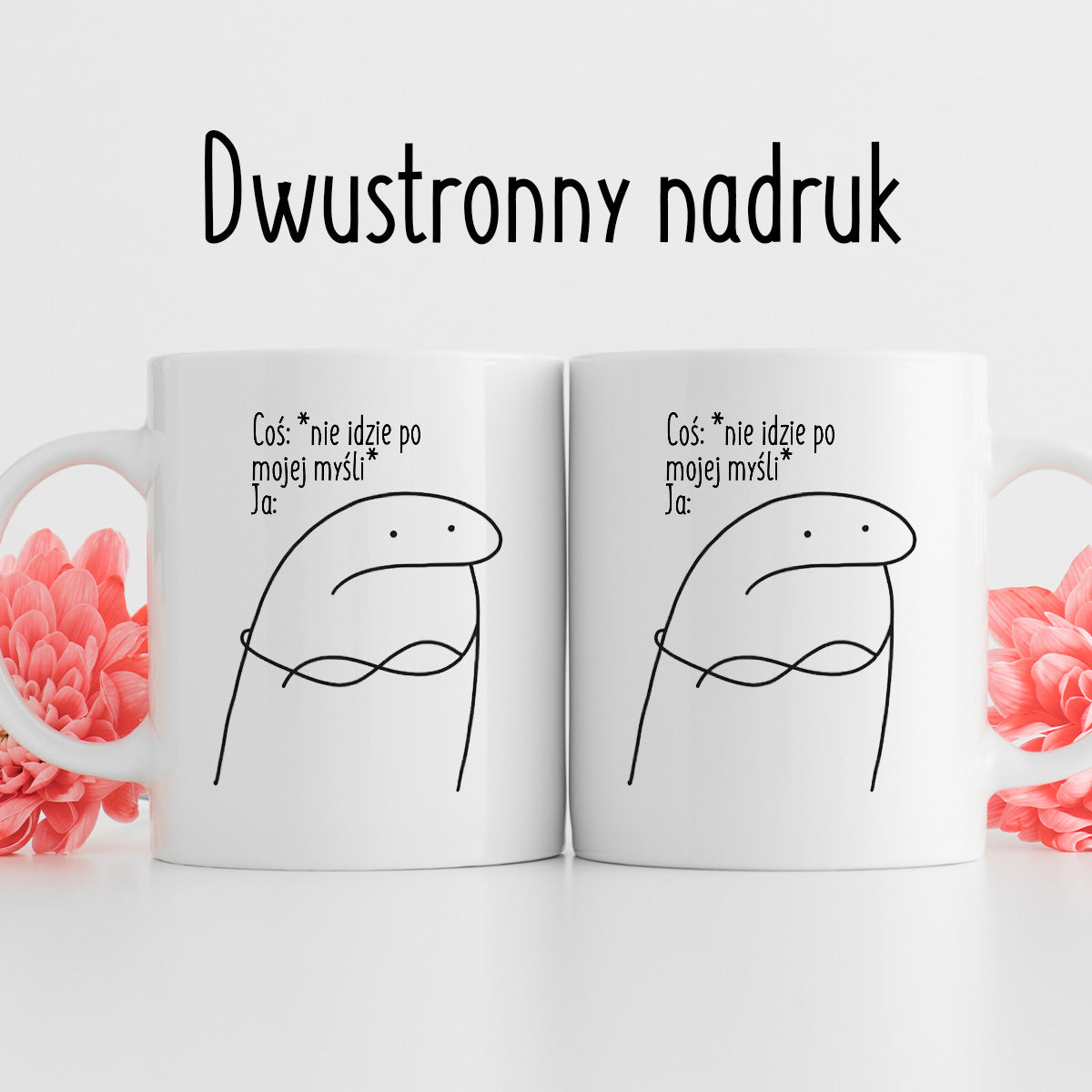 Kubek z nadrukiem "Coś: *nie idzie po mojej myśli* Ja:"