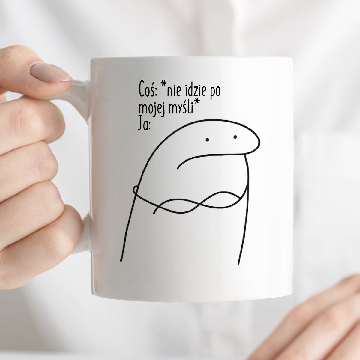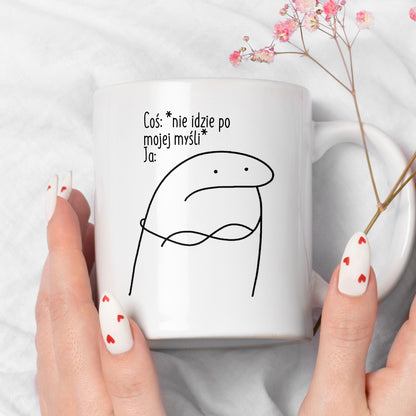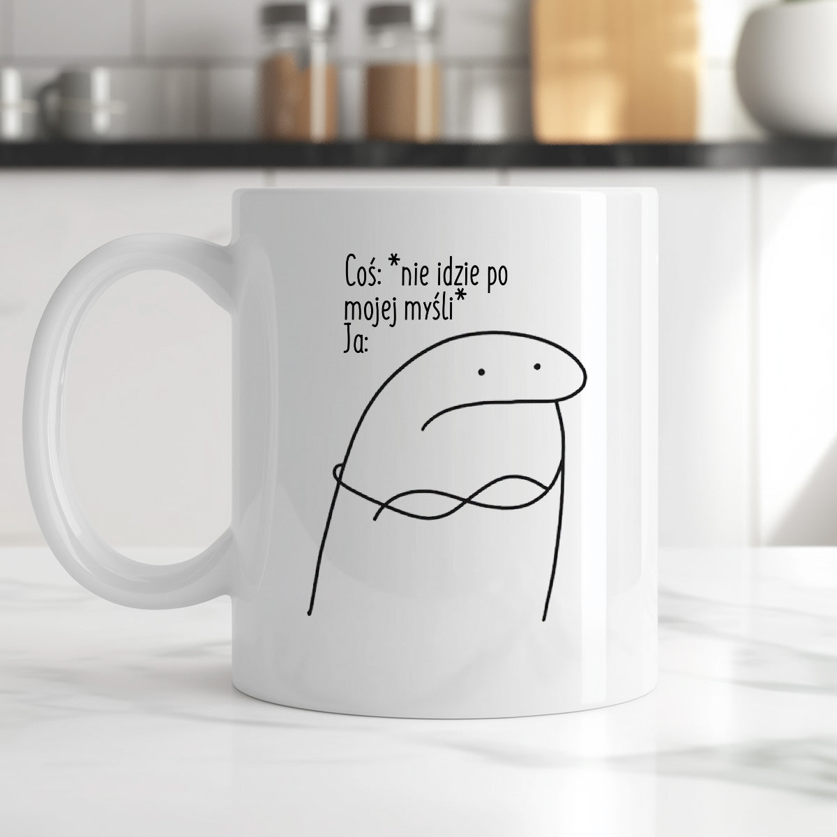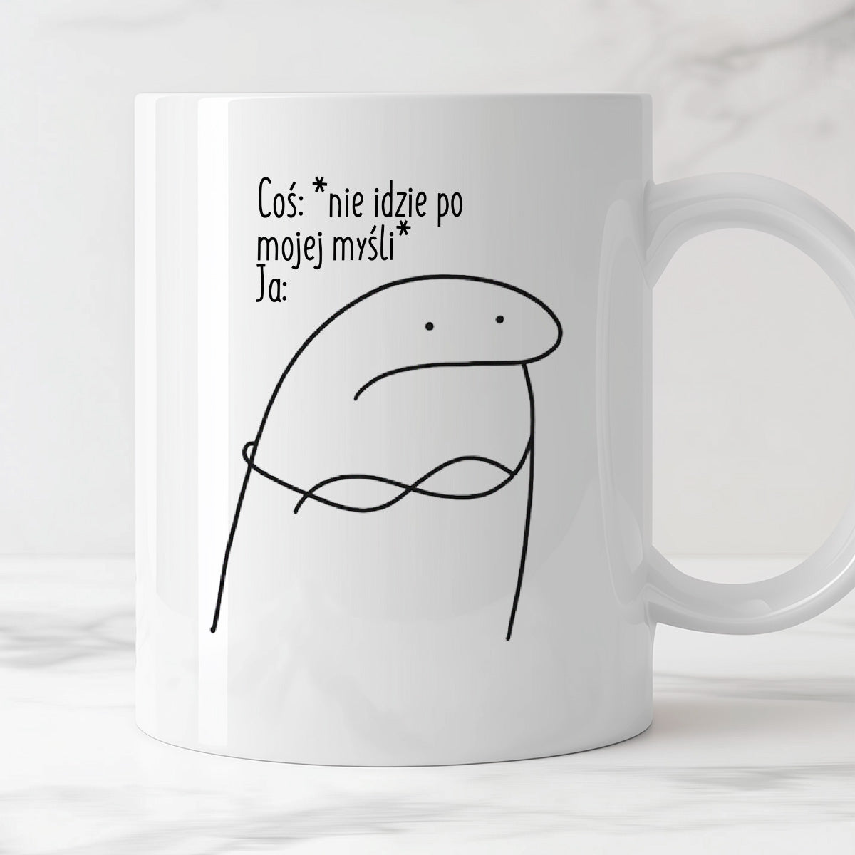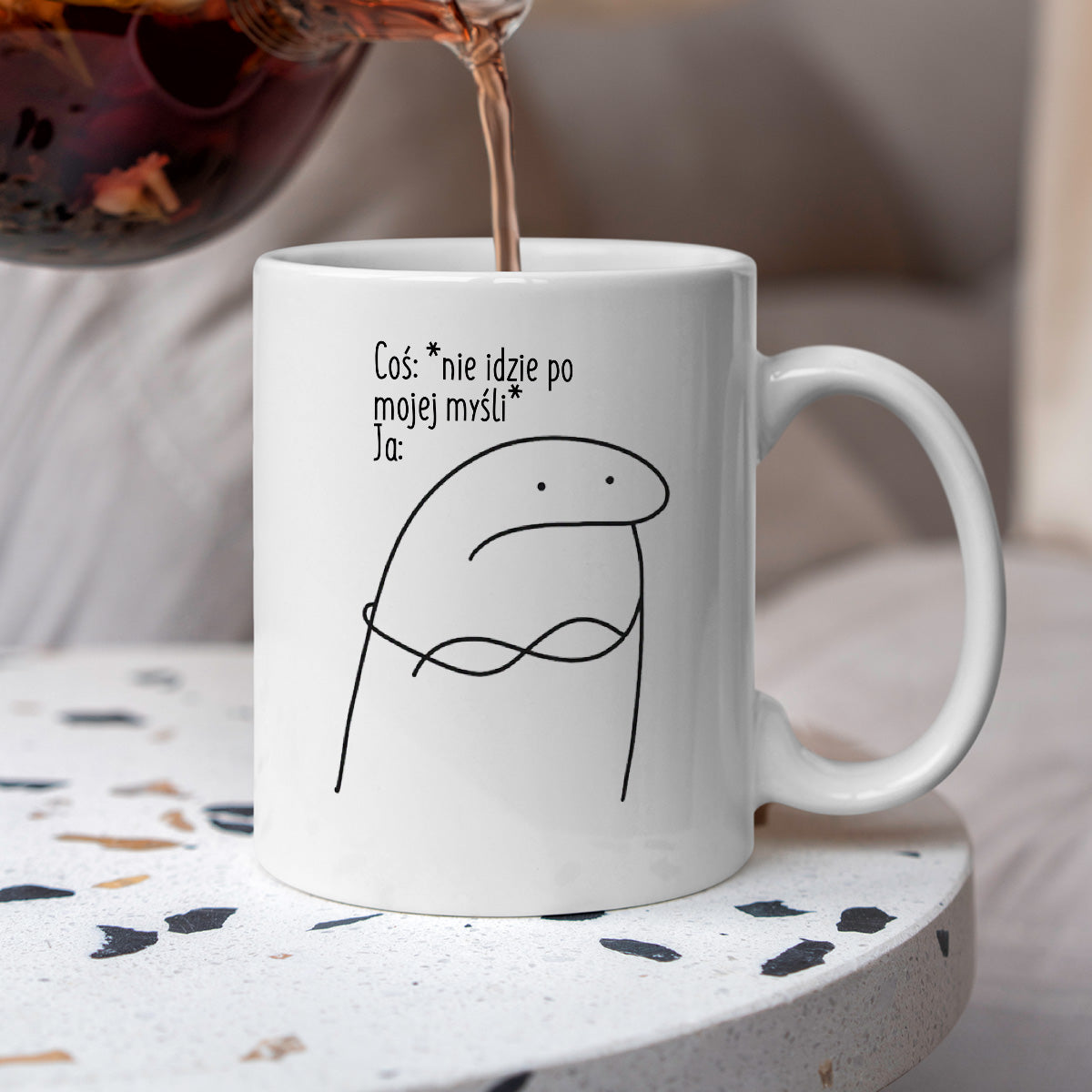 Kubek z nadrukiem "Coś: *nie idzie po  mojej myśli* Ja:"