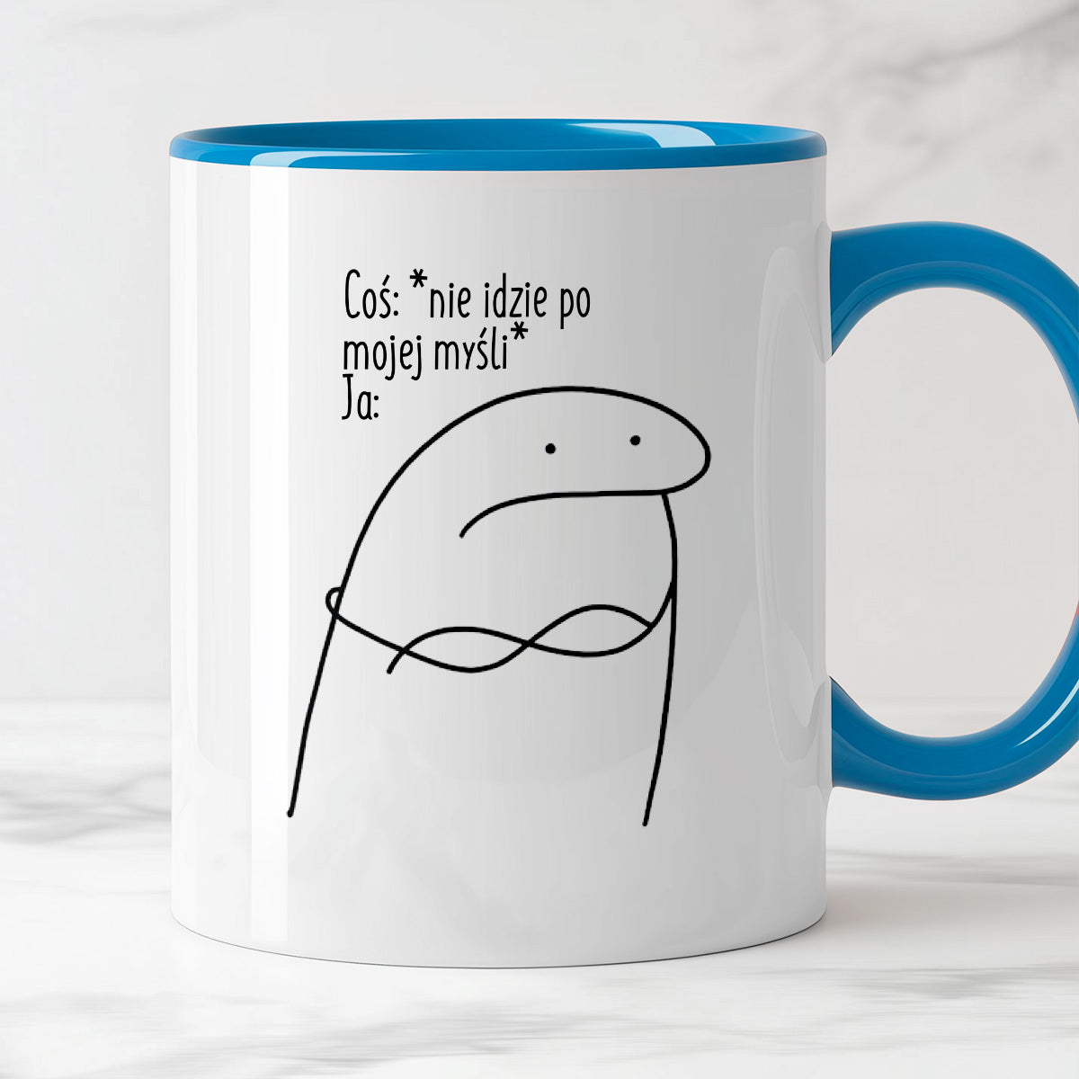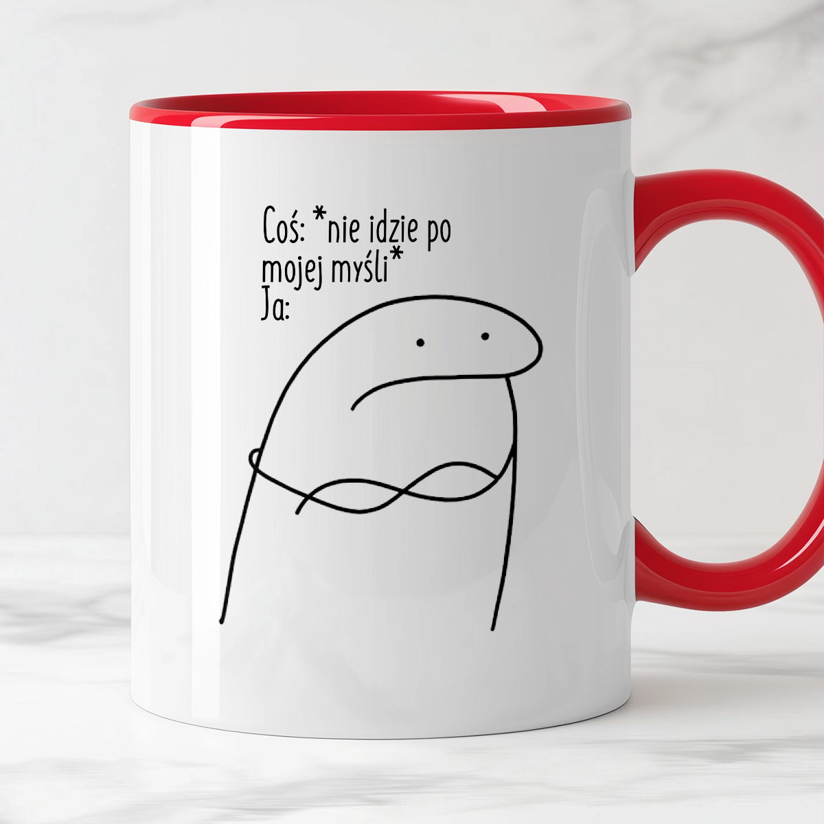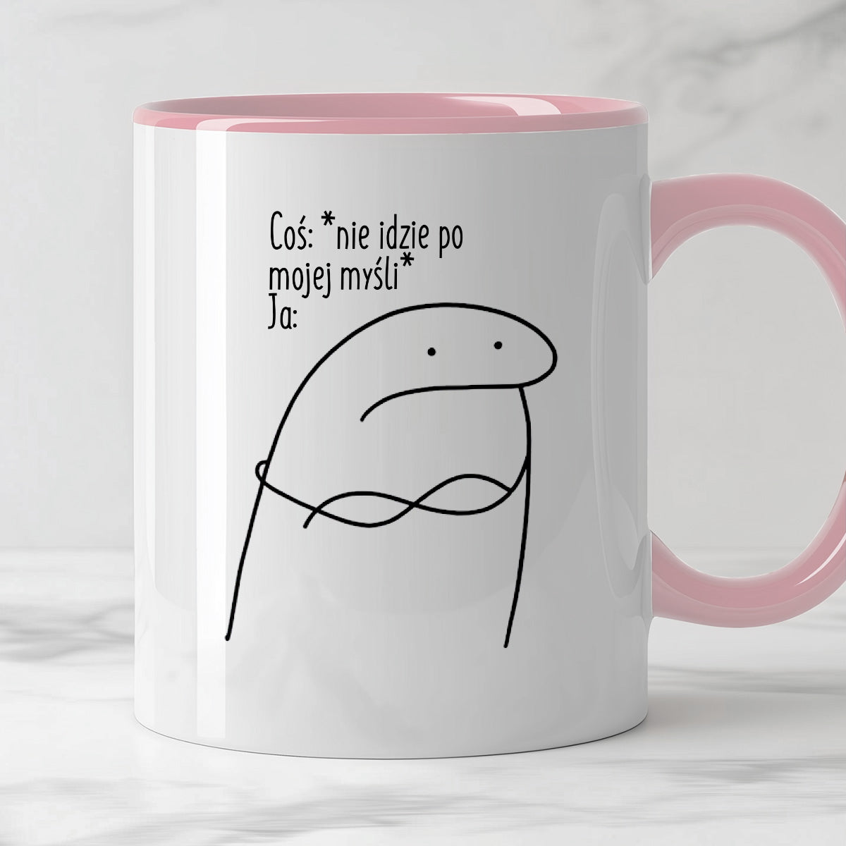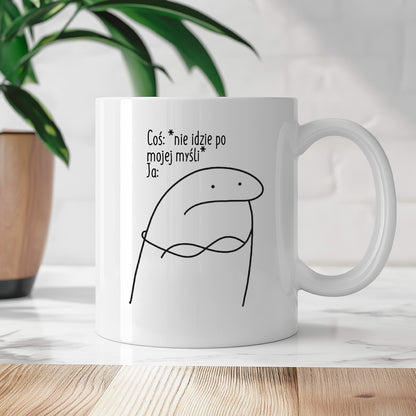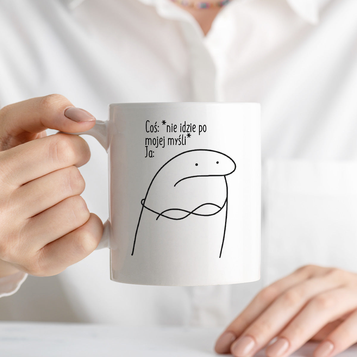 Kubek z nadrukiem "Coś: *nie idzie po  mojej myśli* Ja:"