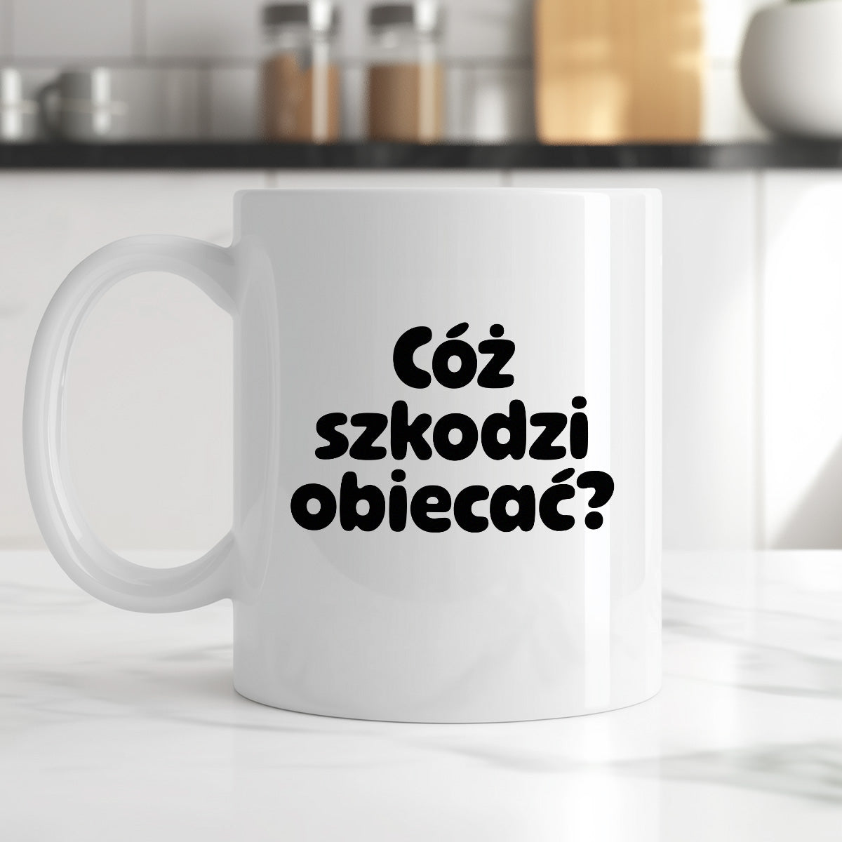 Kubek z nadrukiem - "Cóż szkodzi obiecać?"