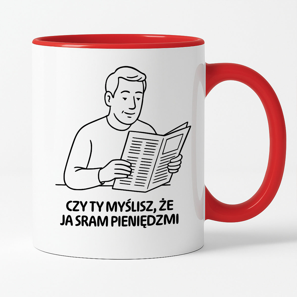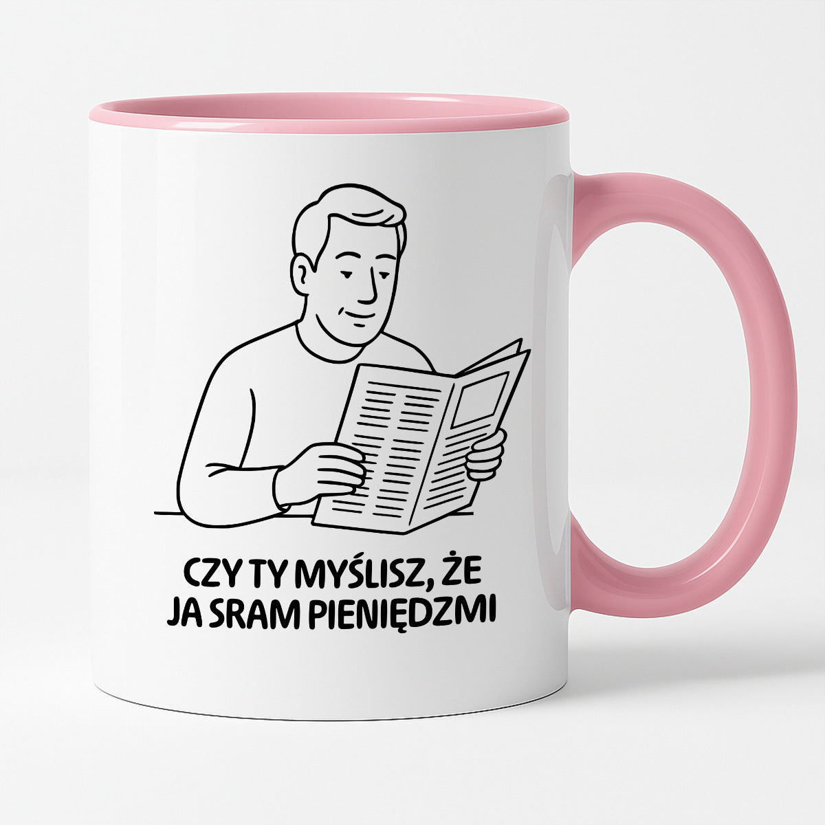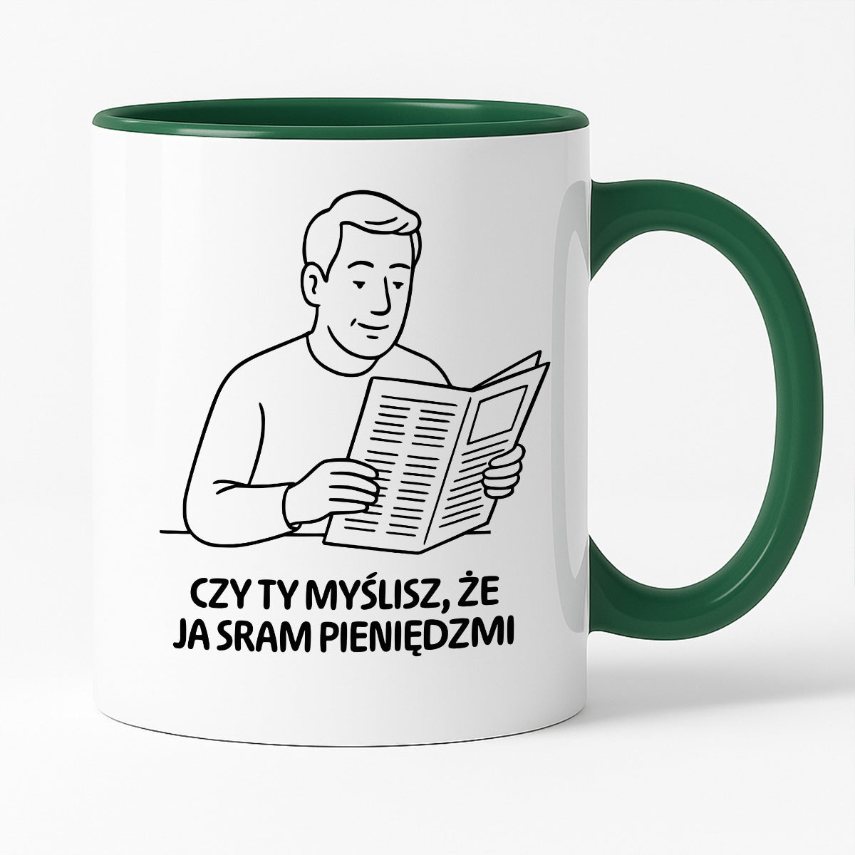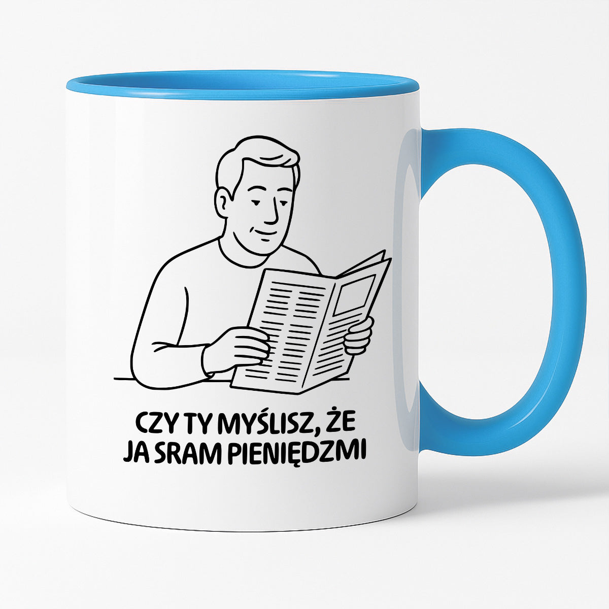 Kubek z nadrukiem "Czy Ty myślisz, że ja sram pieniędzmi" – prezent na Dzień Taty z przymrużeniem oka