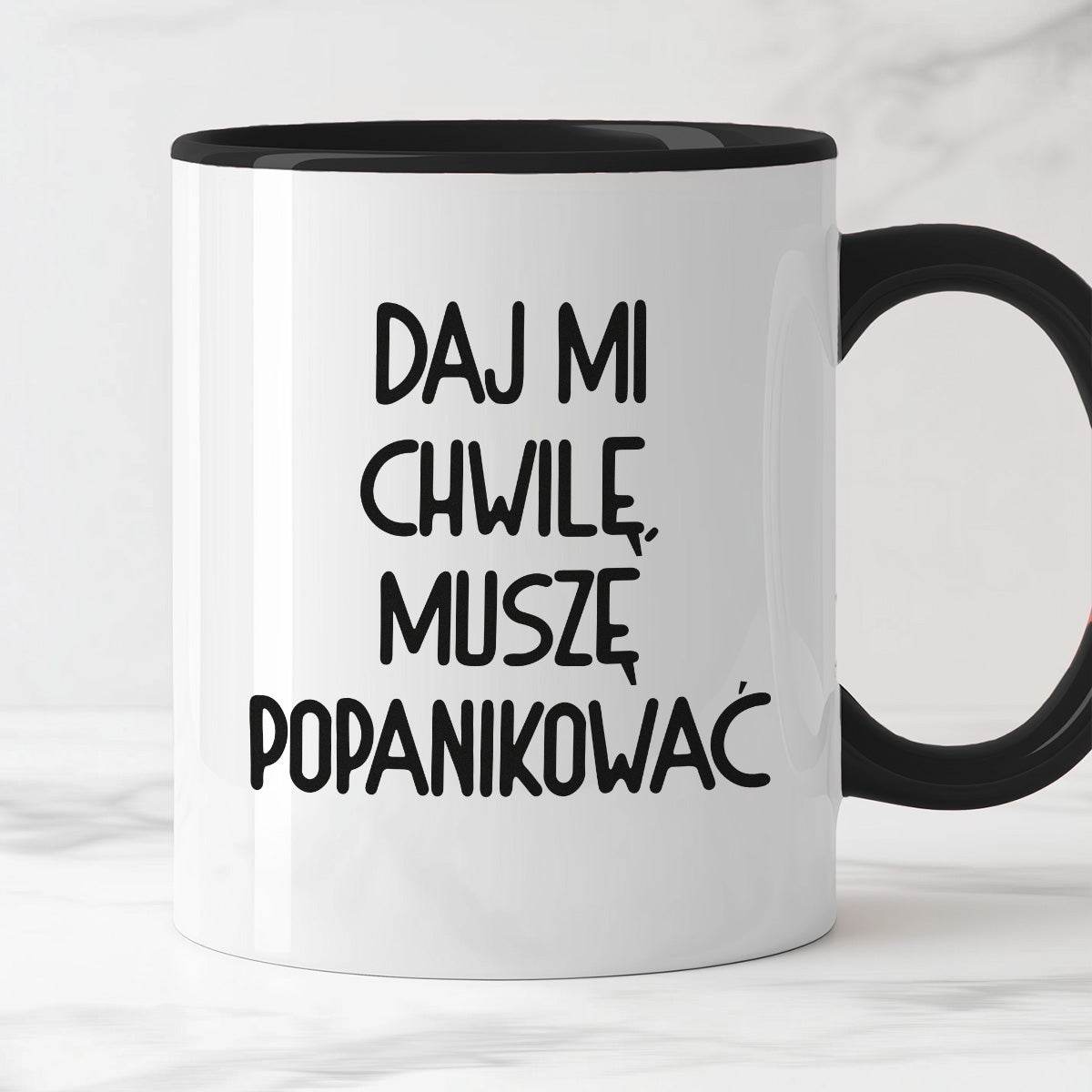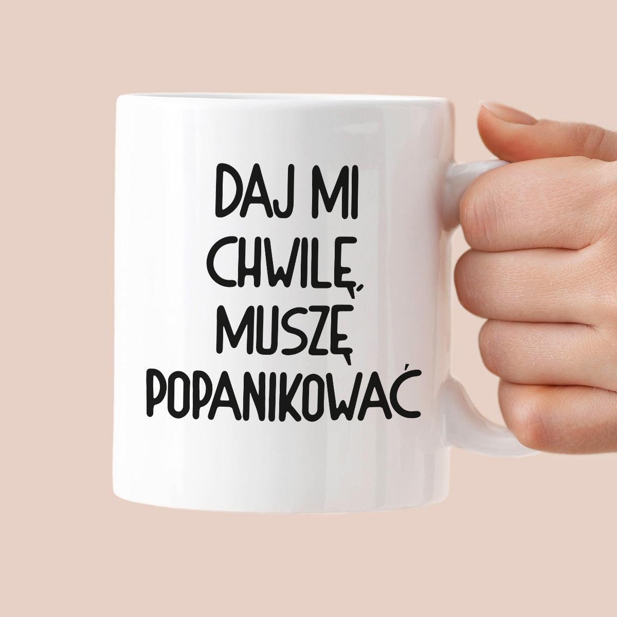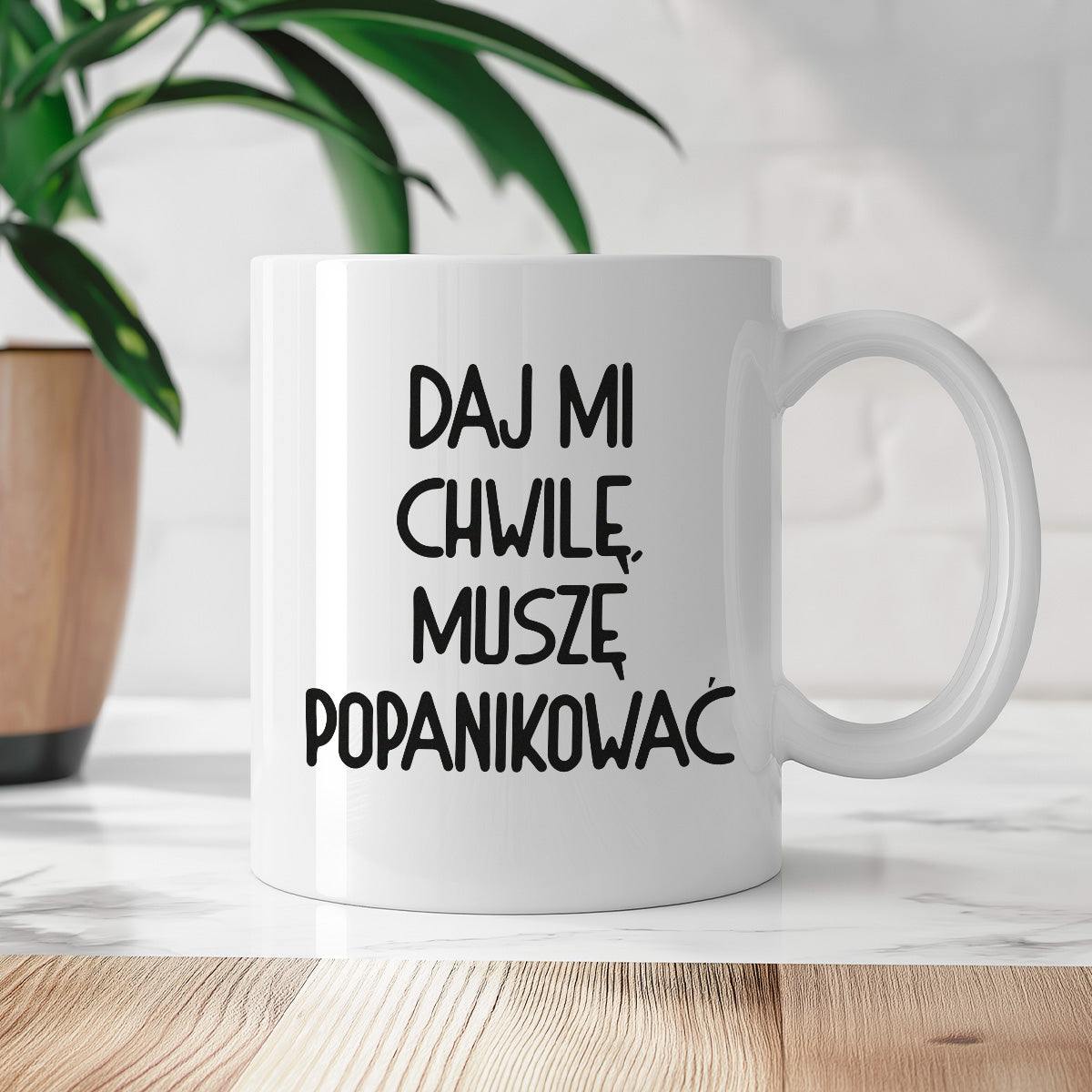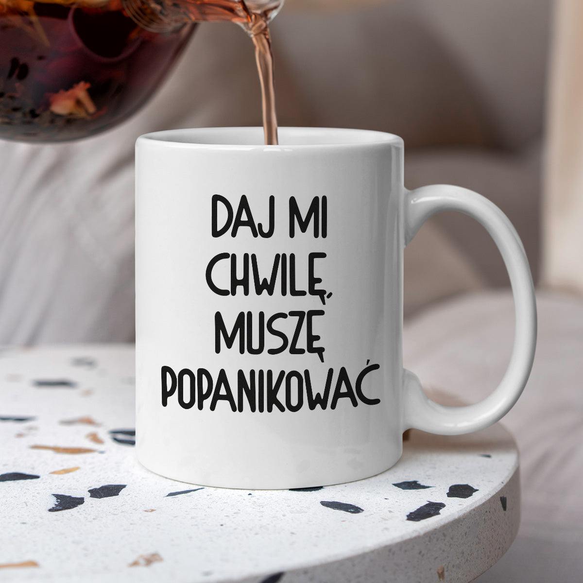 Kubek z nadrukiem "Daj mi chwilę, muszę popanikować"