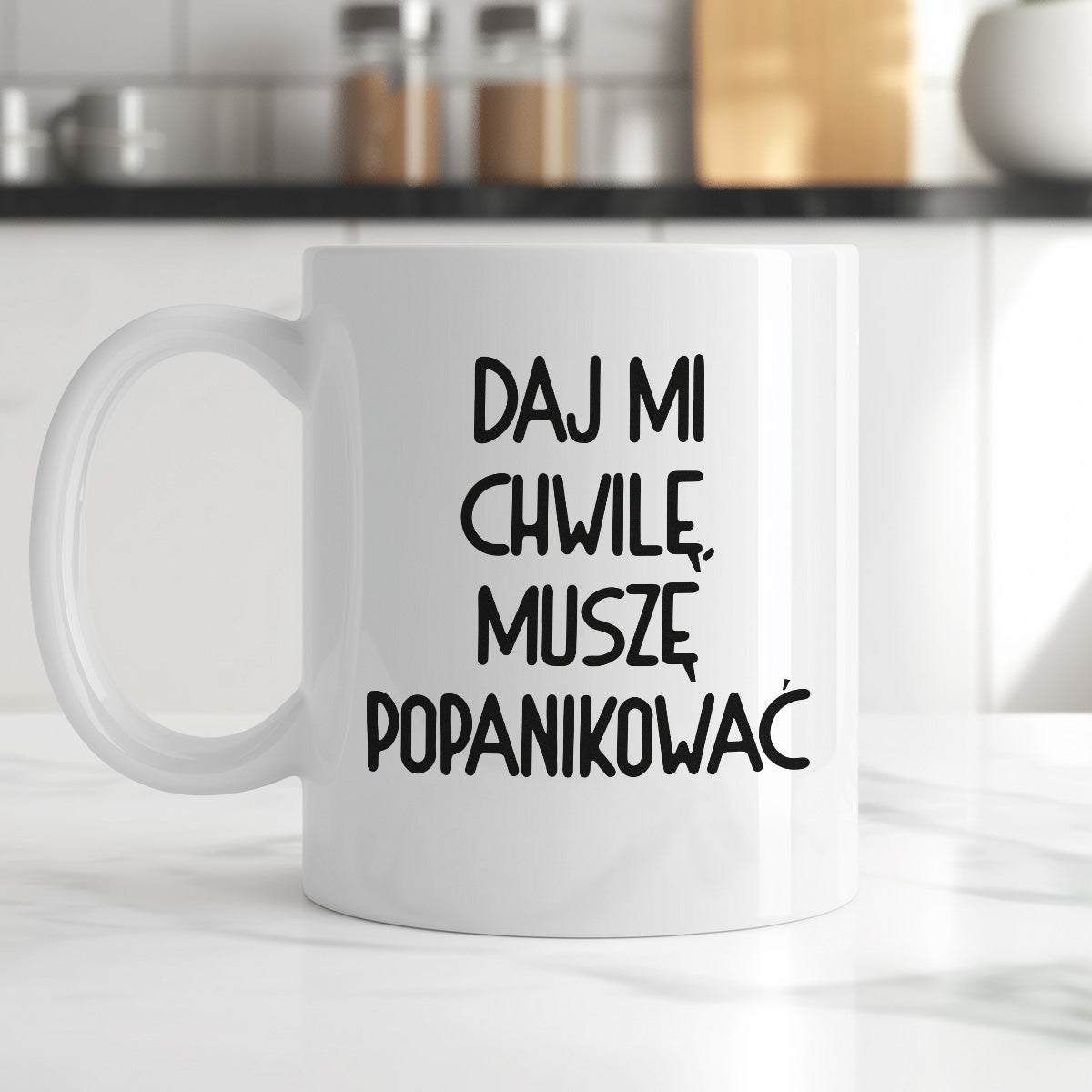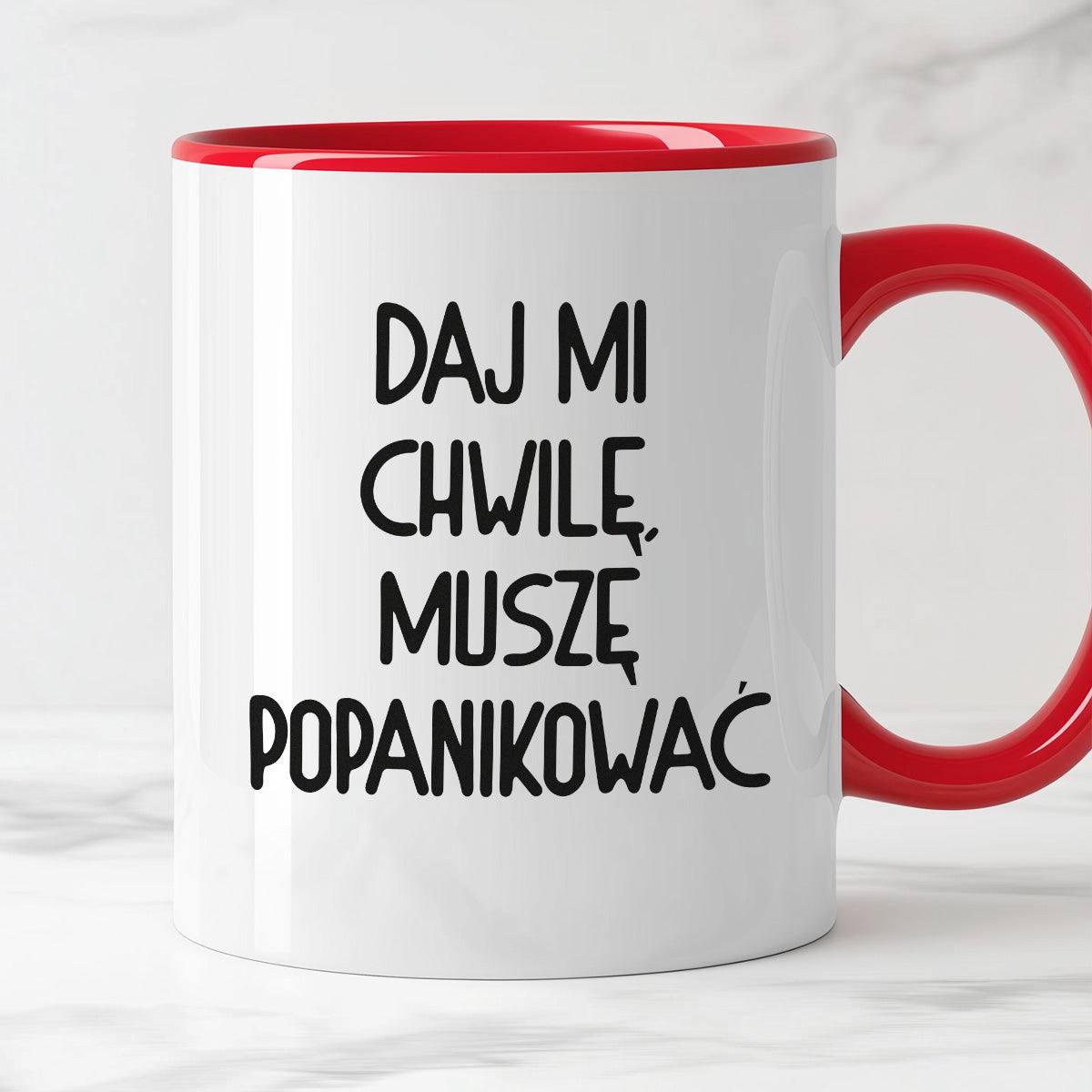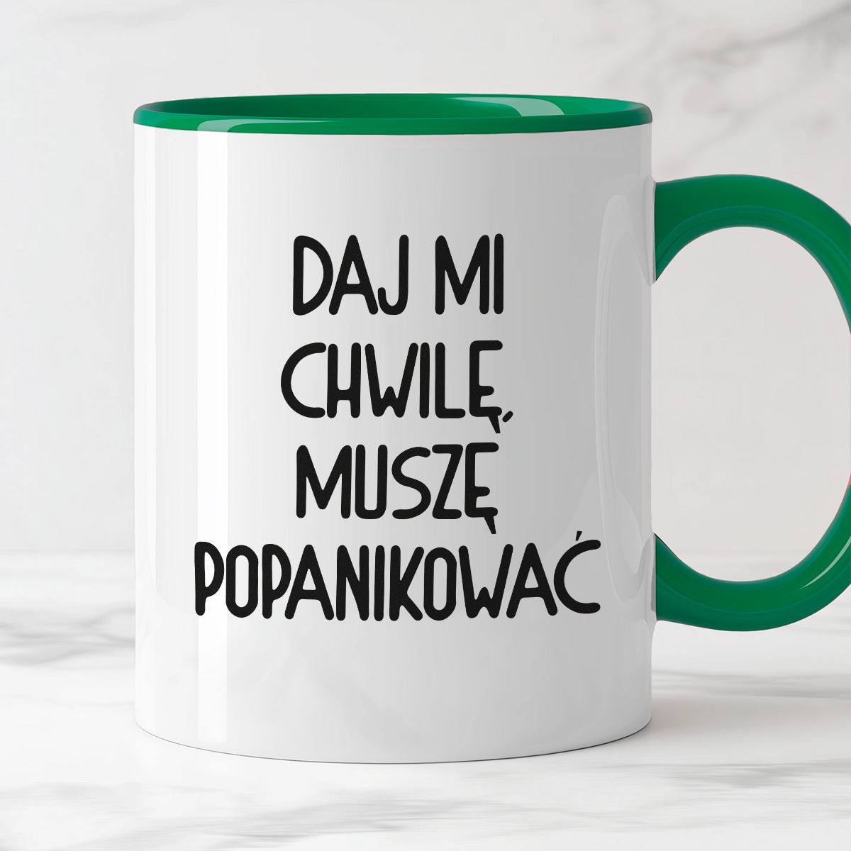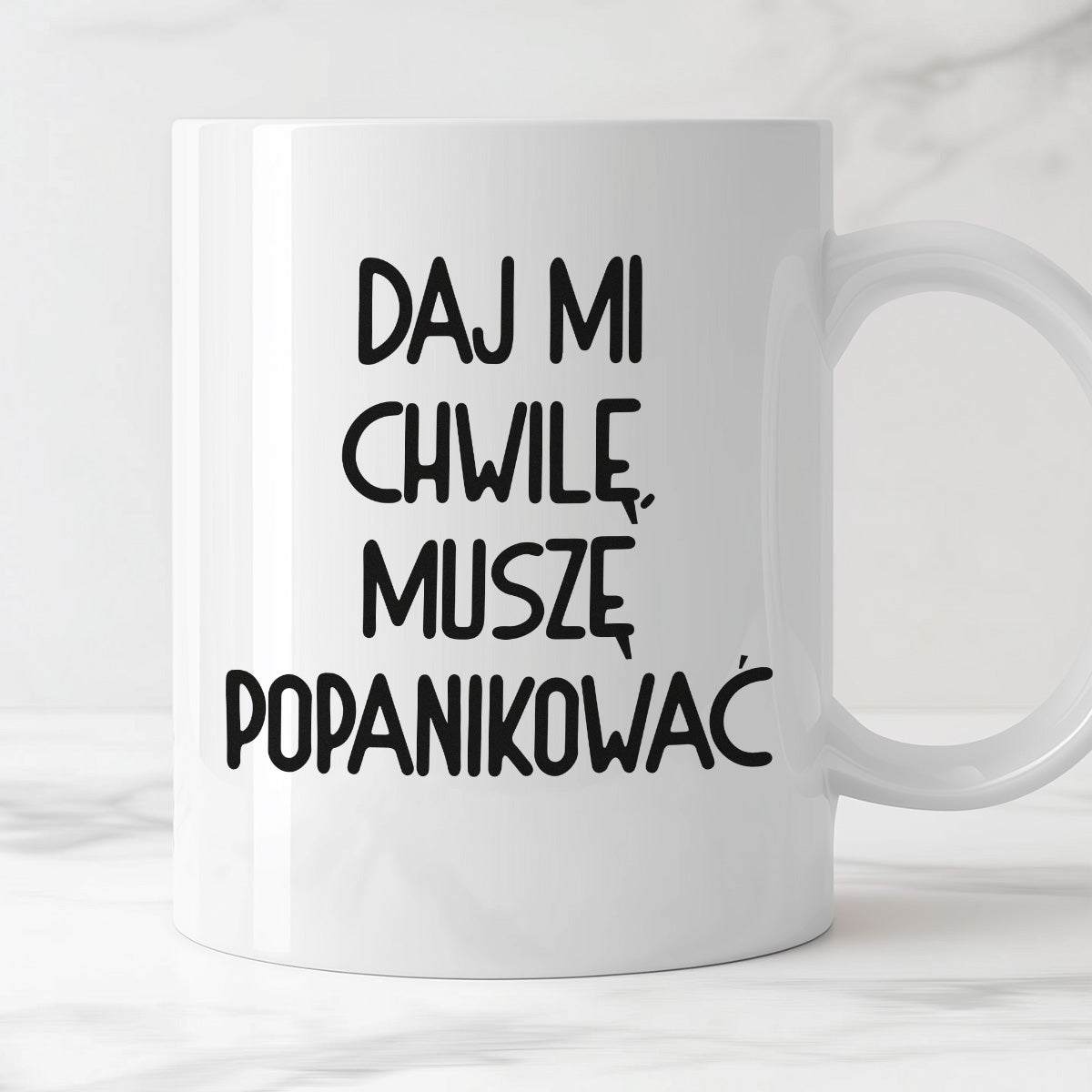 Kubek z nadrukiem "Daj mi chwilę, muszę popanikować"