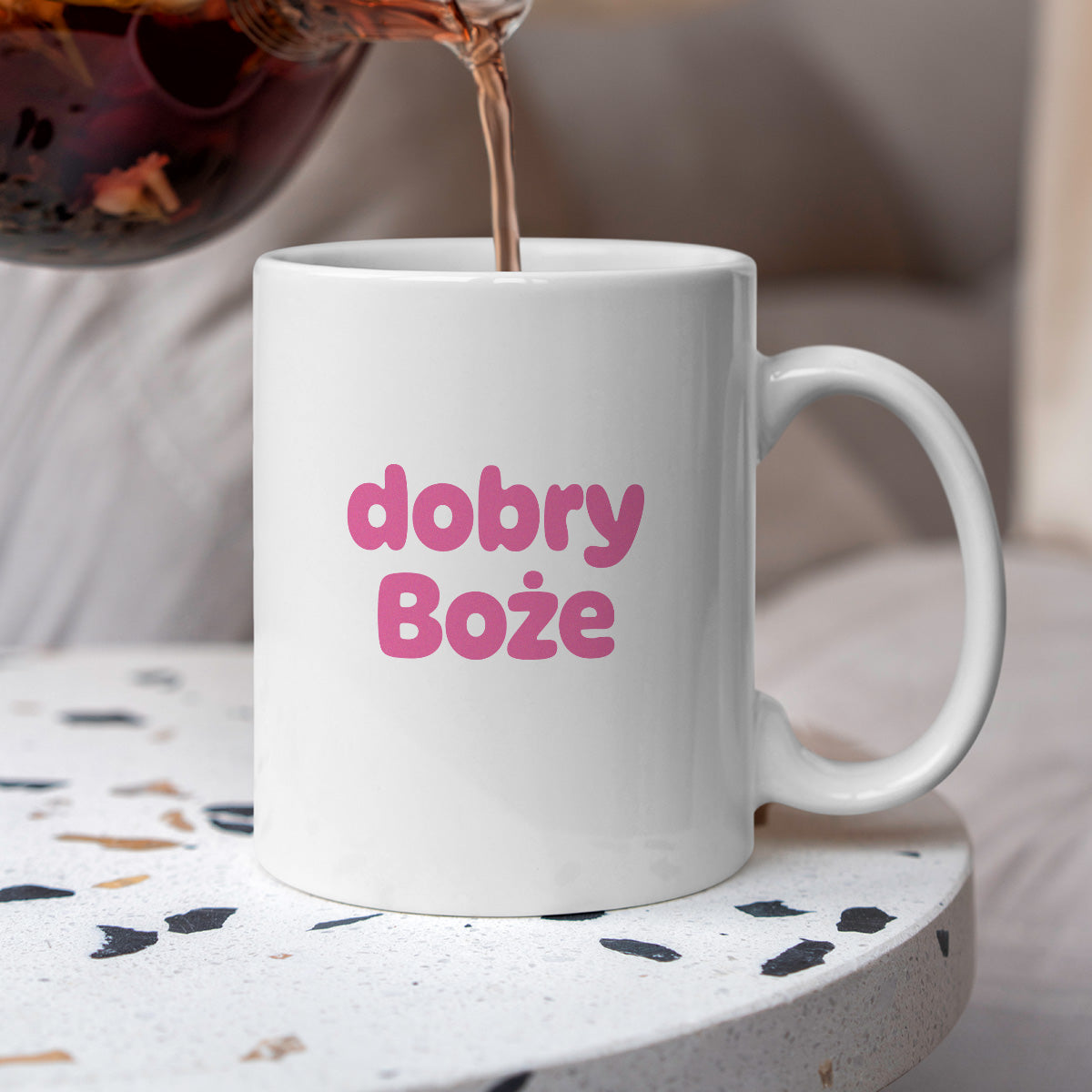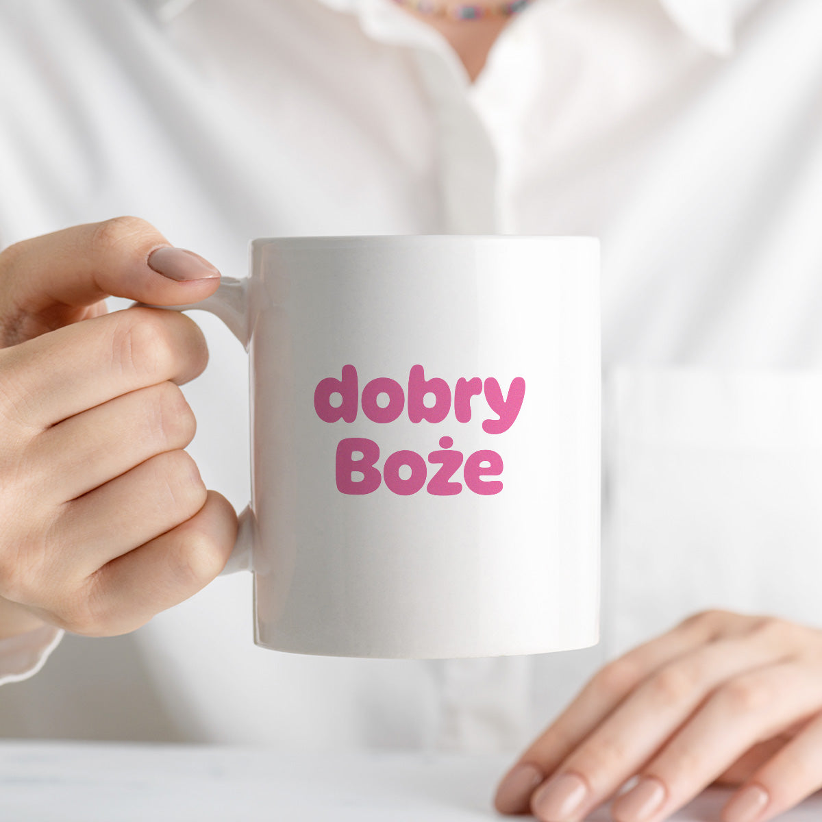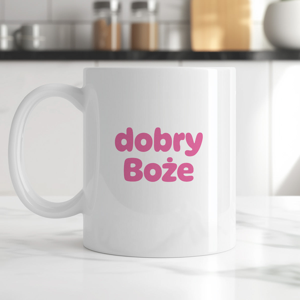Wyraz twarzy? Zrezygnowanie. Ton głosu? Lekko błagalny. Nastrój? Na granicy śmiechu i płaczu. "Dobry Boże" to kubek, który mówi wszystko – bez rozwodzenia się, bez dramatów. Po prostu… Dobry Boże i każdy wie, o co chodzi.