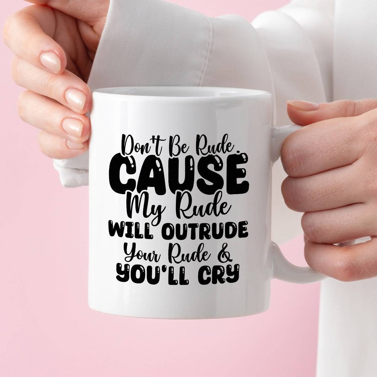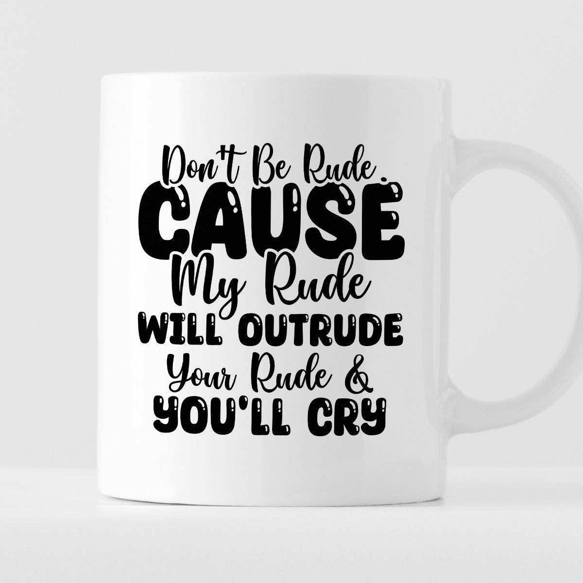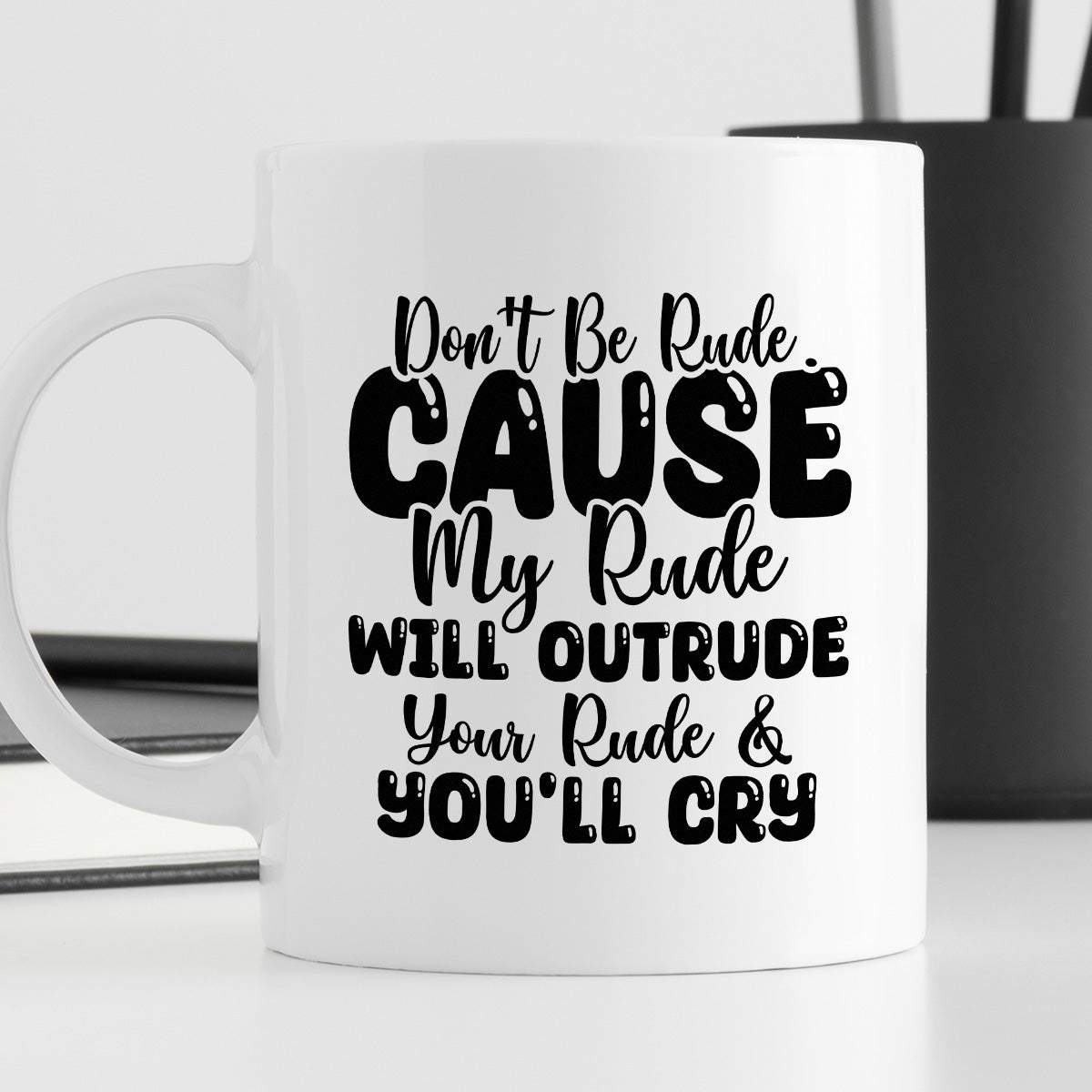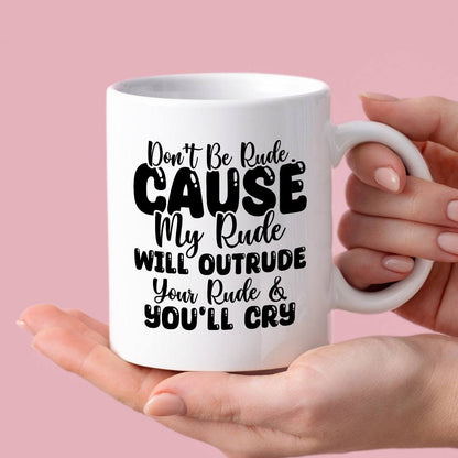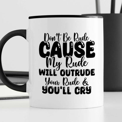 Kubek z nadrukiem "Don’t be rude cause my rude will outrun your rude & you’ll cry"