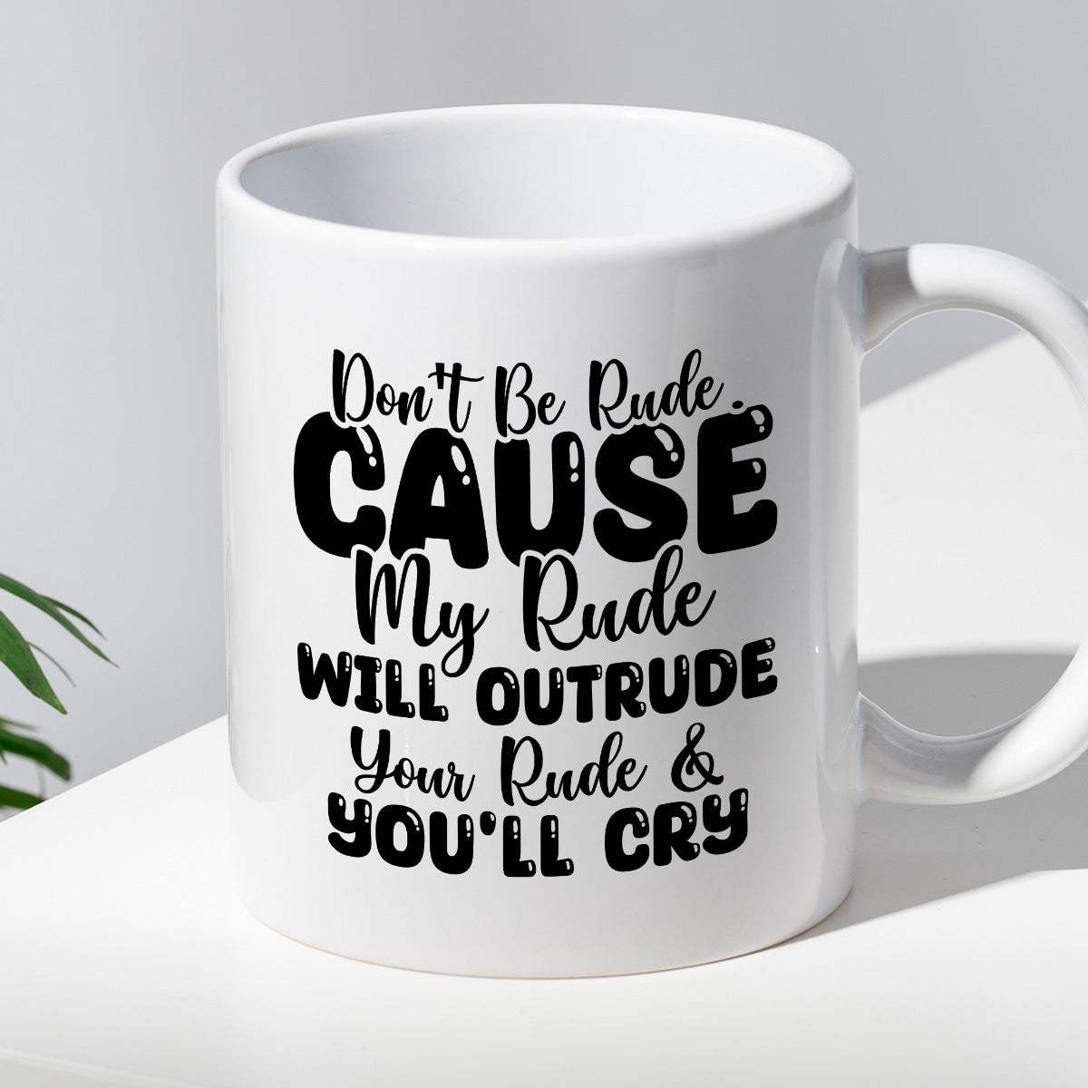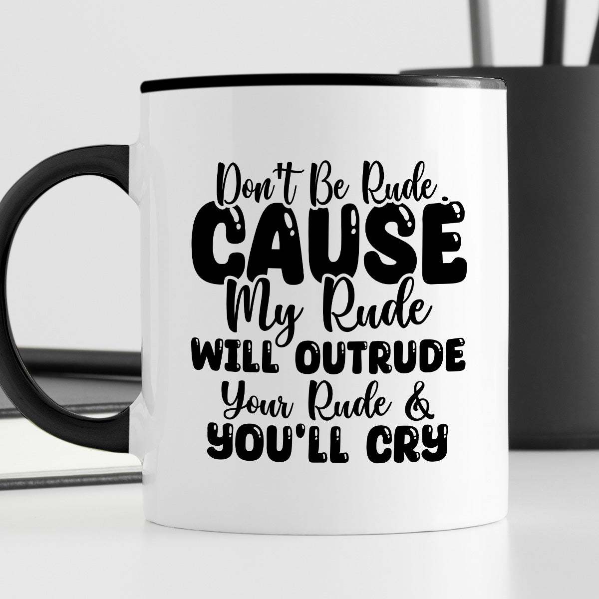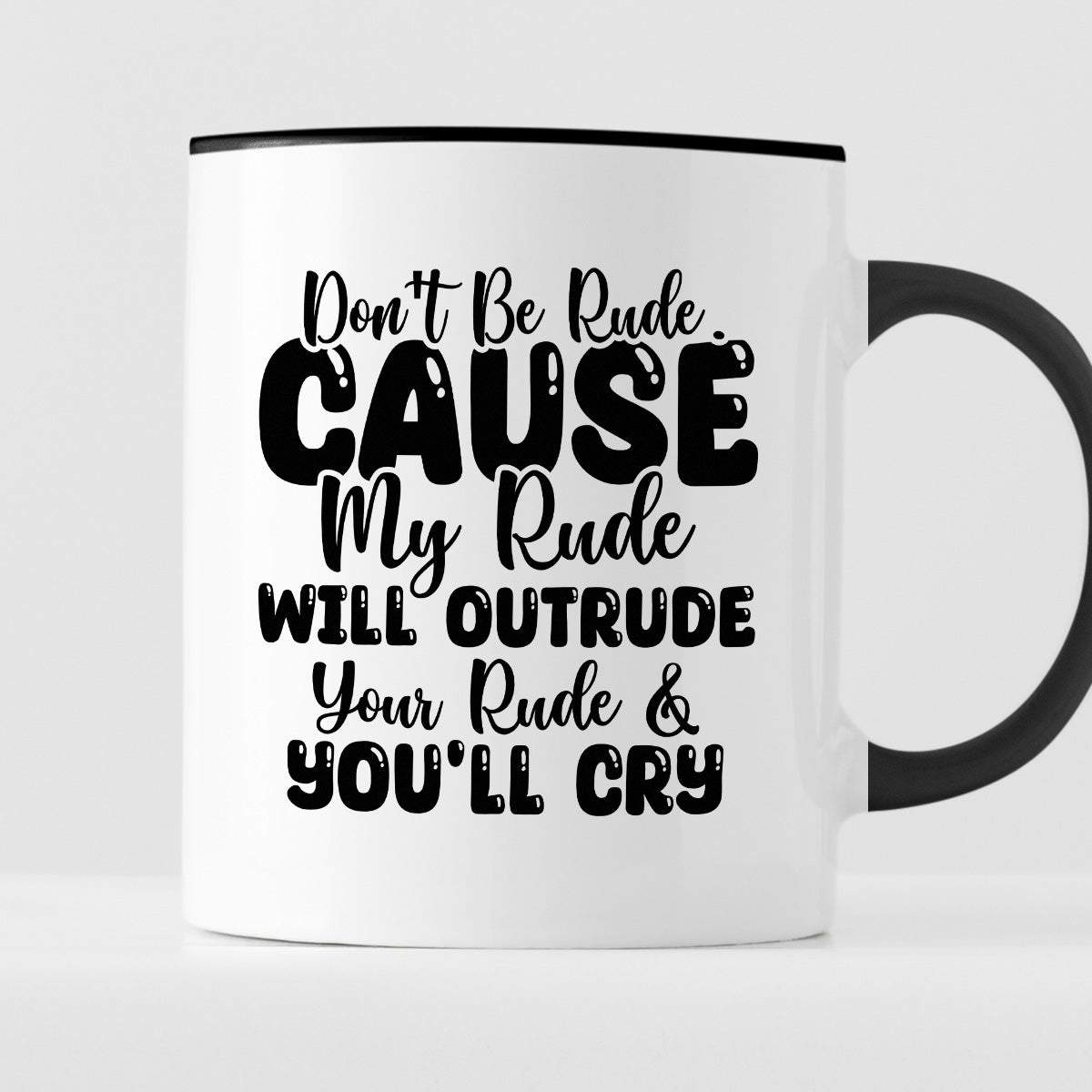 Kubek z nadrukiem "Don’t be rude cause my rude will outrun your rude & you’ll cry"