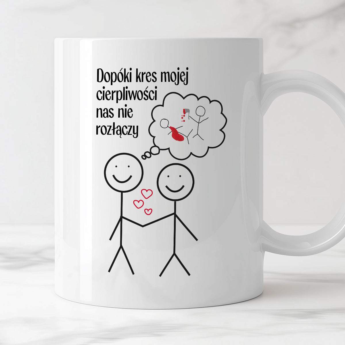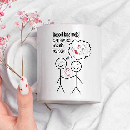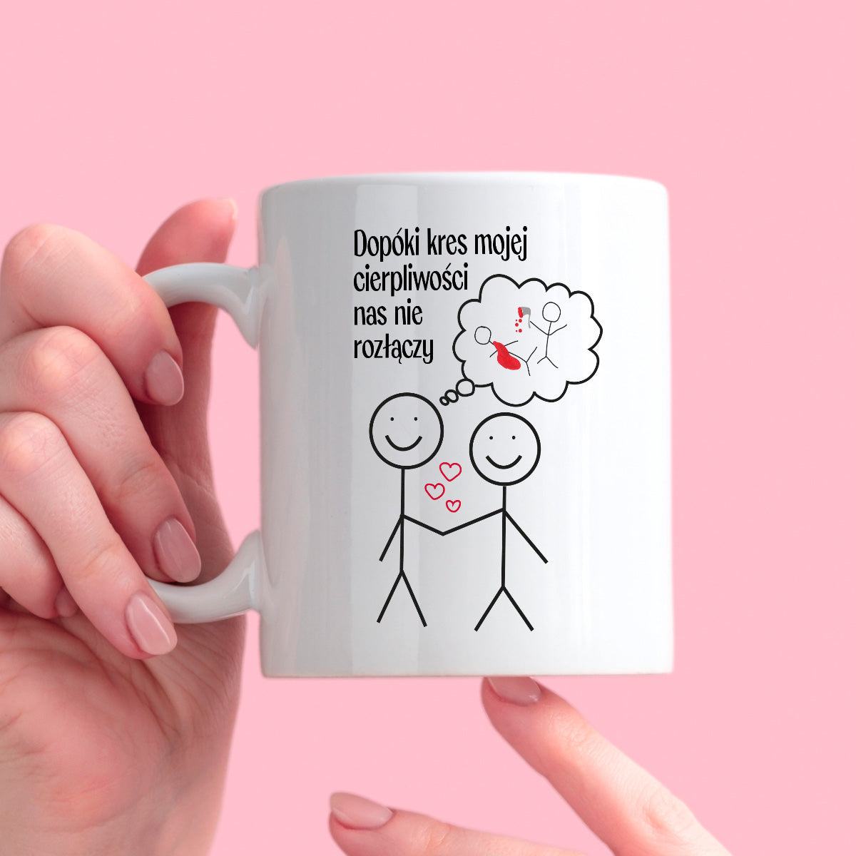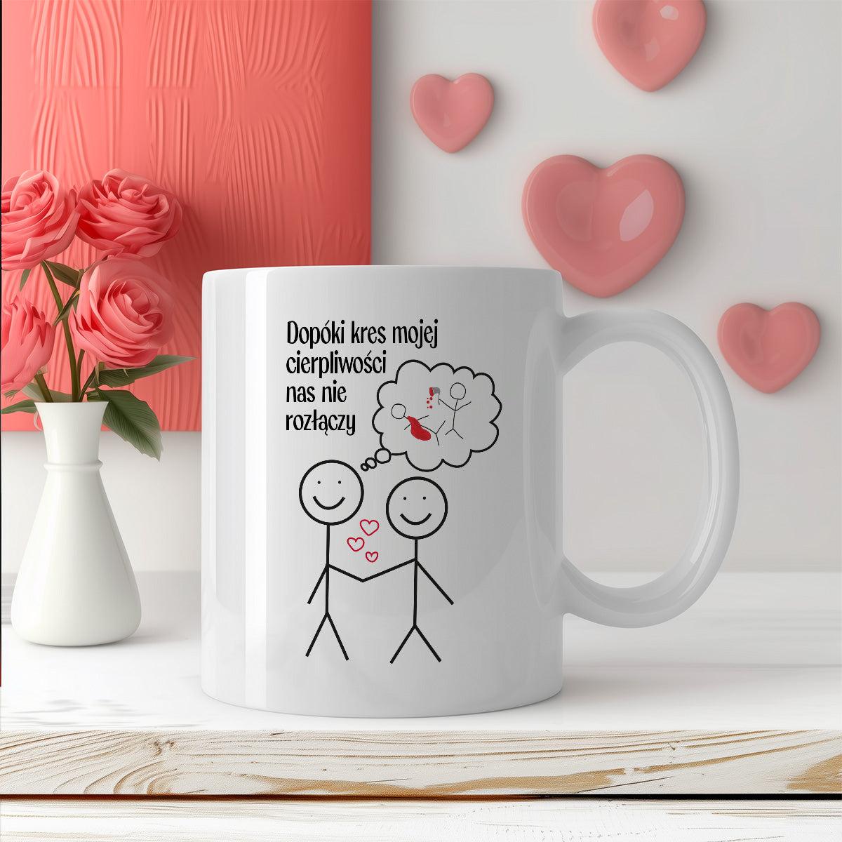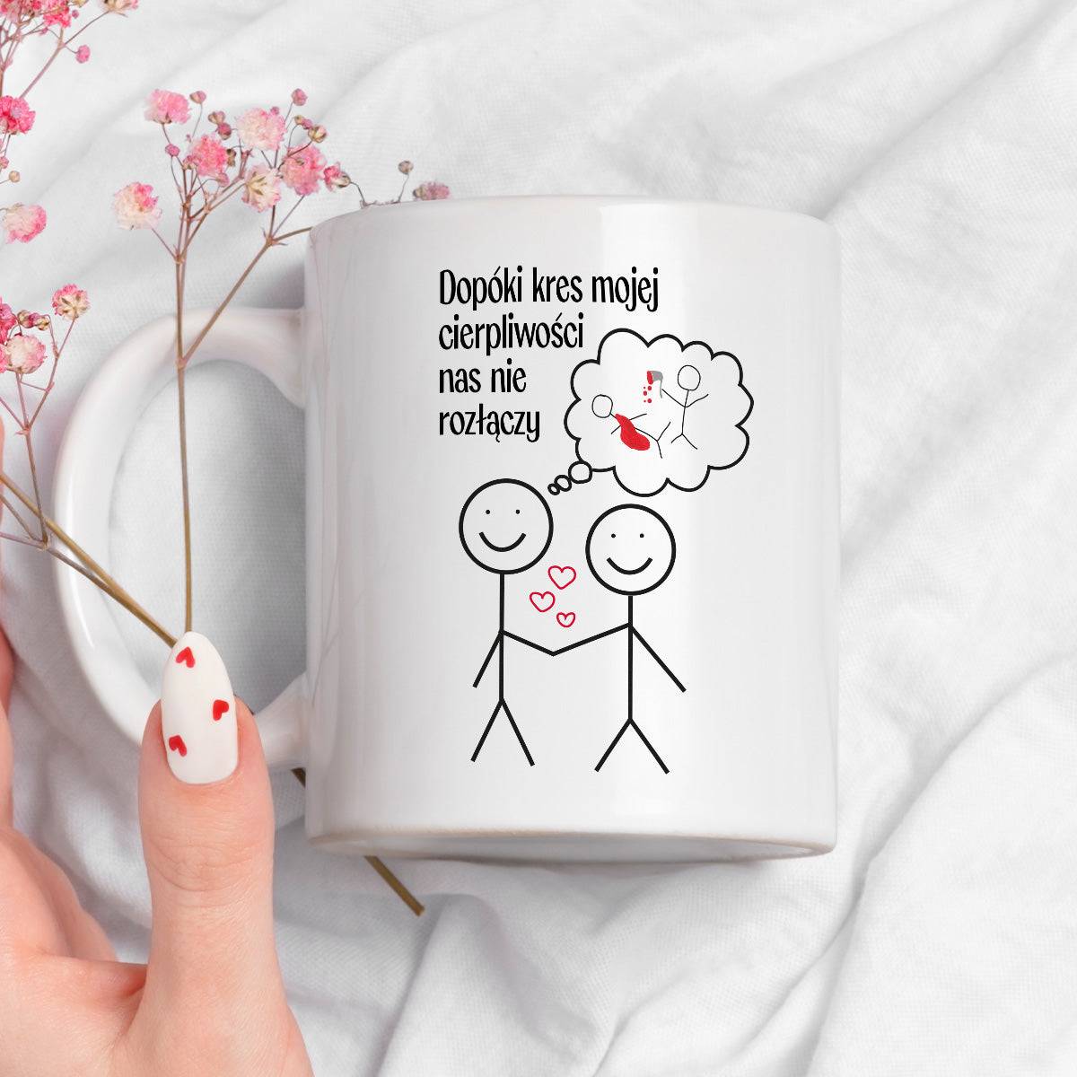 Kubek z nadrukiem "Dopóki kres mojej cierpliwości nas nie rozłączy" - WALENTYNKI