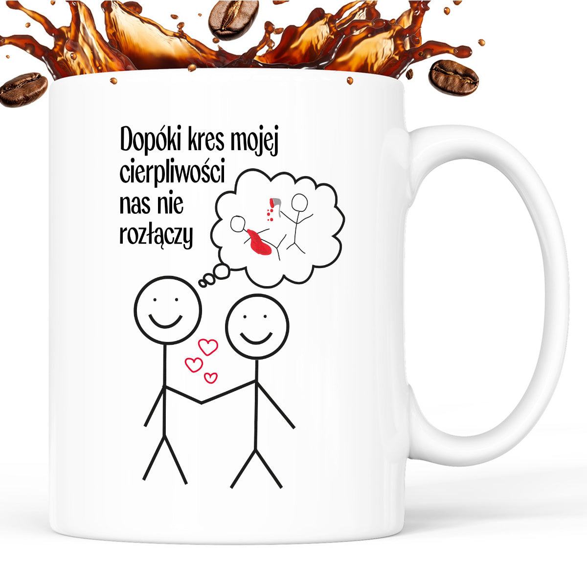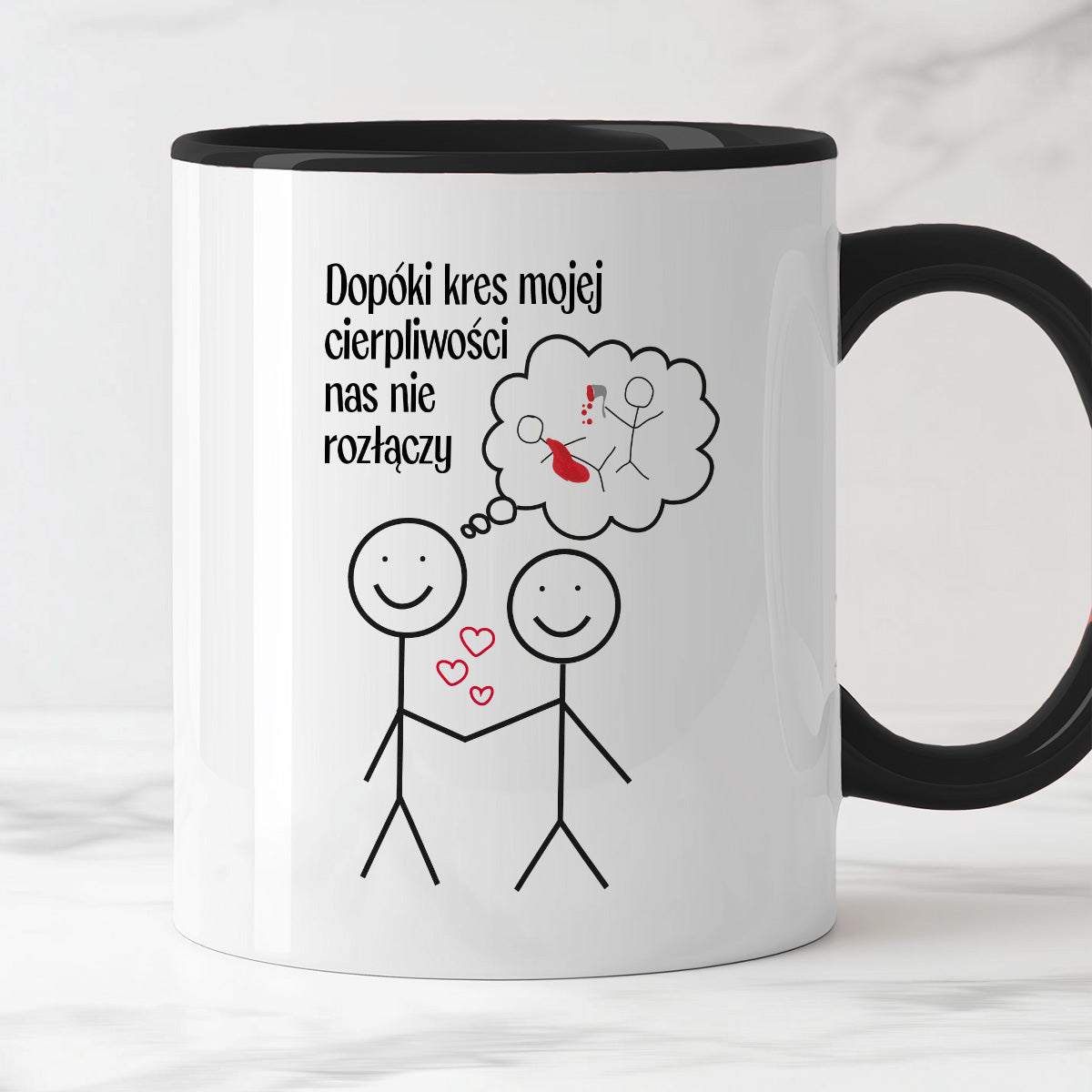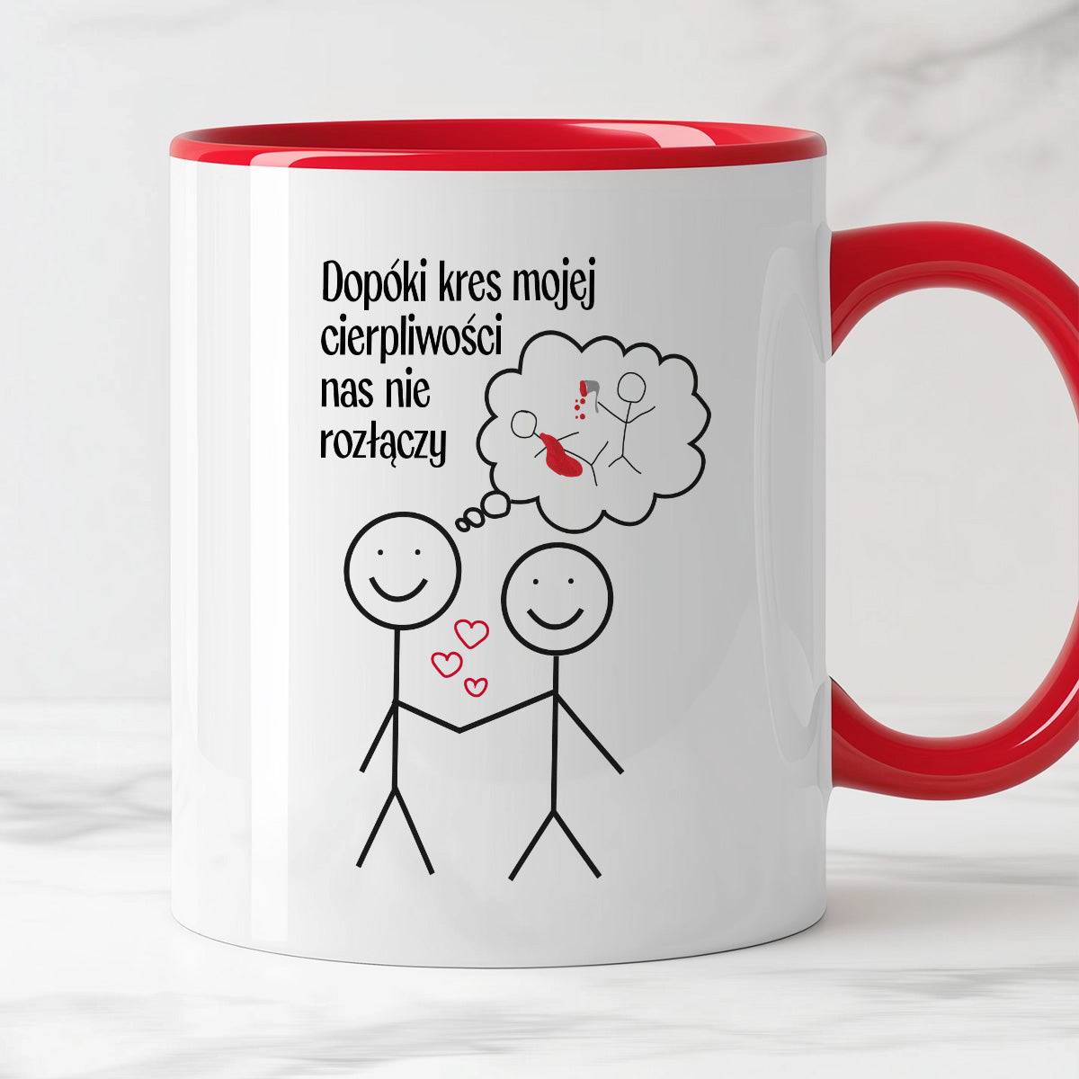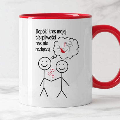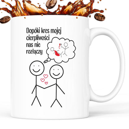 Kubek z nadrukiem "Dopóki kres mojej cierpliwości nas nie rozłączy" - WALENTYNKI