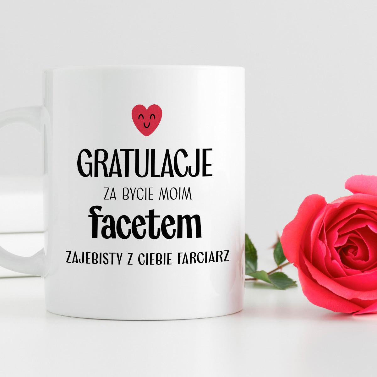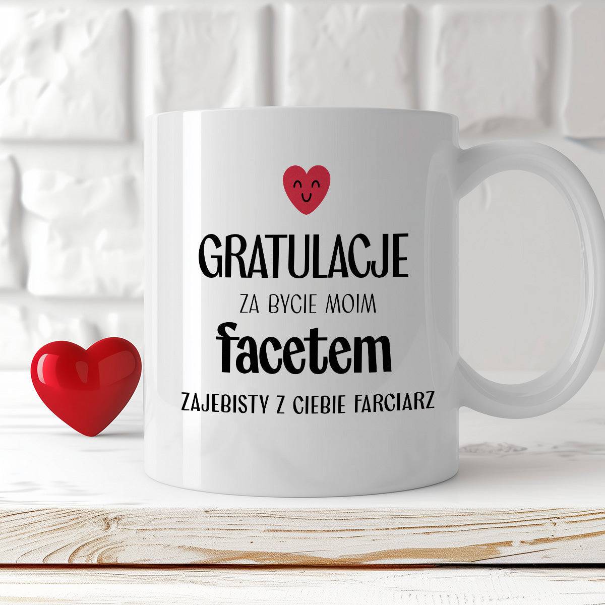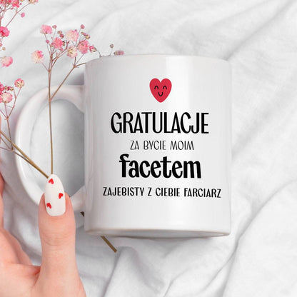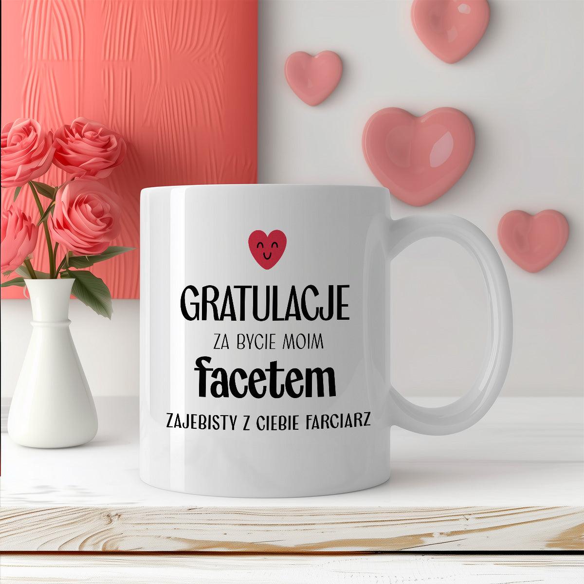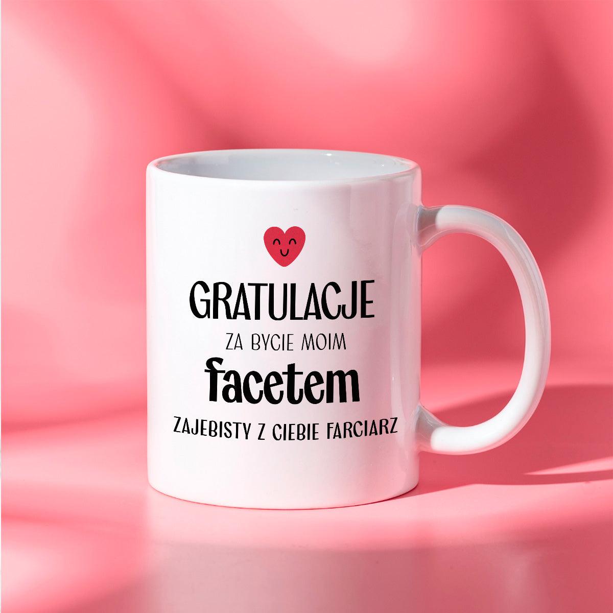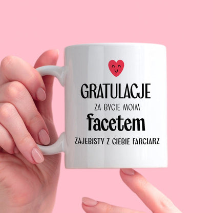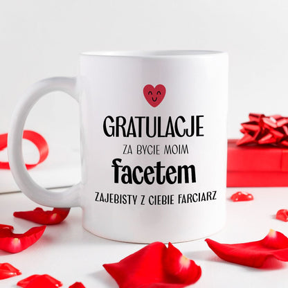 Kubek z nadrukiem "Gratulacje za bycie moim facetem - zajebisty z Ciebie farciarz" - WALENTYNKI - FB
