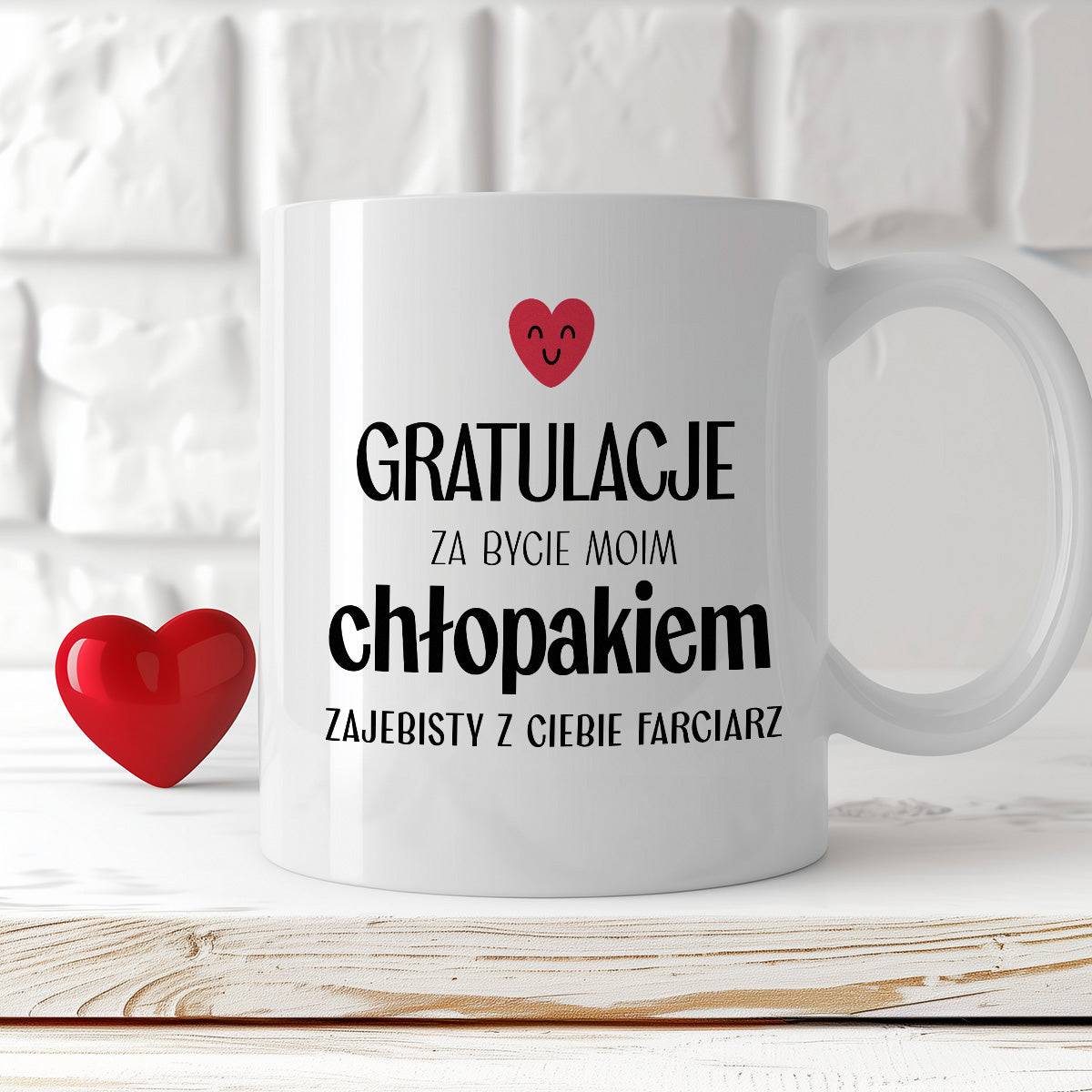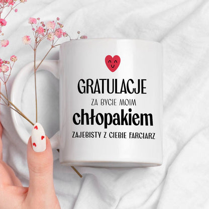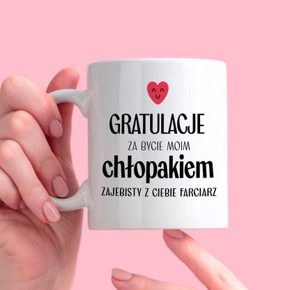 Kubek z nadrukiem "Gratulacje za bycie moim chłopakiem - zajebisty z Ciebie farciarz" - WALENTYNKI - FB