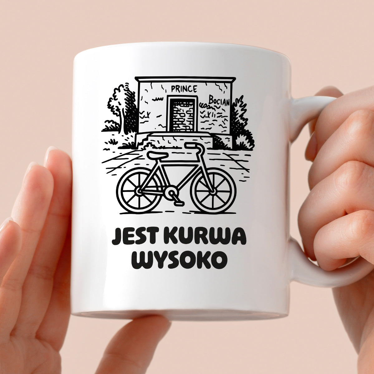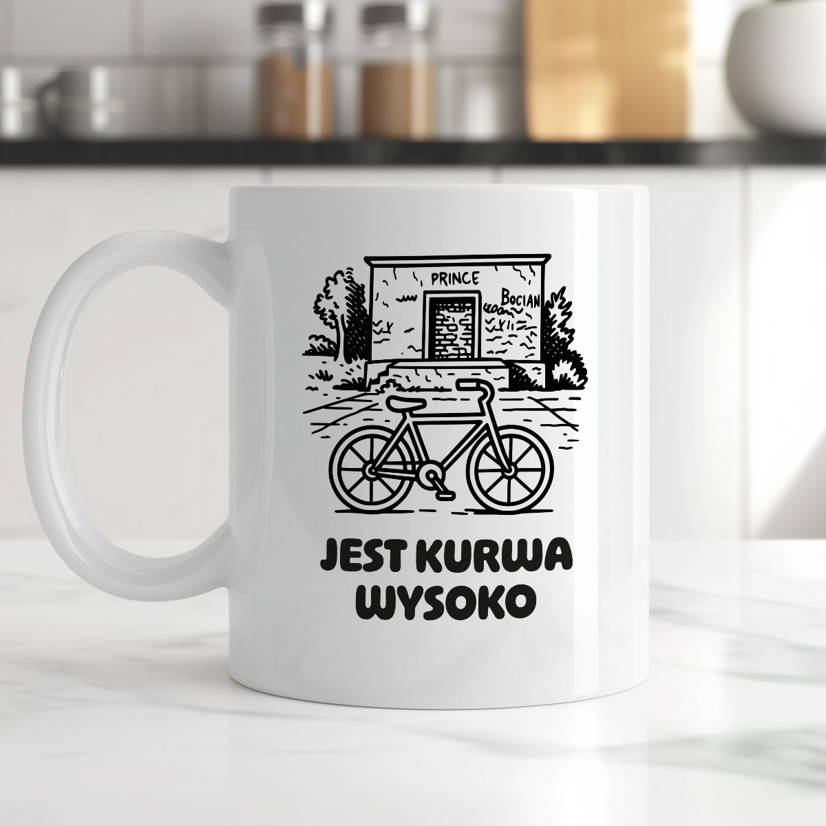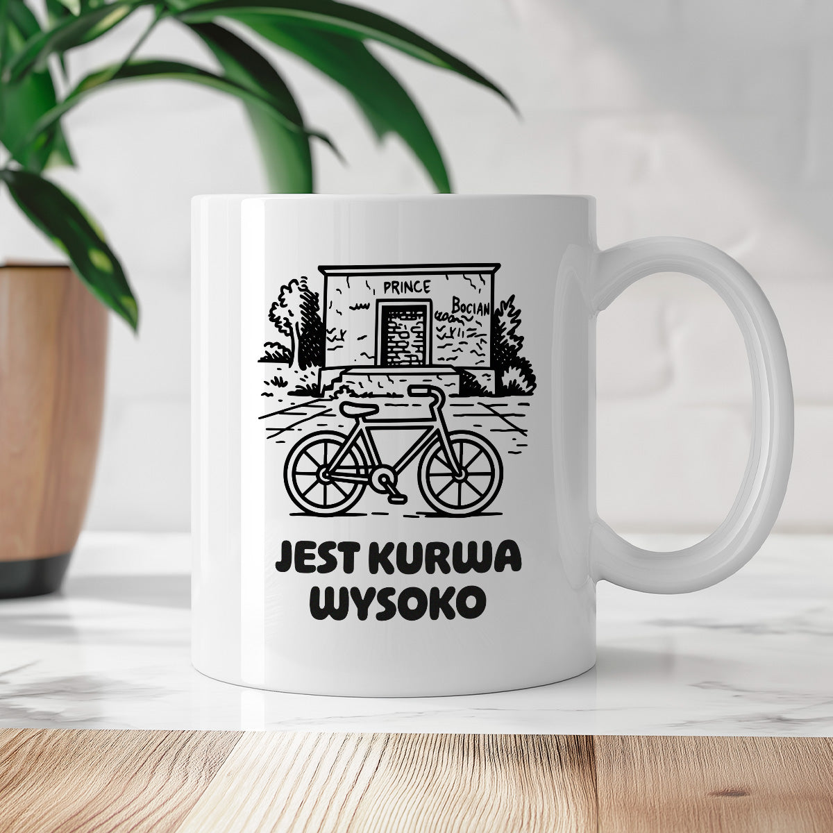 Kubek "Jest kurwa wysoko" z serii HITY POLSKIEGO INTERNETU to propozycja dla prawdziwych fanów memów i klasyków polskiego absurdu. Idealny na prezent dla znajomego z poczuciem humoru albo dla siebie — żeby każdy łyk kawy przypominał Ci o złotych czasach internetu.