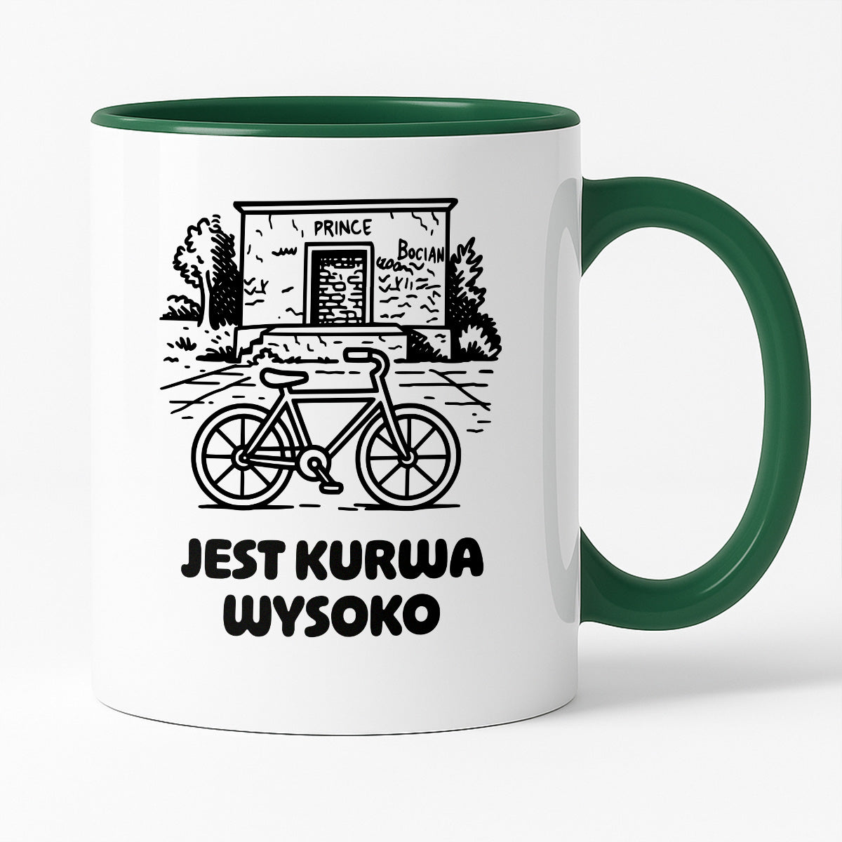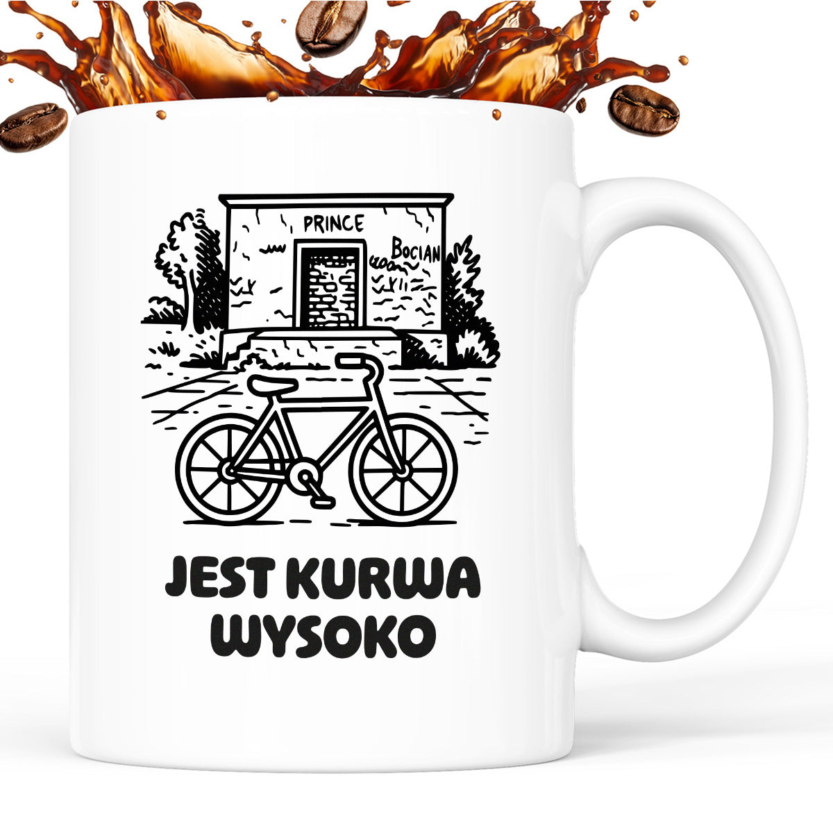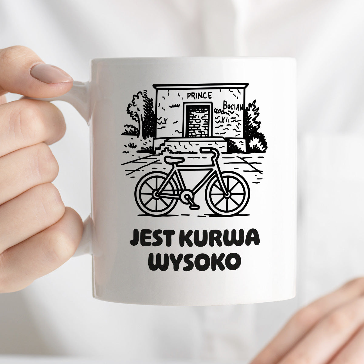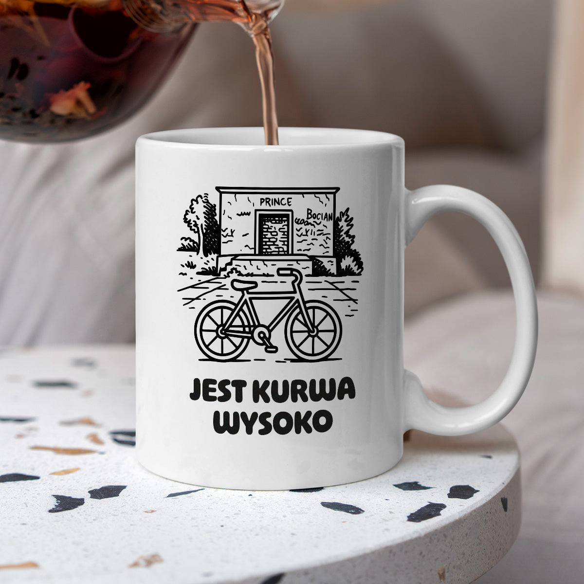 Kubek "Jest kurwa wysoko" z serii HITY POLSKIEGO INTERNETU to propozycja dla prawdziwych fanów memów i klasyków polskiego absurdu. Idealny na prezent dla znajomego z poczuciem humoru albo dla siebie — żeby każdy łyk kawy przypominał Ci o złotych czasach internetu.