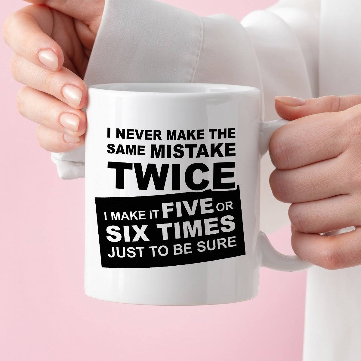 Kubek z nadrukiem "I never make the same mistake twice - I make it five or six times just to be sure"