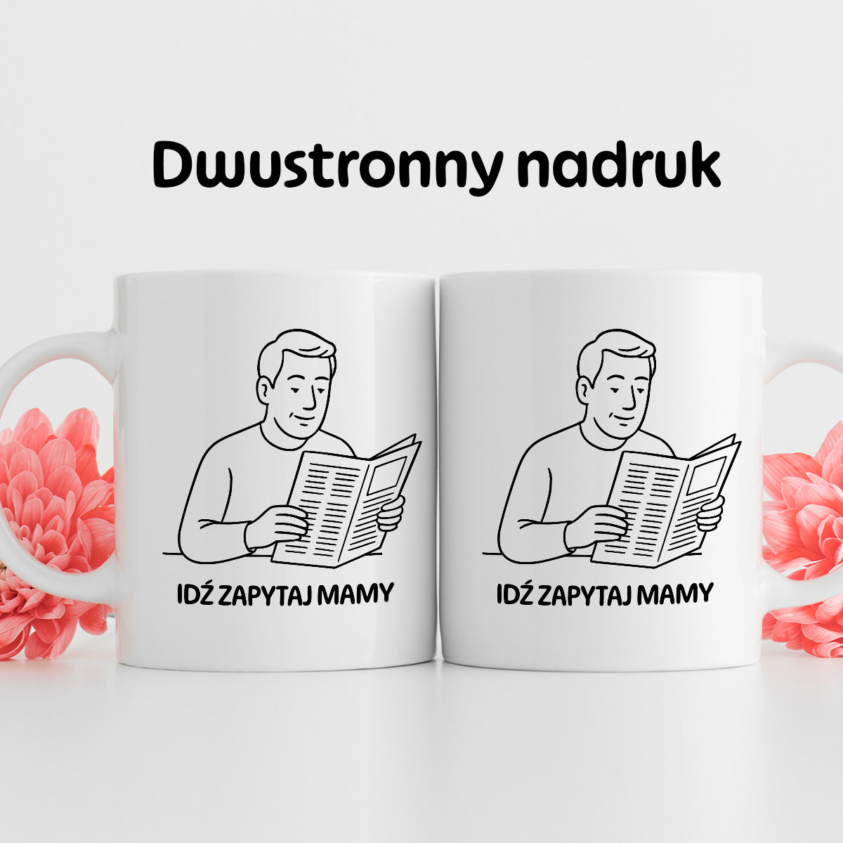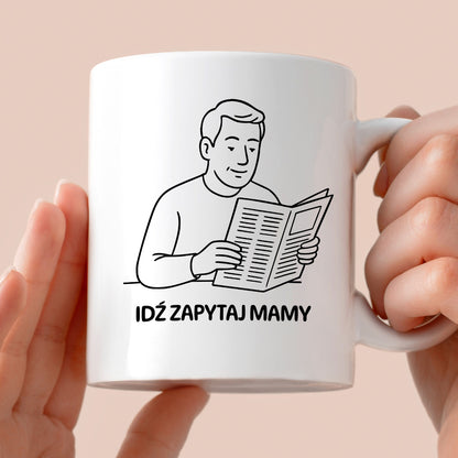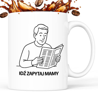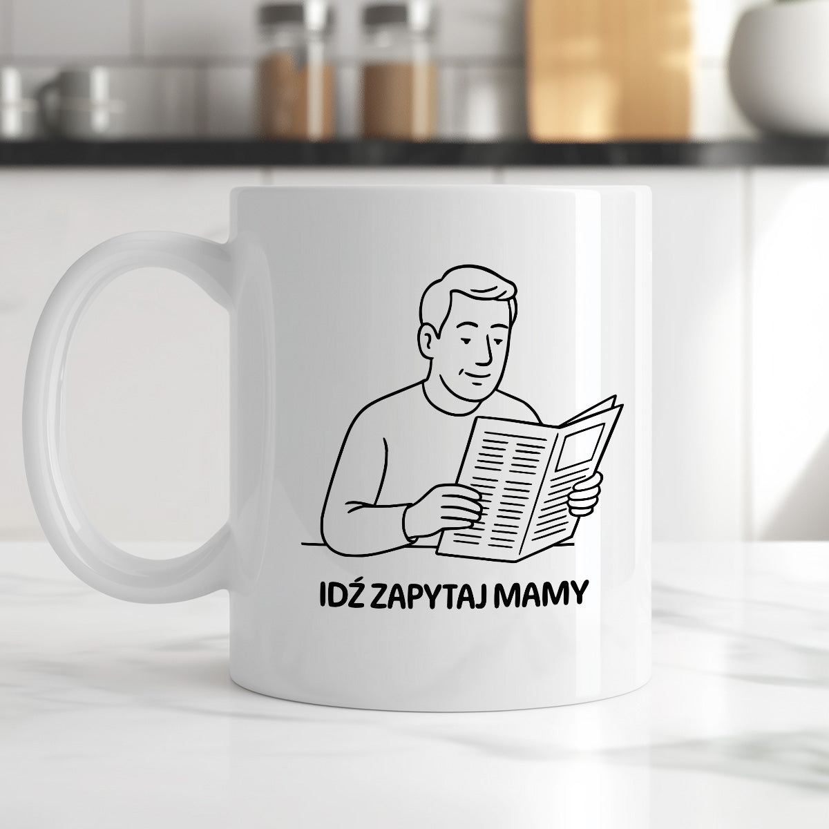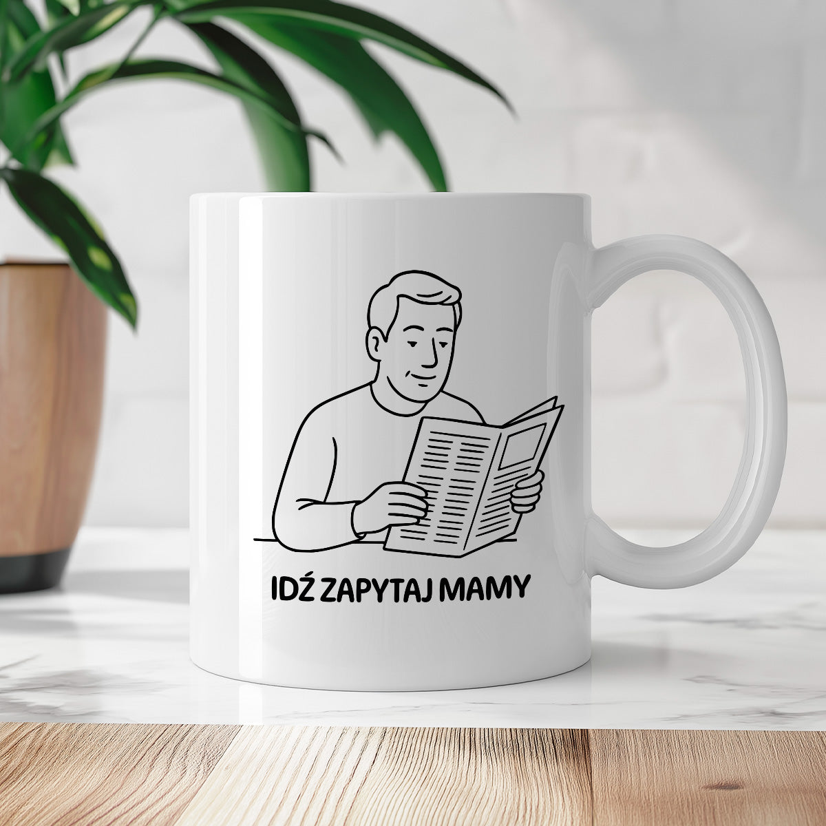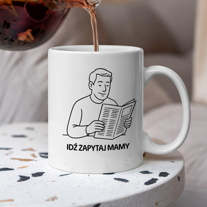 Kubek z nadrukiem "Idź zapytaj mamy" – prezent na Dzień Taty z przymrużeniem oka