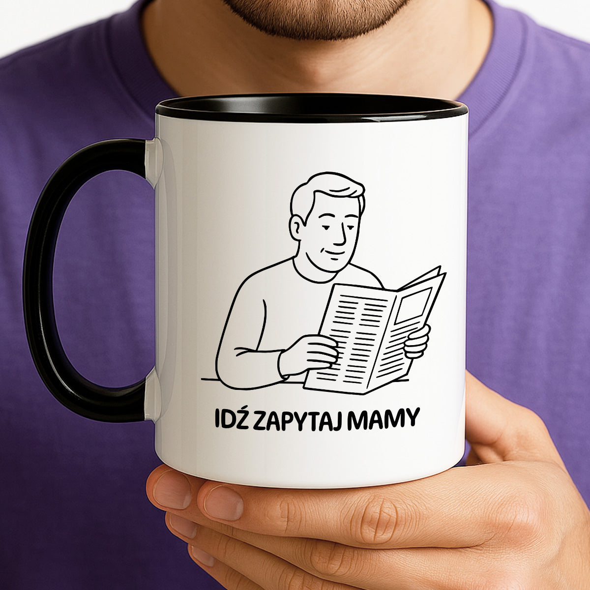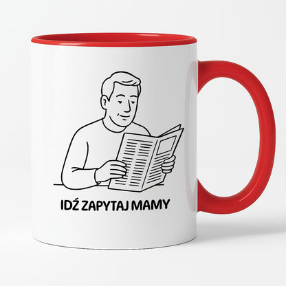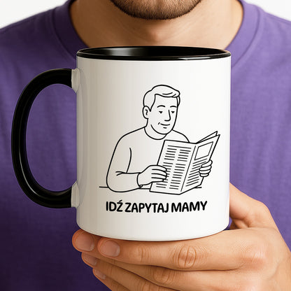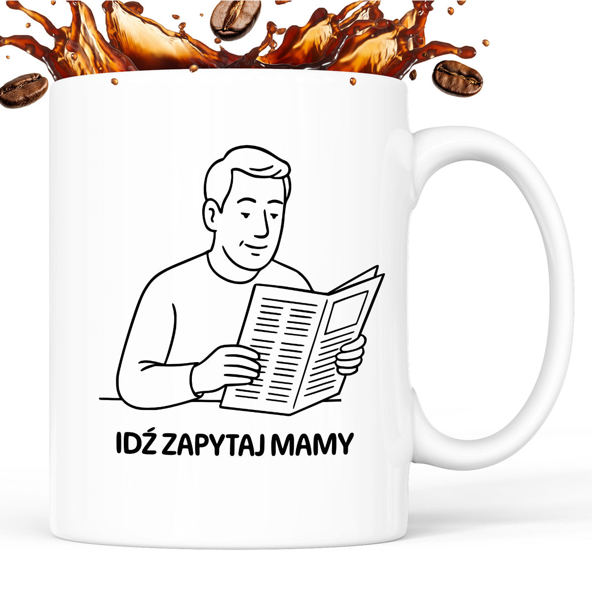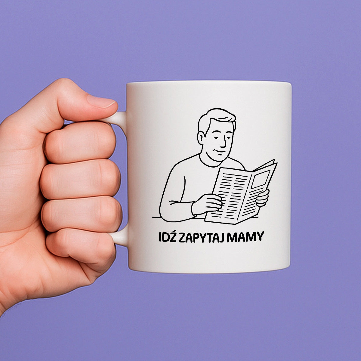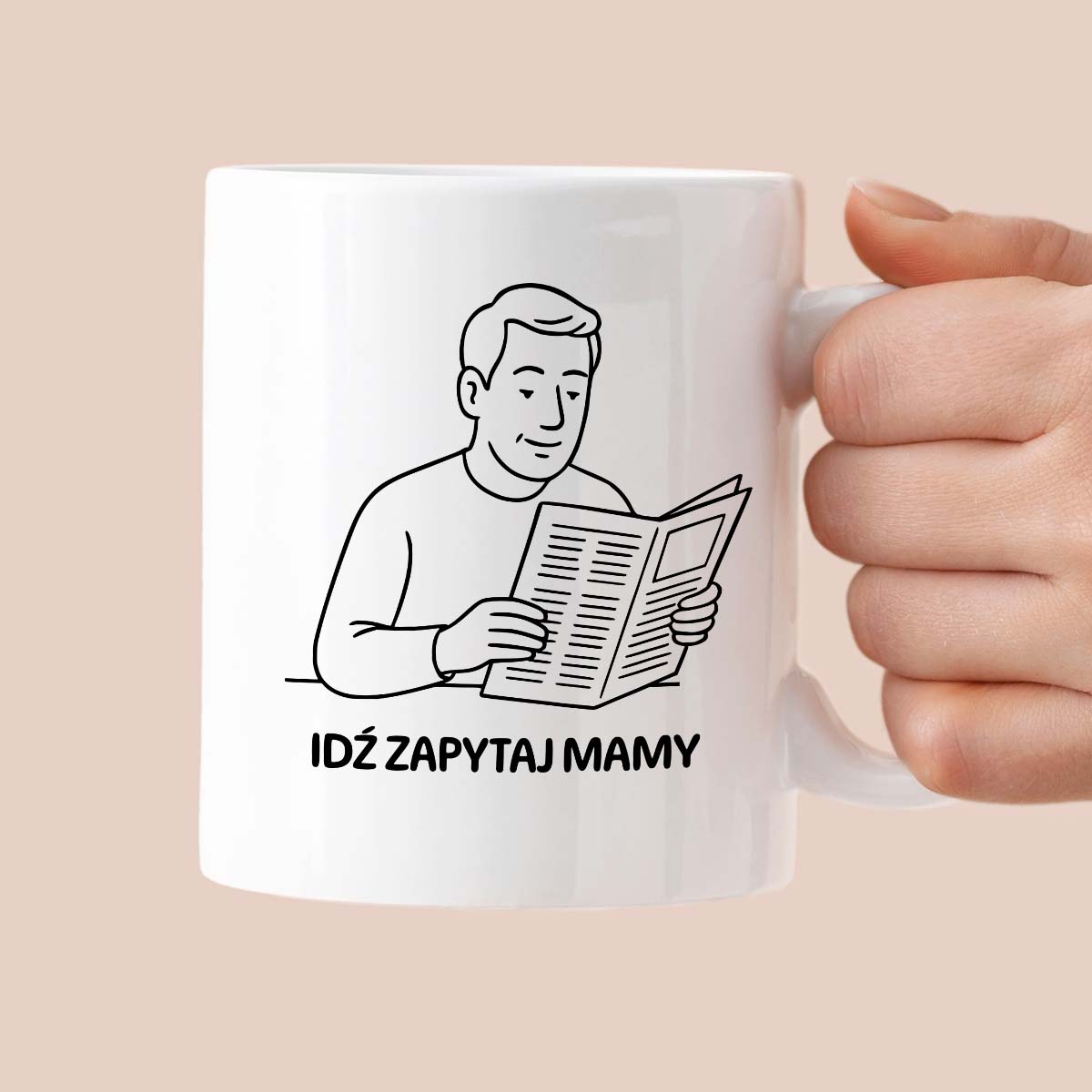 Kubek z nadrukiem "Idź zapytaj mamy" – prezent na Dzień Taty z przymrużeniem oka