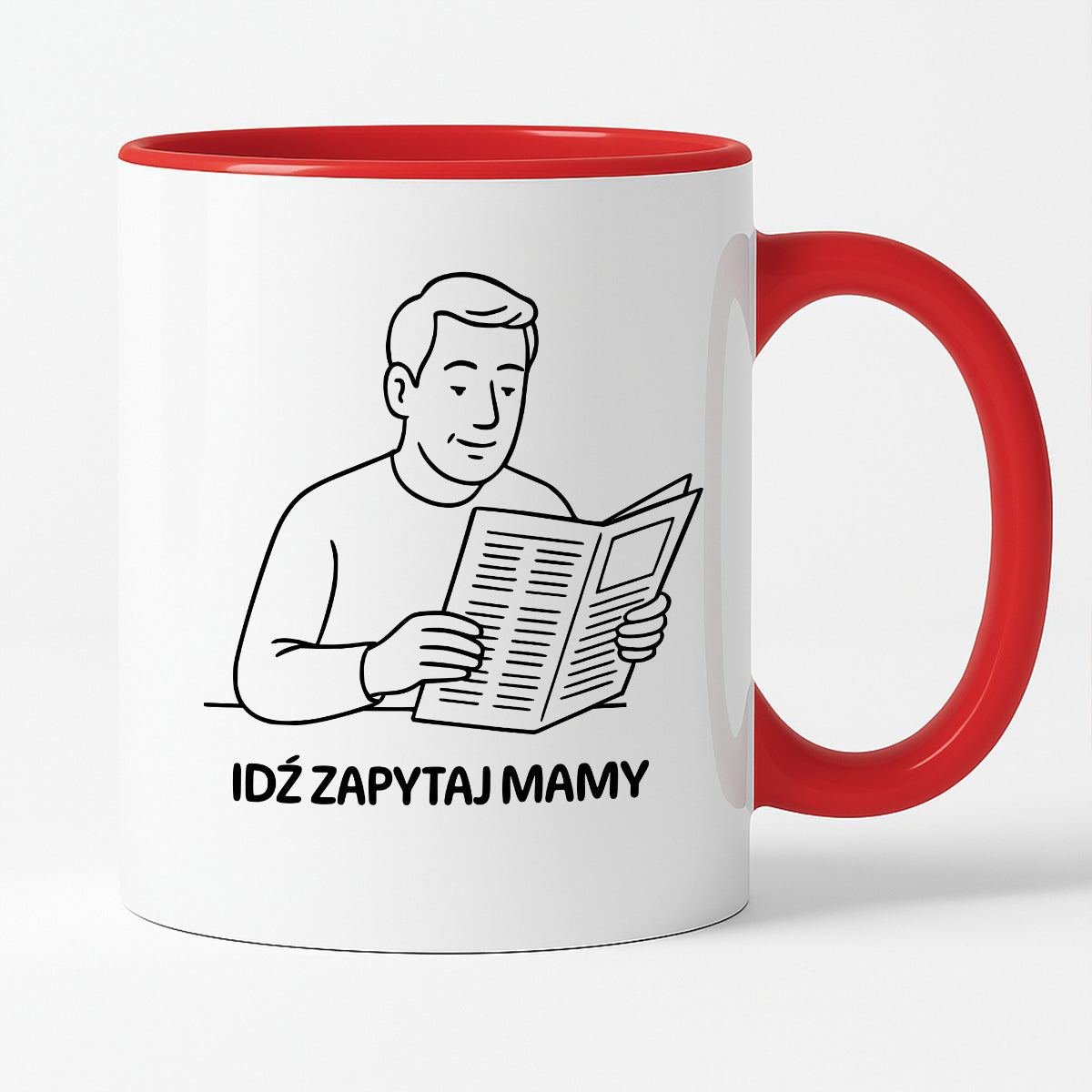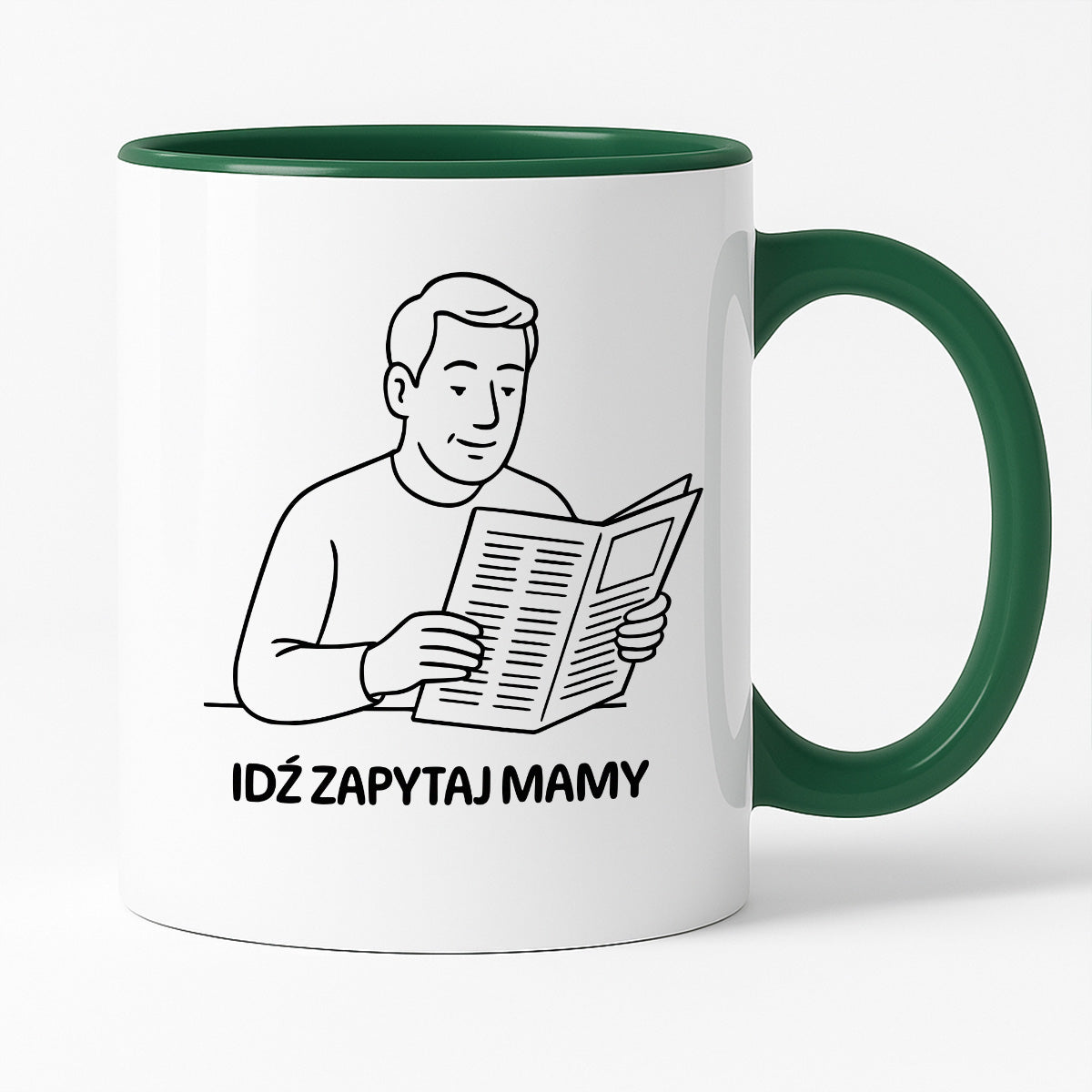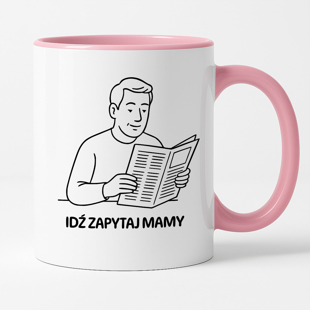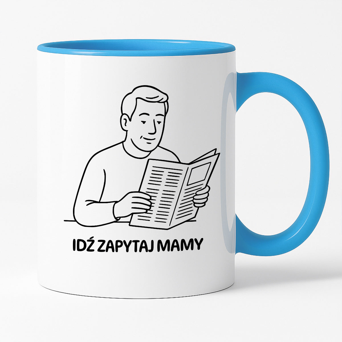 Kubek z nadrukiem "Idź zapytaj mamy" – prezent na Dzień Taty z przymrużeniem oka