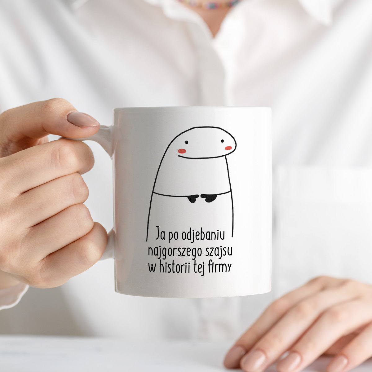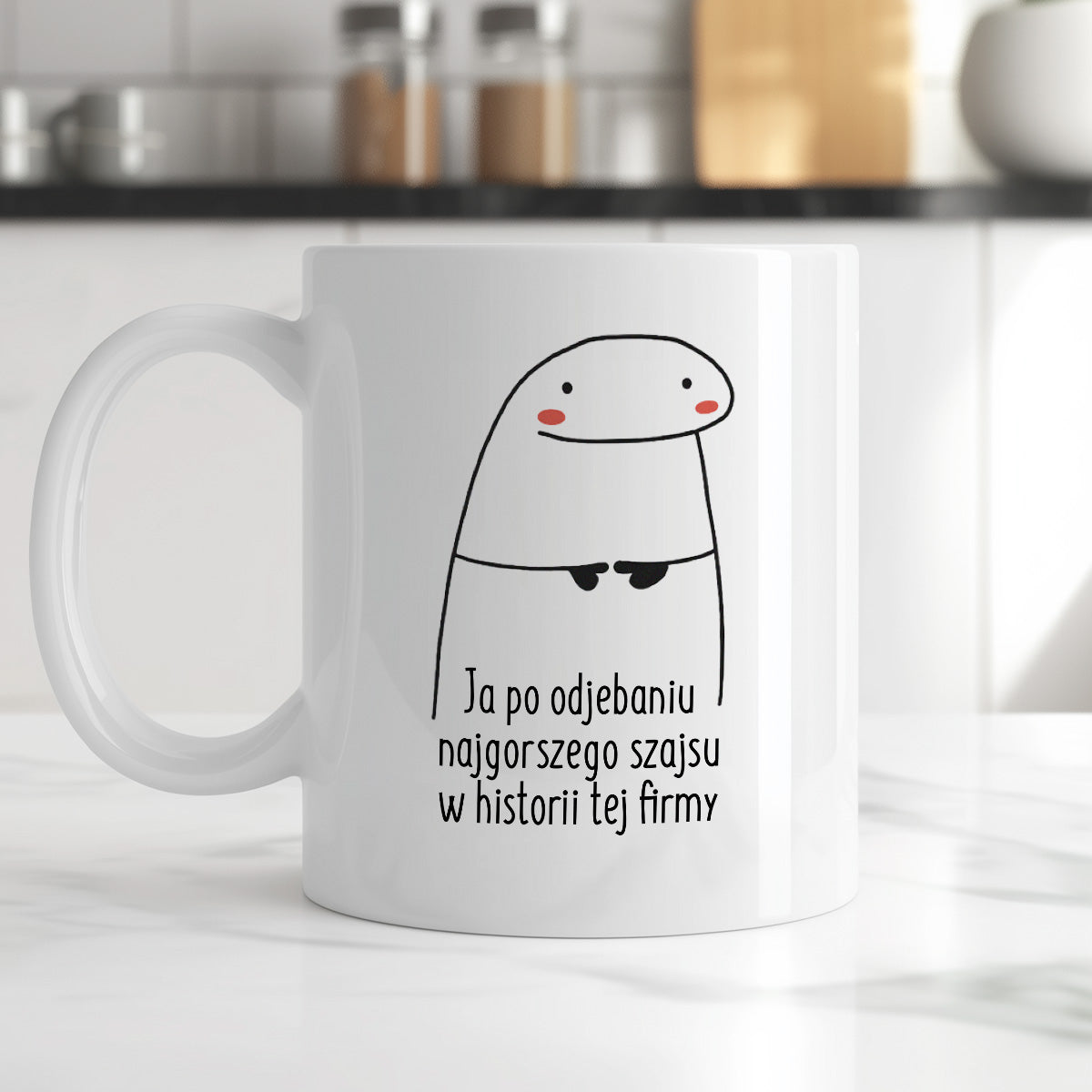 Kubek z nadrukiem "Ja po odjebaniu najgorszego szajsu w historii tej firmy"