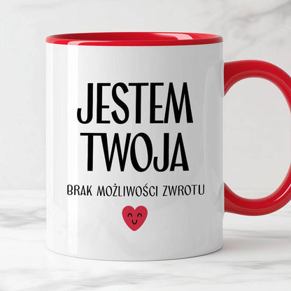 Kubek z nadrukiem "Jestem Twoja - brak możliwości zwrotu" - WALENTYNKI