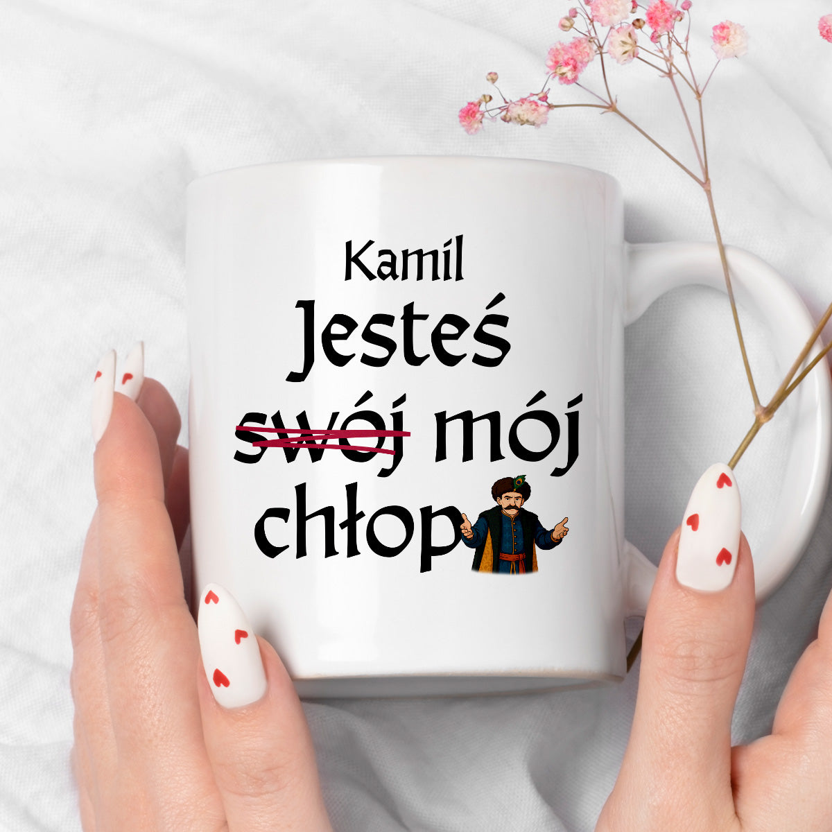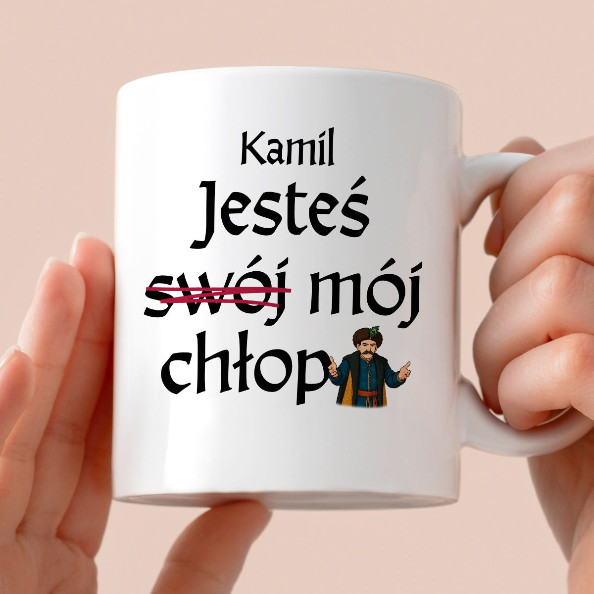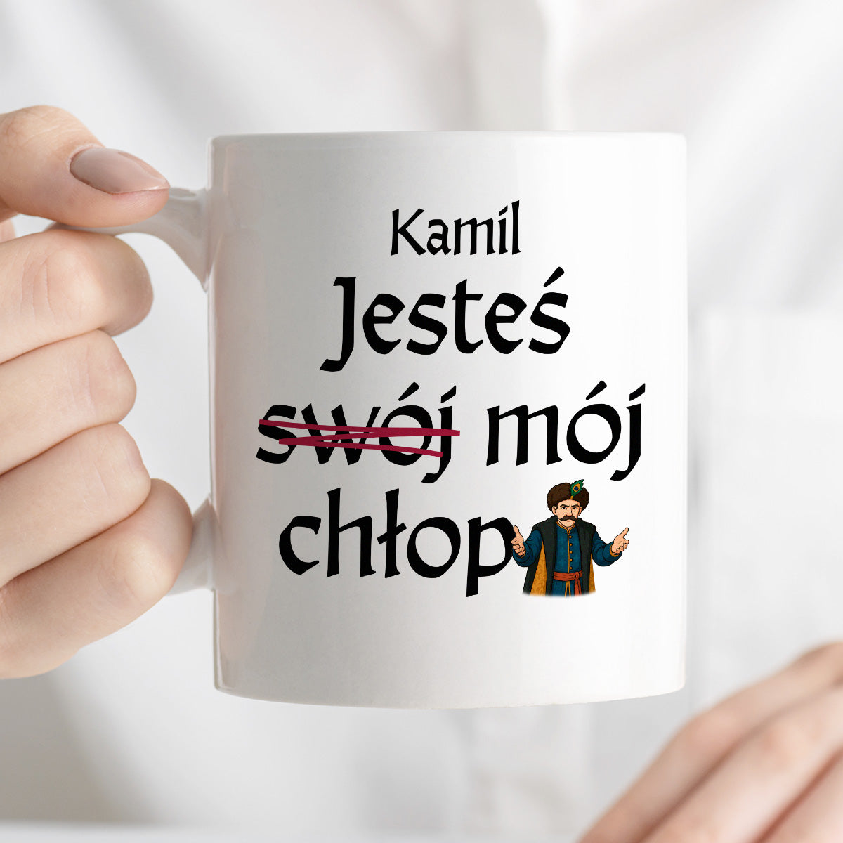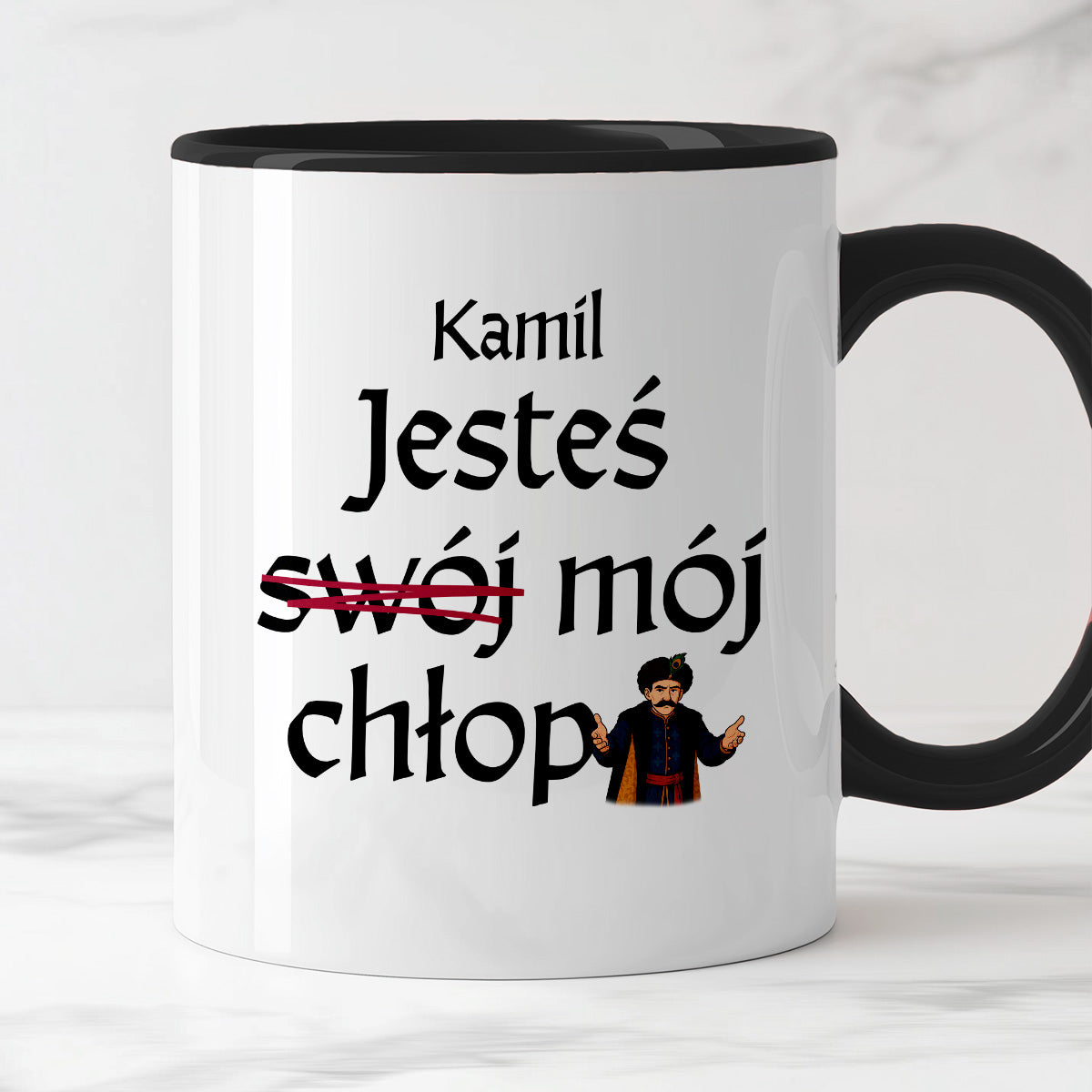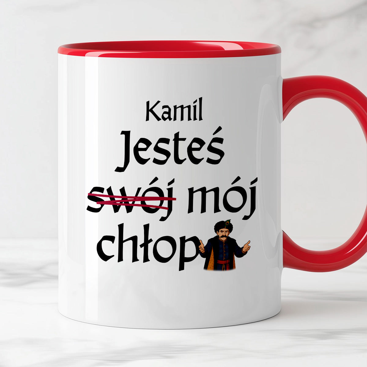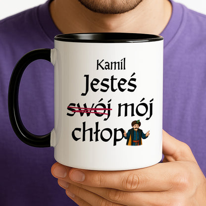 Kubek z nadrukiem "Jesteś (swój) mój chłop SPERSONALIZOWANY" 330 ml