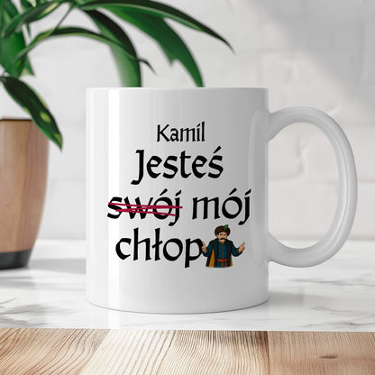 Kubek z nadrukiem "Jesteś (swój) mój chłop" SPERSONALIZOWANY v2