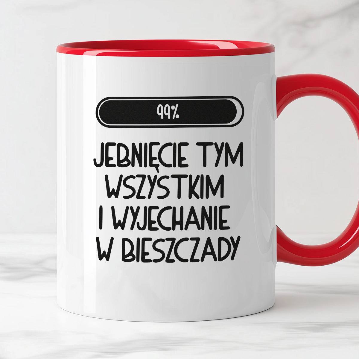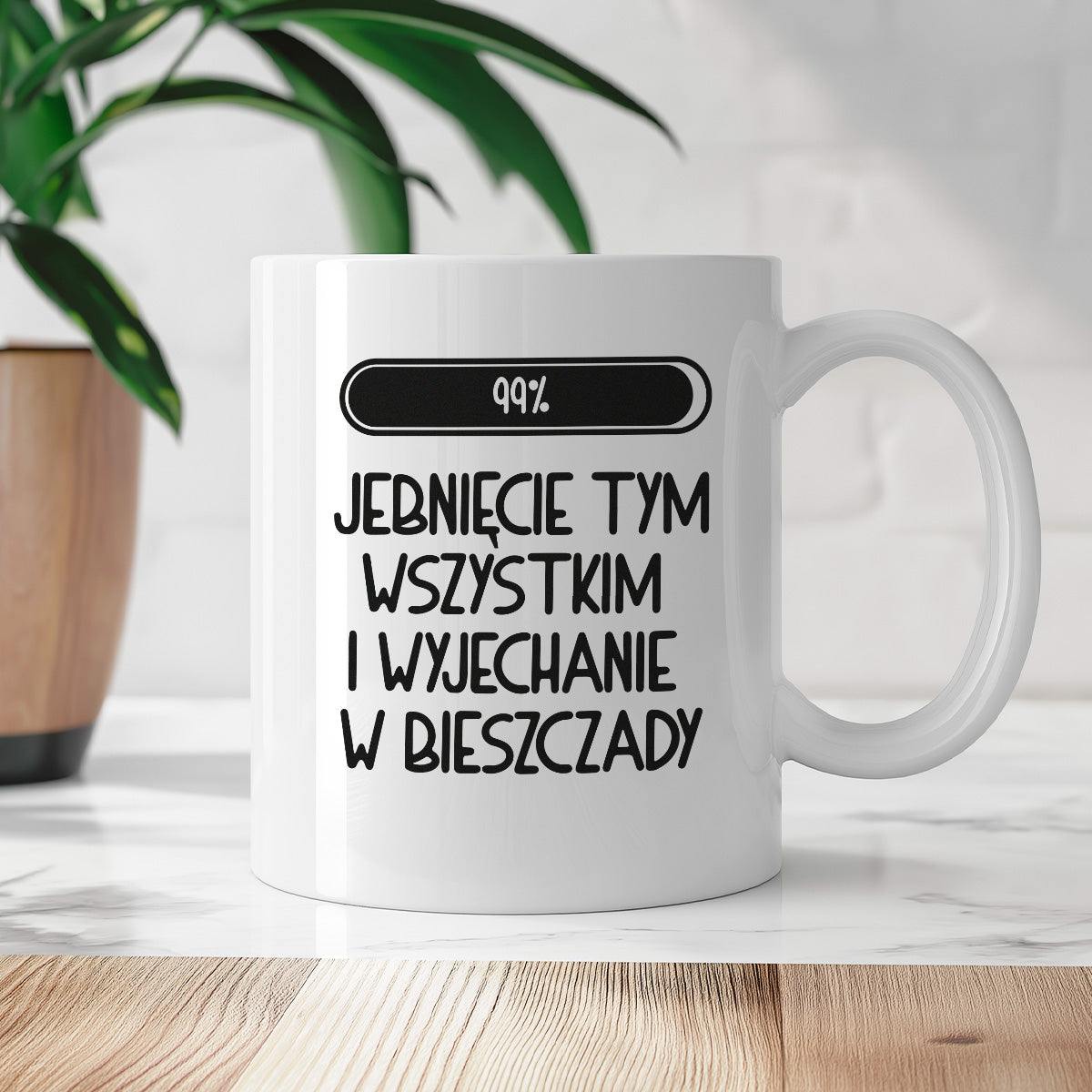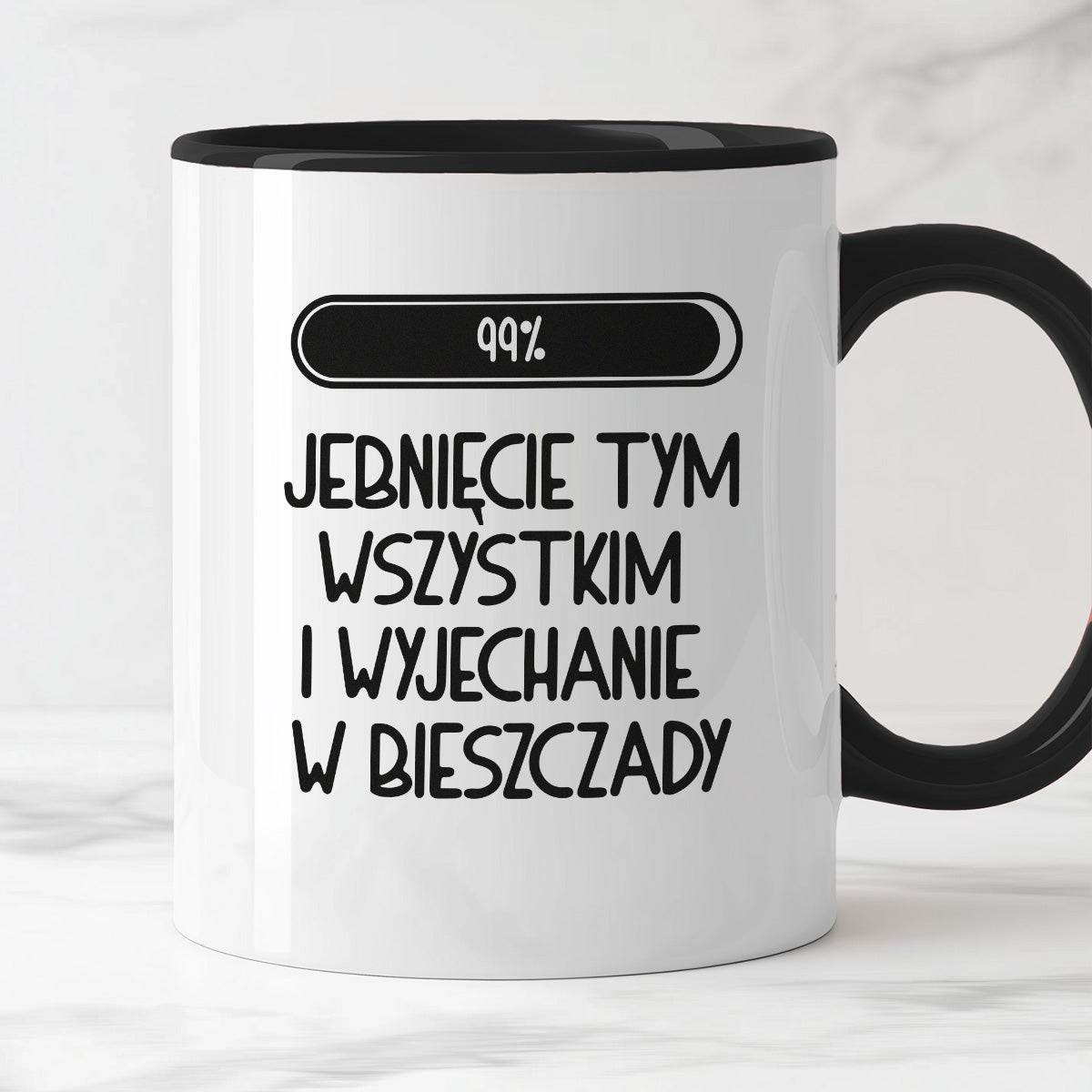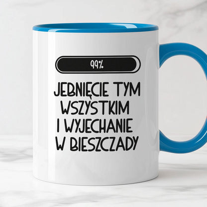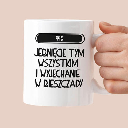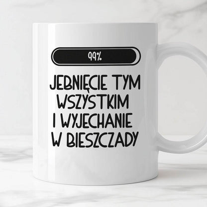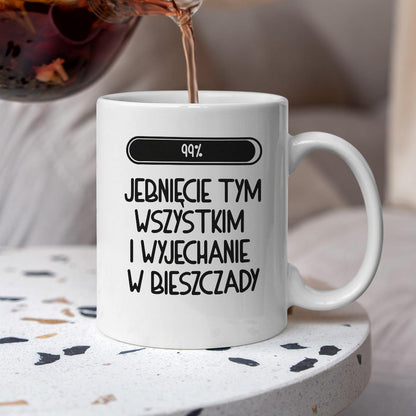 Kubek z nadrukiem "Loading 99% - jebnięcie tym wszystkim i wyjechanie w Bieszczady"