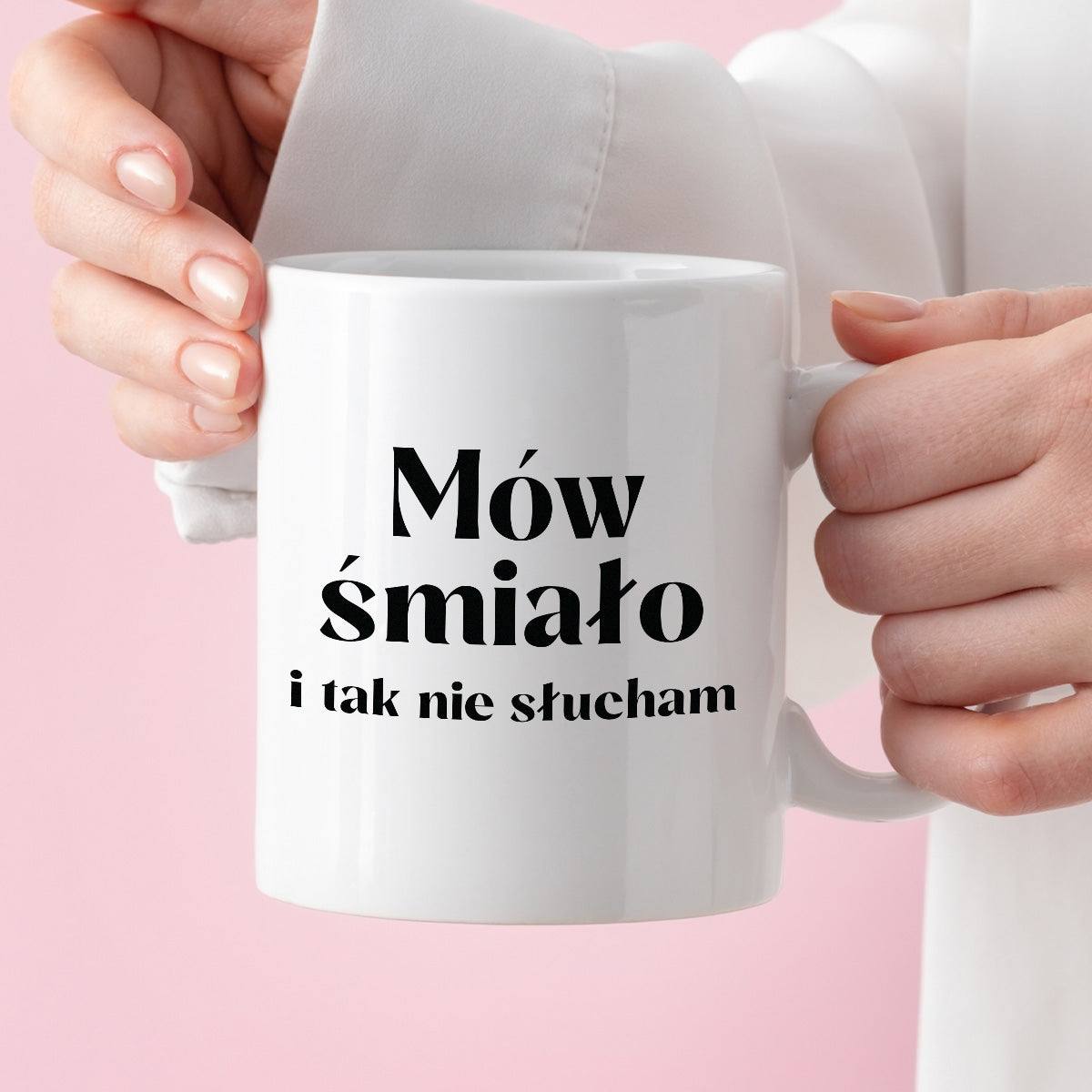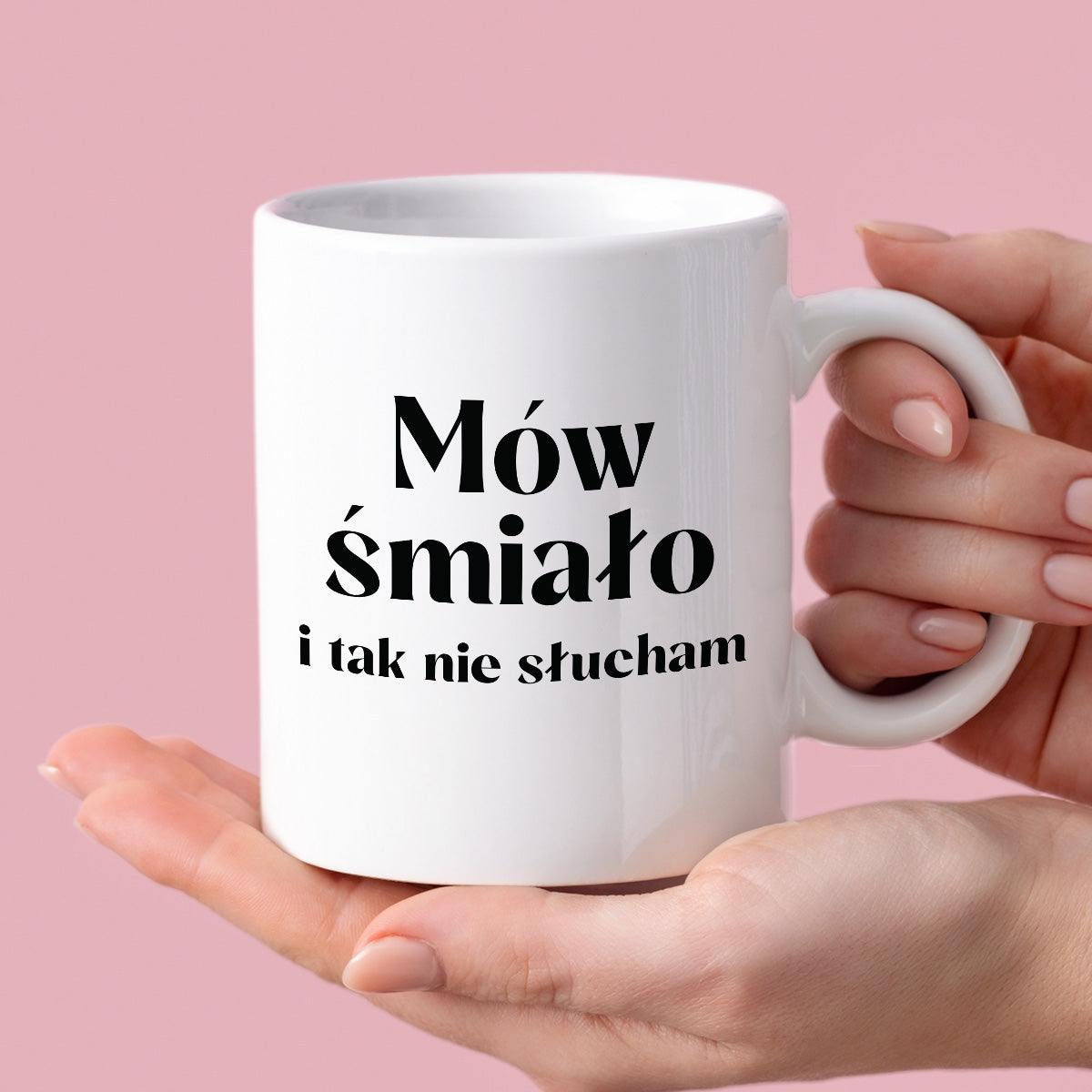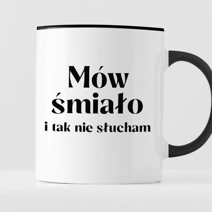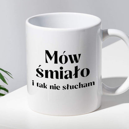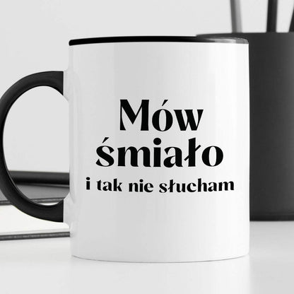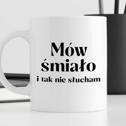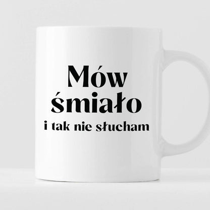 Kubek z nadrukiem "Mów śmiało i tak nie słucham"