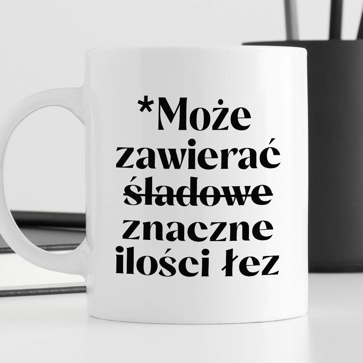 Kubek z nadrukiem "Może zawierać znaczne ilości łez"