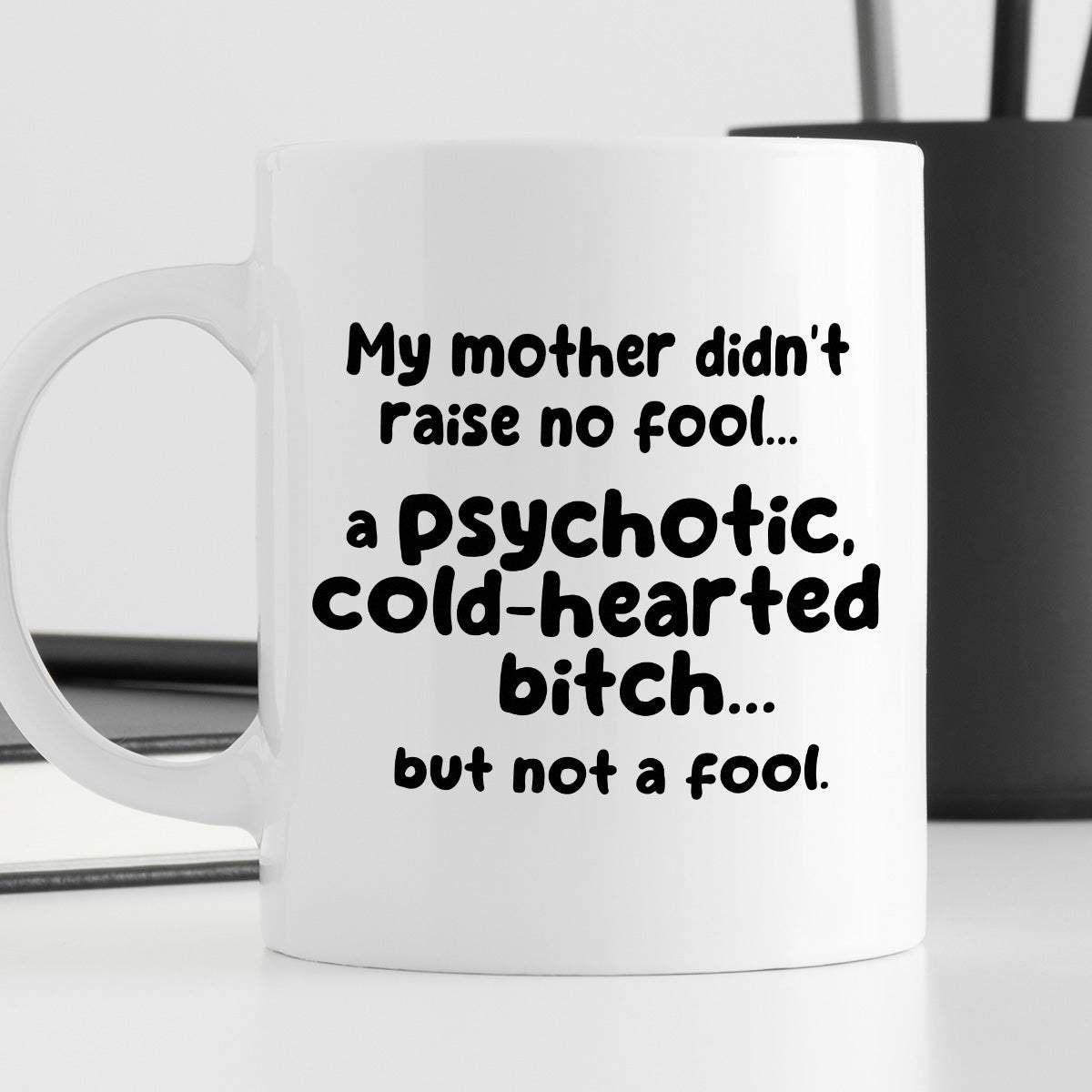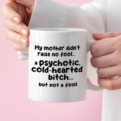 Kubek z nadrukiem "My mother didn’t raise no fool… a psychotic, cold-hearted bitch… but not a fool."