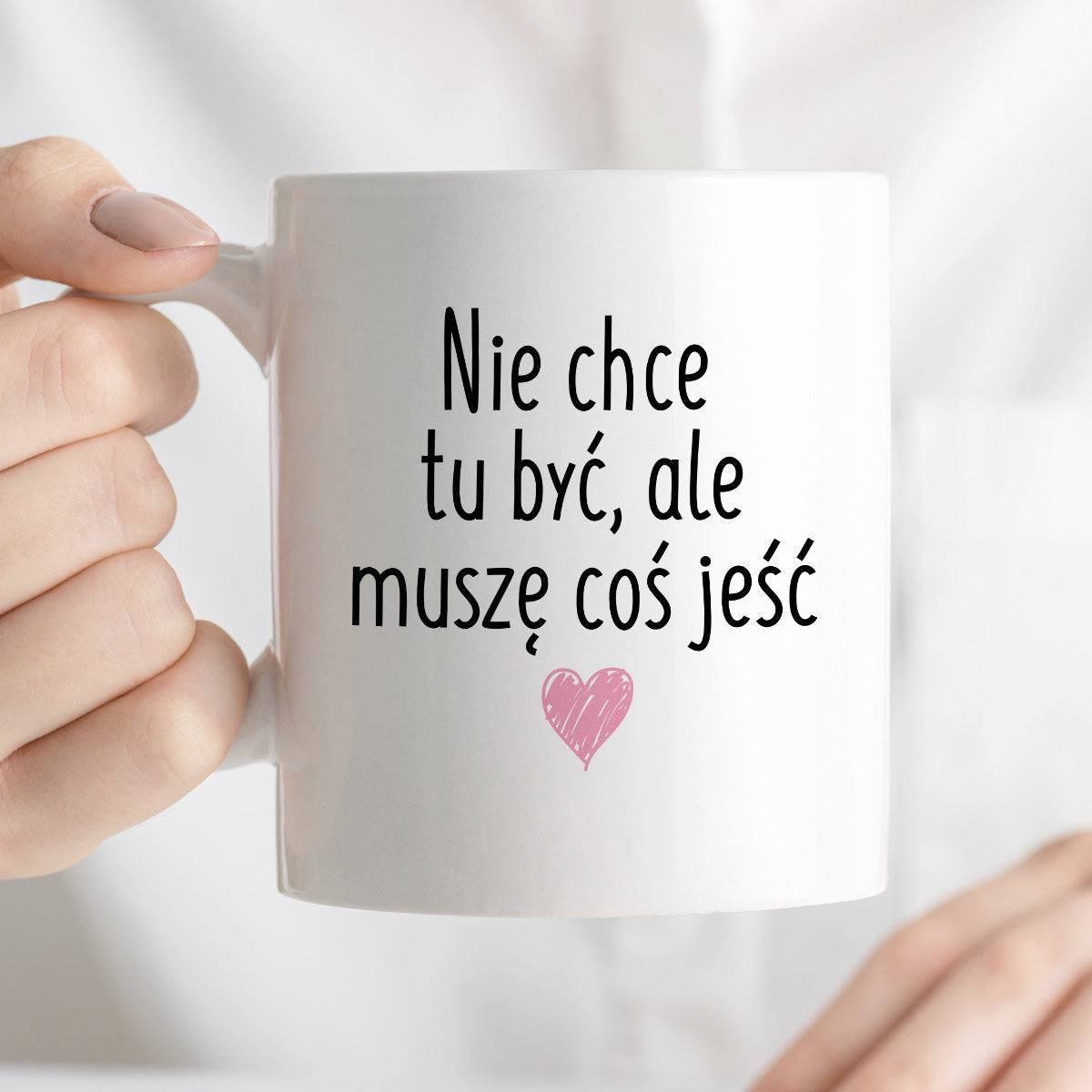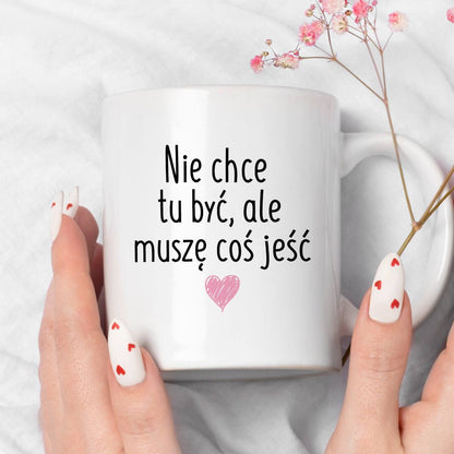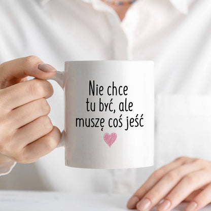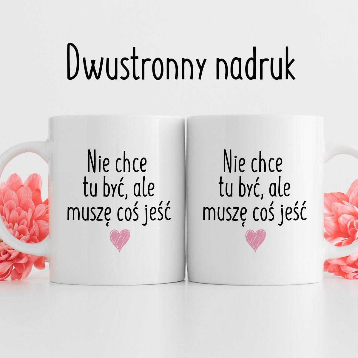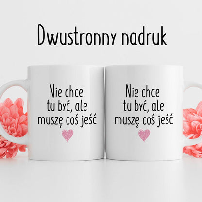 Kubek z nadrukiem "Nie chcę tu być, ale muszę coś jeść" FB