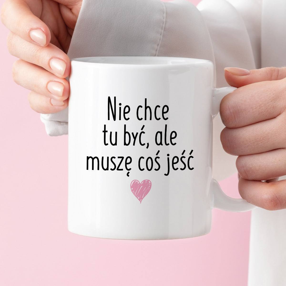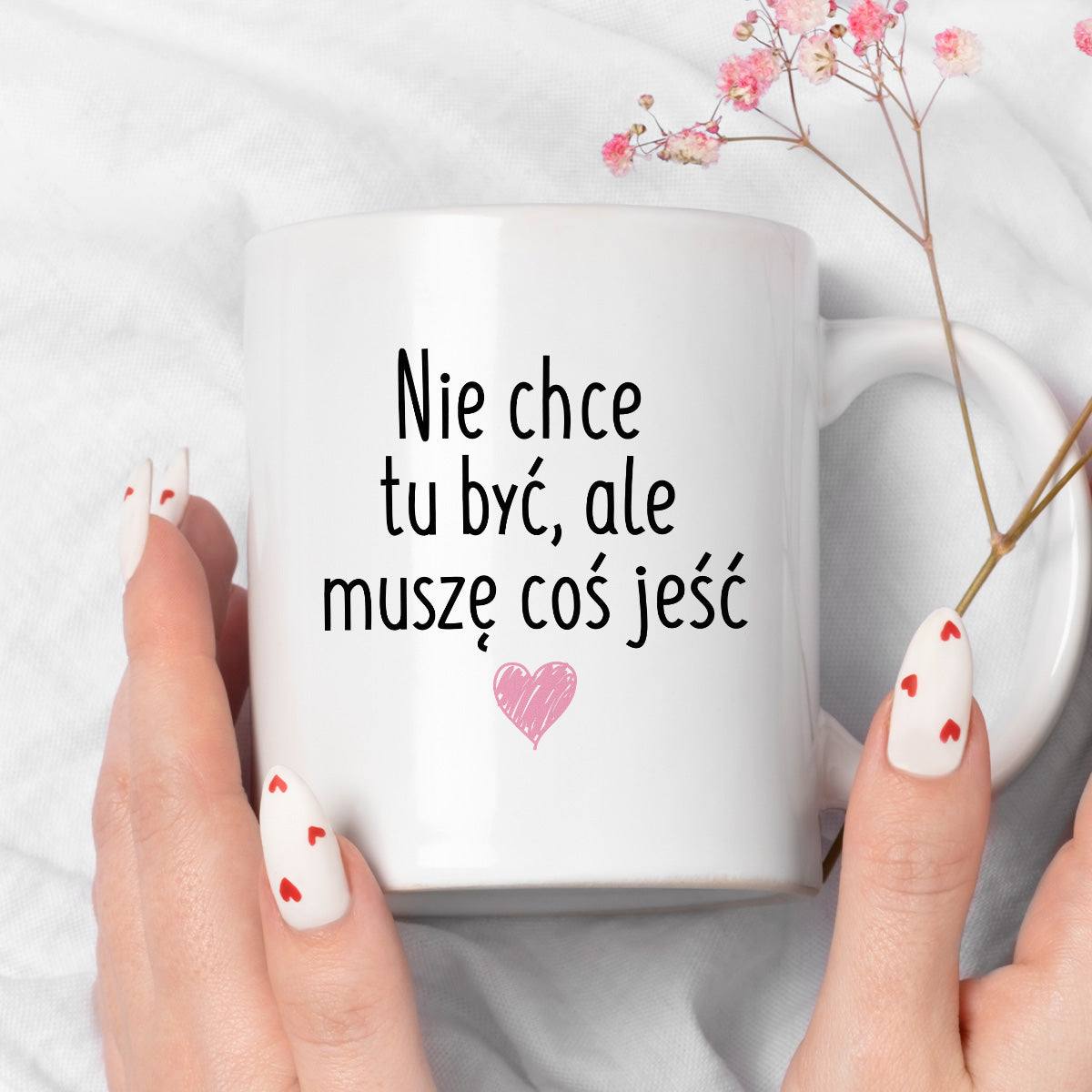 Kubek z nadrukiem "Nie chcę tu być, ale muszę coś jeść" - DZIEŃ KOBIET 🌸